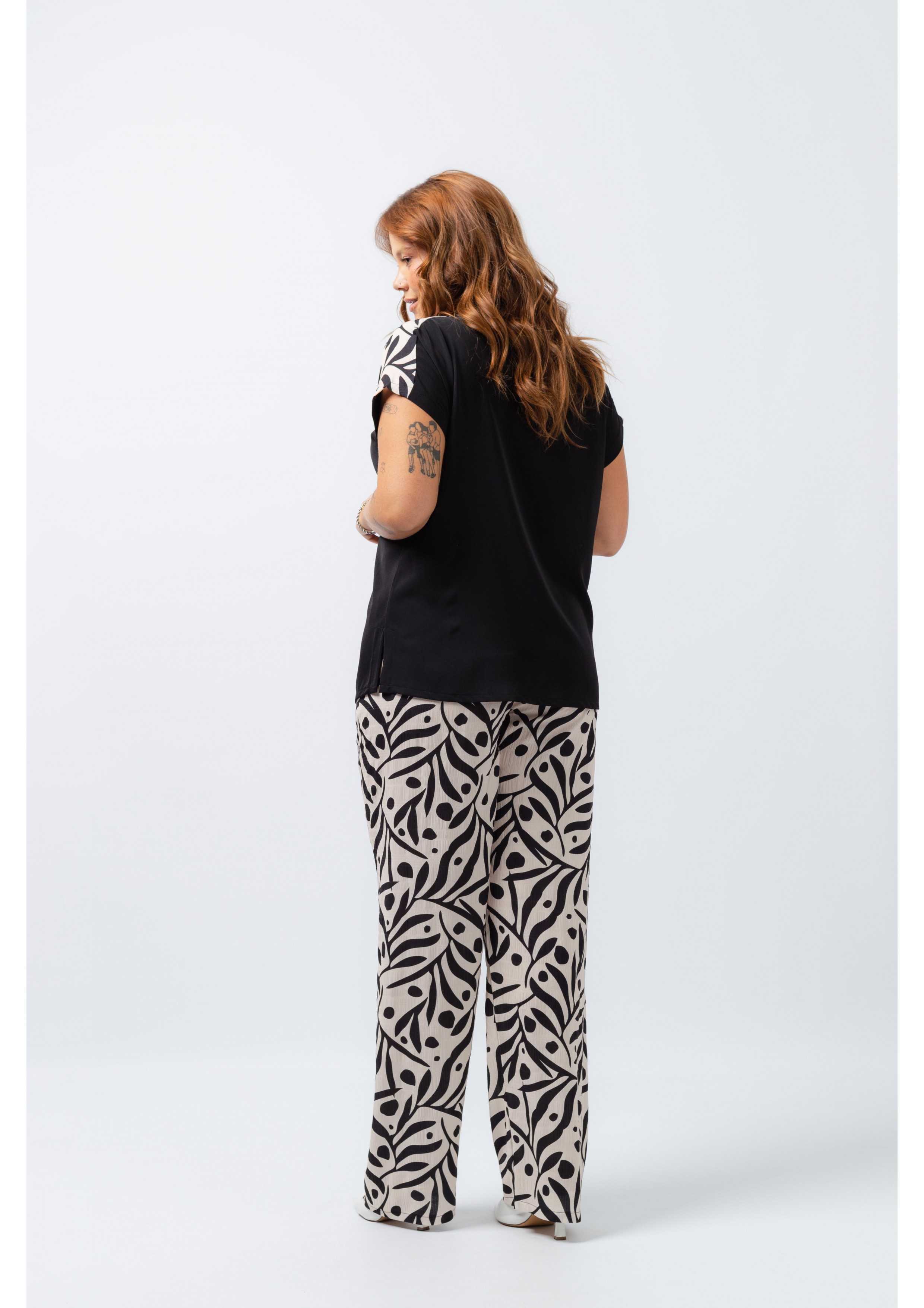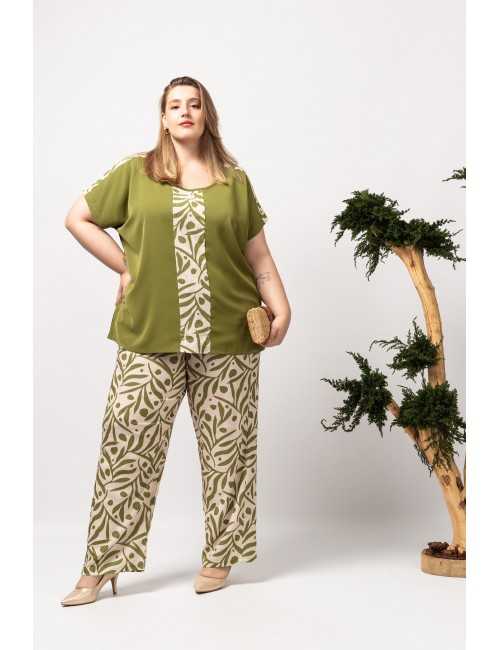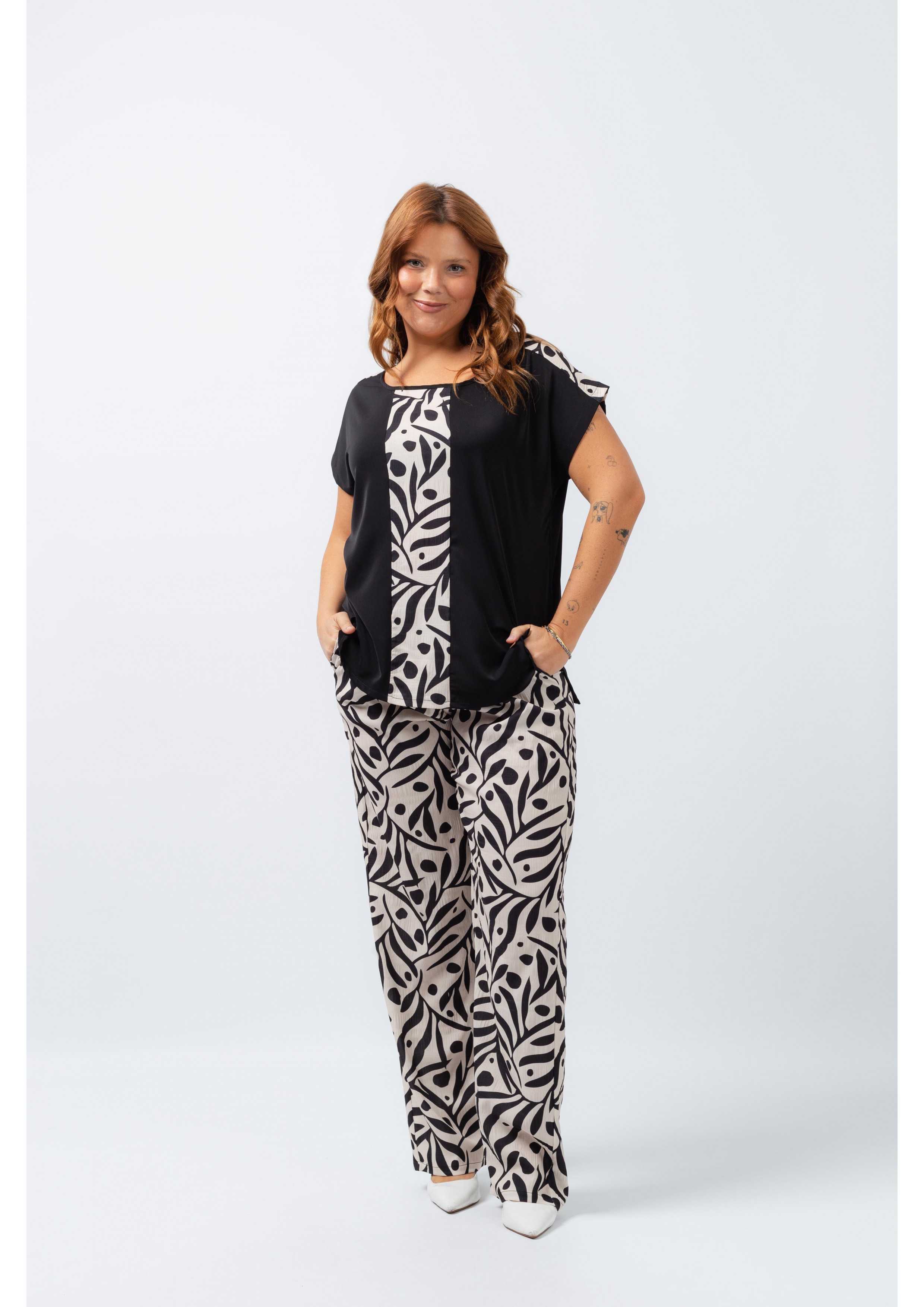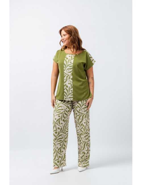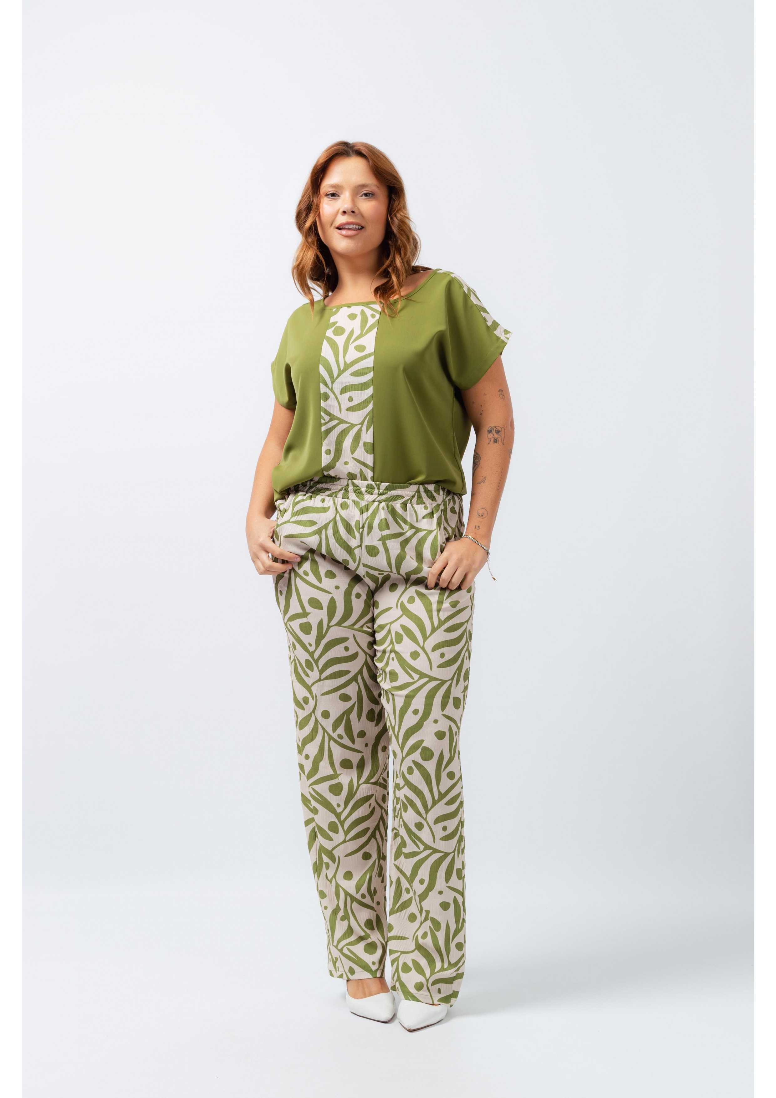 Set in solid and printed fabric. Printed pants with side pockets, high elastic waistband. Tunic in solid fabric with round neck, side slits, shoulder seams, and front in printed fabric. Collection: Spring Summer Available in Plus Sizes Own design and manufacturing product. We are a clothing brand with over 50 years of experience Model: Height 1.70m and wearing size XL. Composition: 99% Polyester 1% Elastane | 100% Polyester
