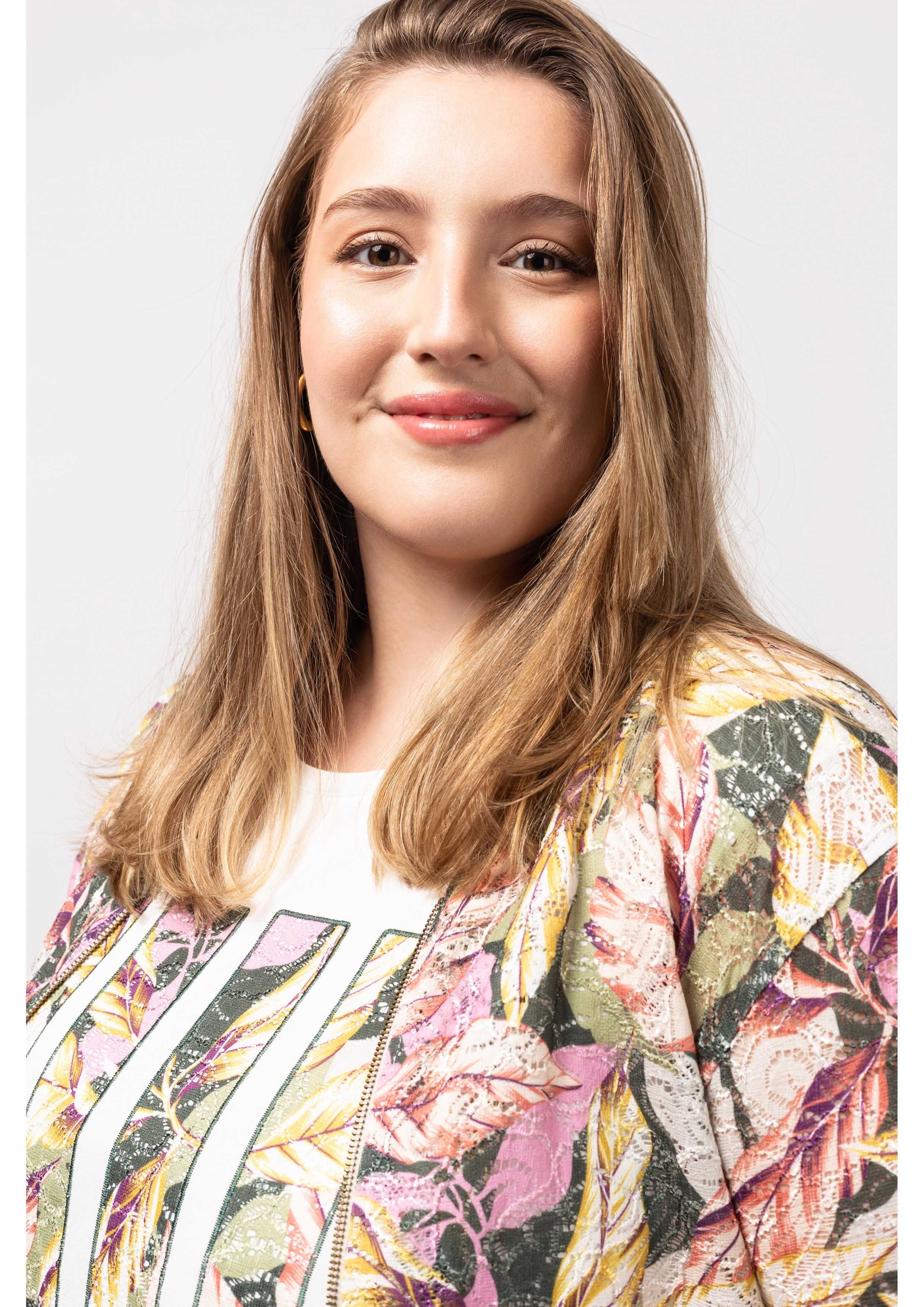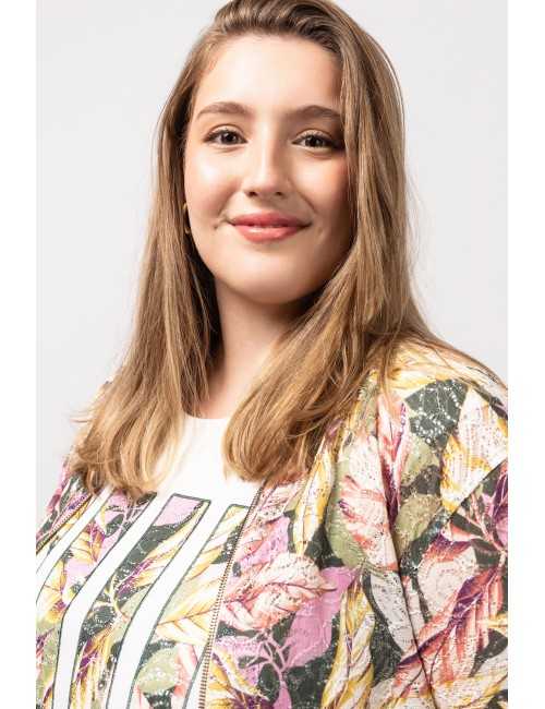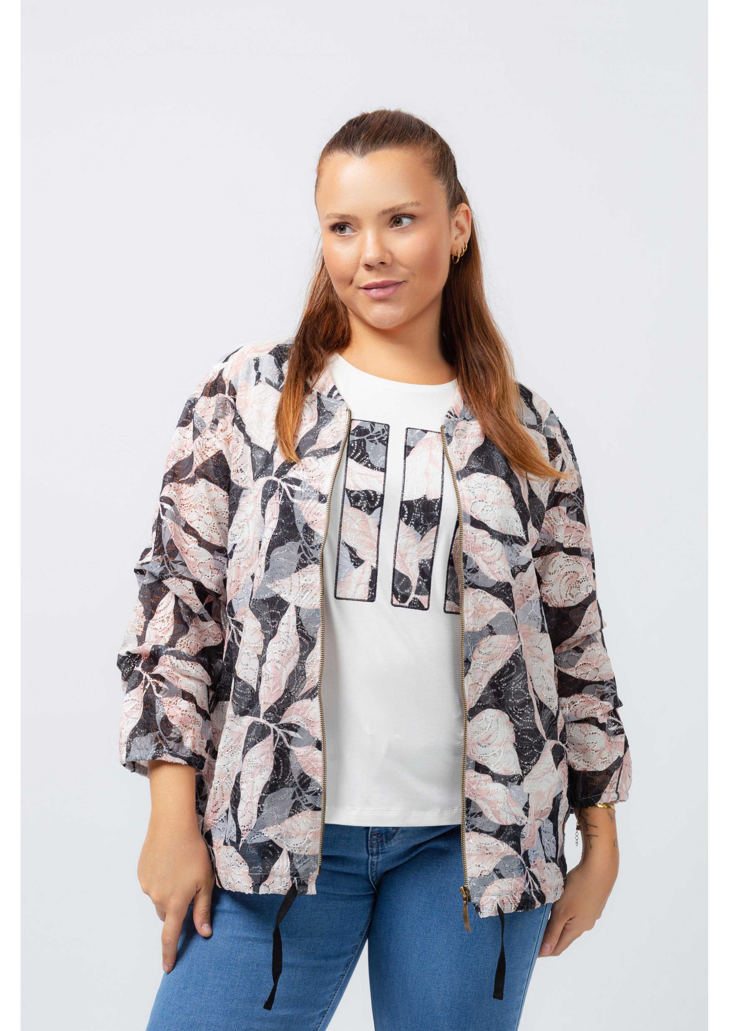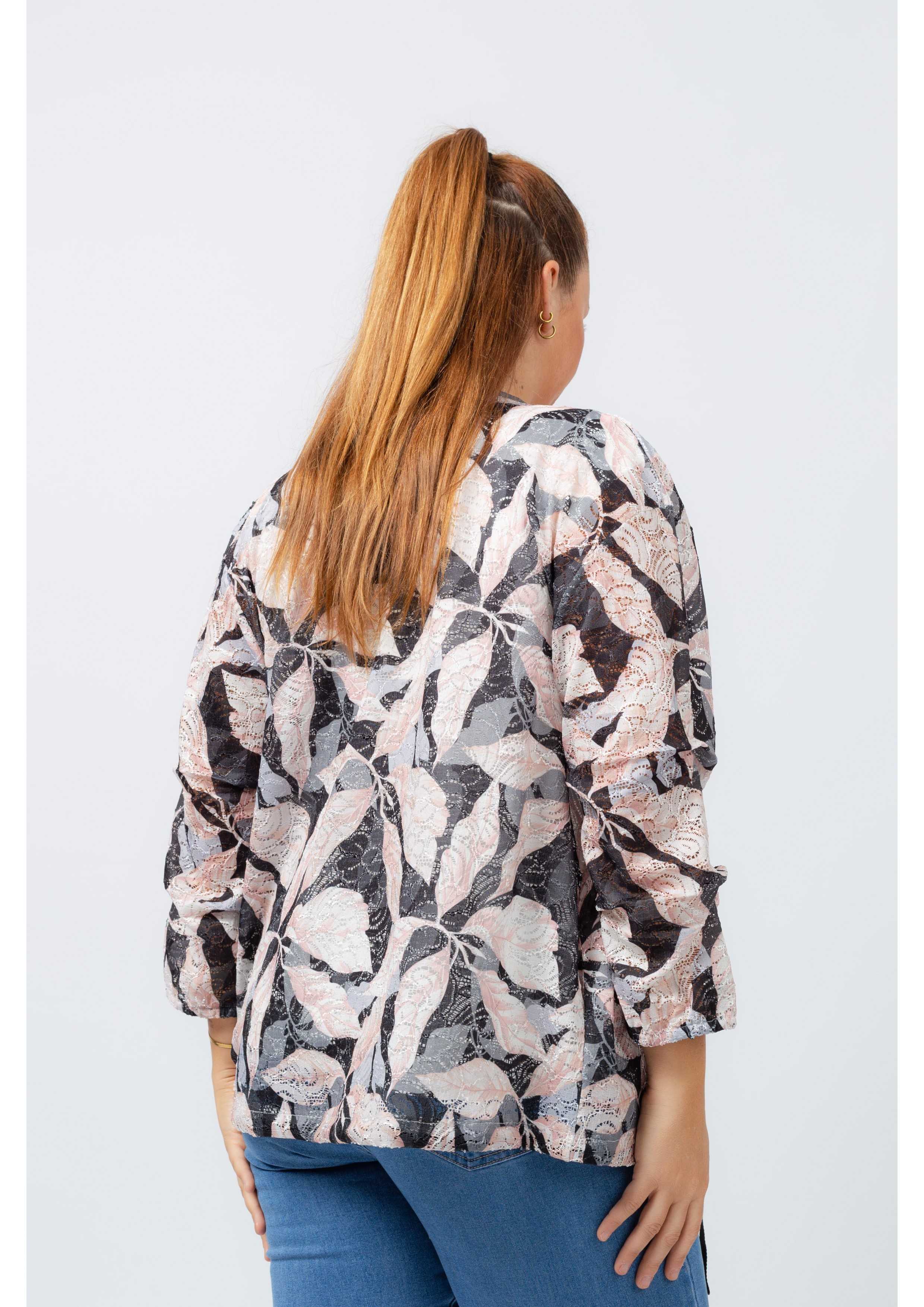 Printed lace coat, 3/4 sleeves with pleats creating ruffles and elastic at the bottom. Base of the coat with hem and cord all around. Closure at the front. Collection: Spring Summer Available in Plus Sizes Own design and manufacturing. We are a clothing brand with over 50 years of experience Model 1: Height 1.80m wearing size 4XL. Model 2: Height 1.70m wearing size XL. Composition: 97% Polyester 3% Elastane