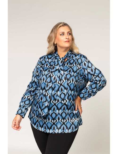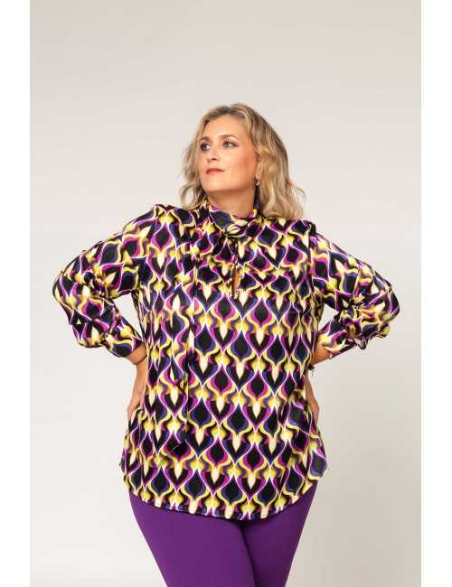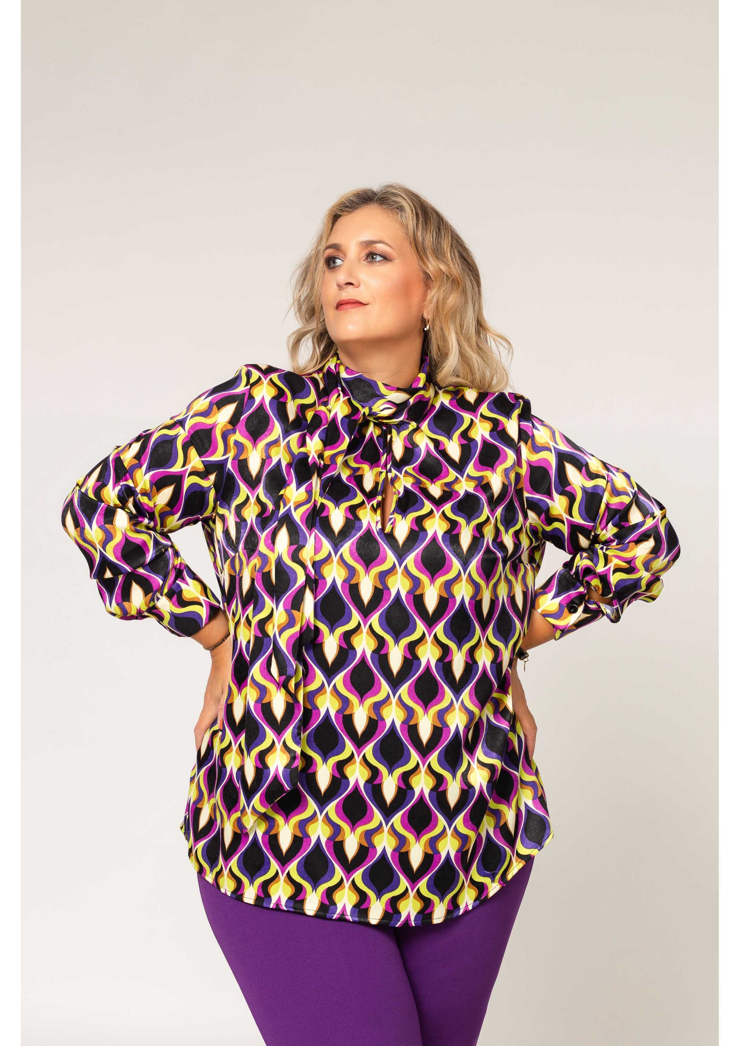 Printed fabric blouse Collection: Autumn Winter Available in Plus Sizes Custom designed and manufactured product. We are a clothing manufacturing brand with over 50 years of experience. Model: Height 1.65m and is wearing size 3XL. Composition: 100% Polyester
