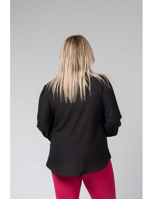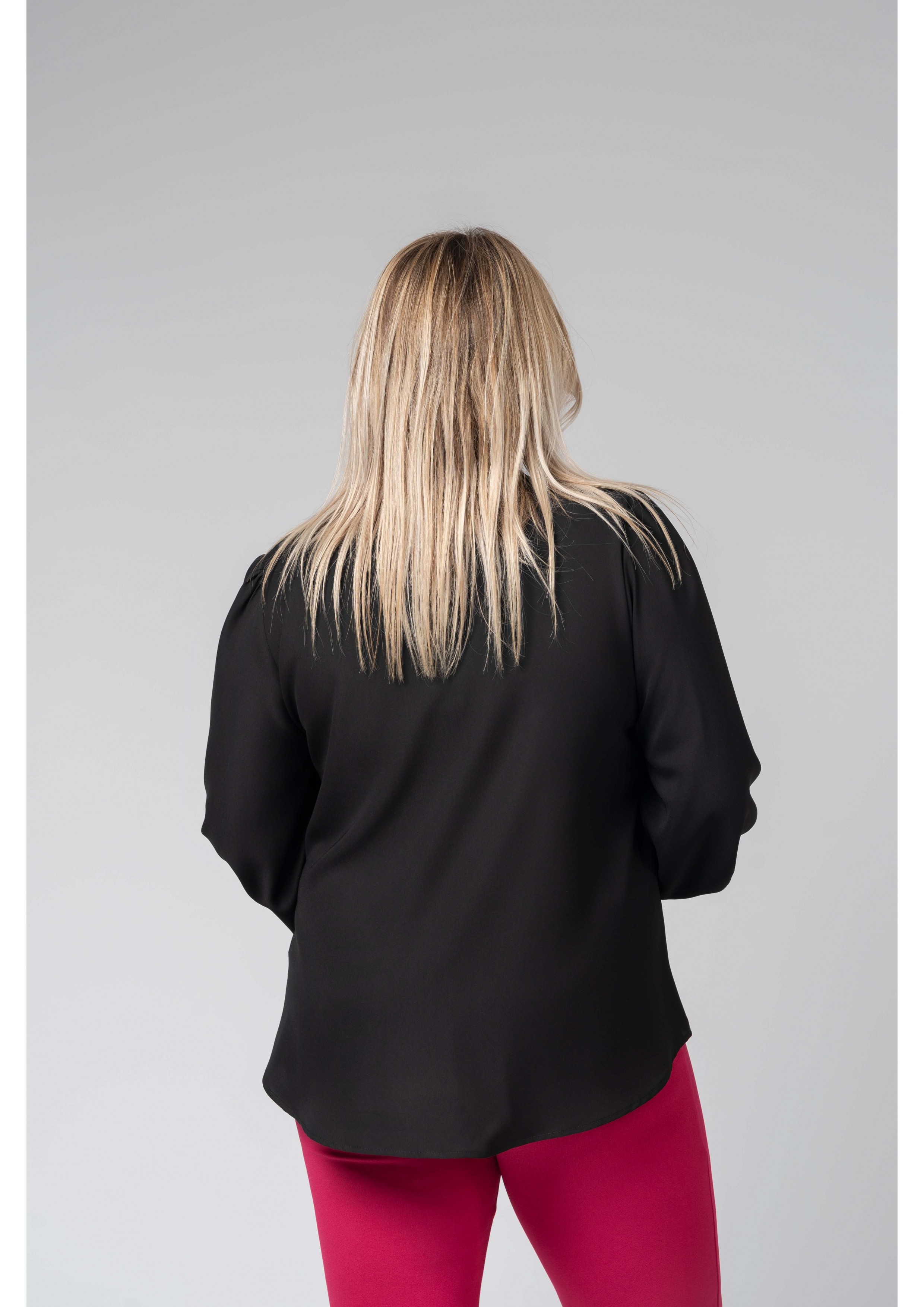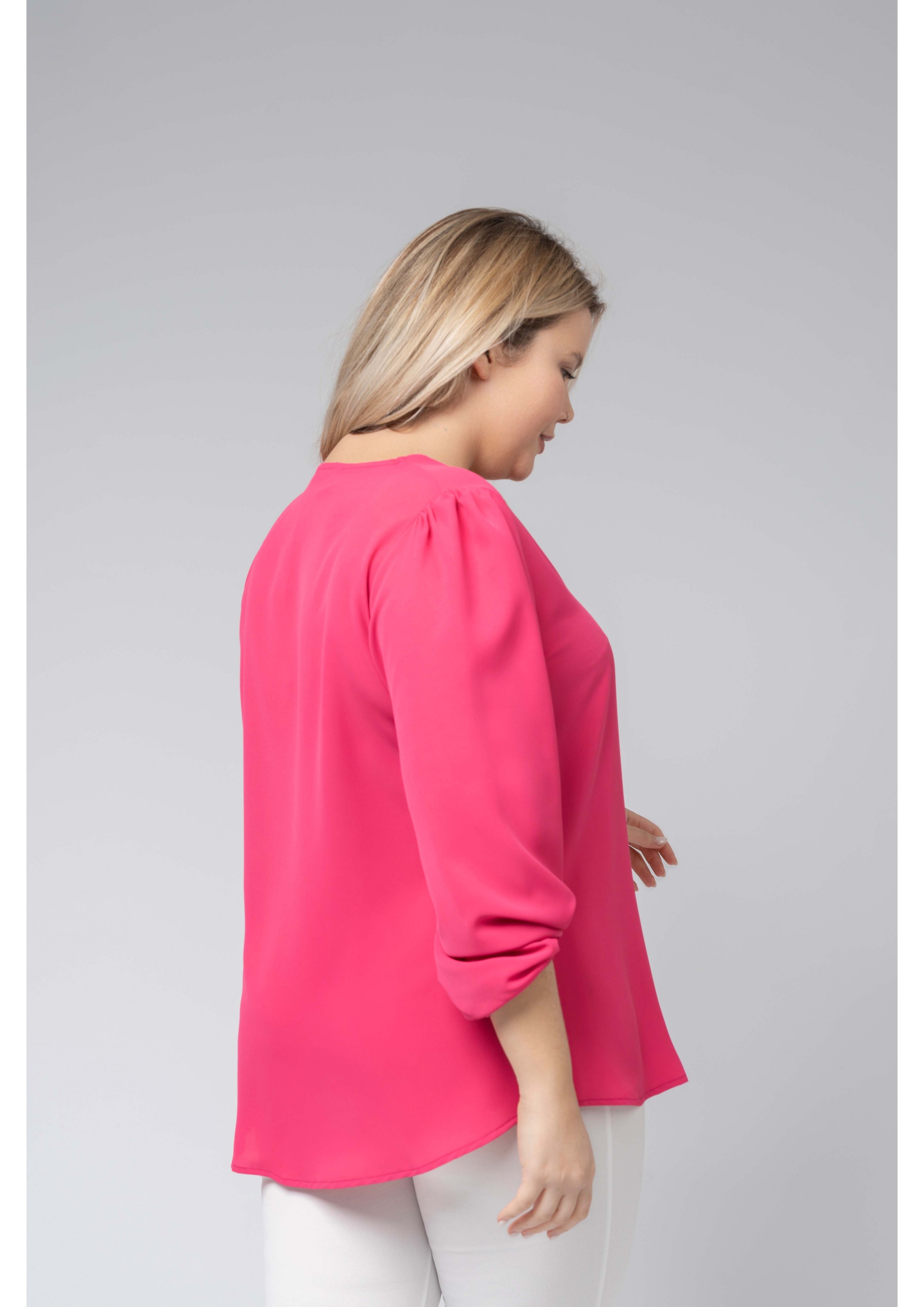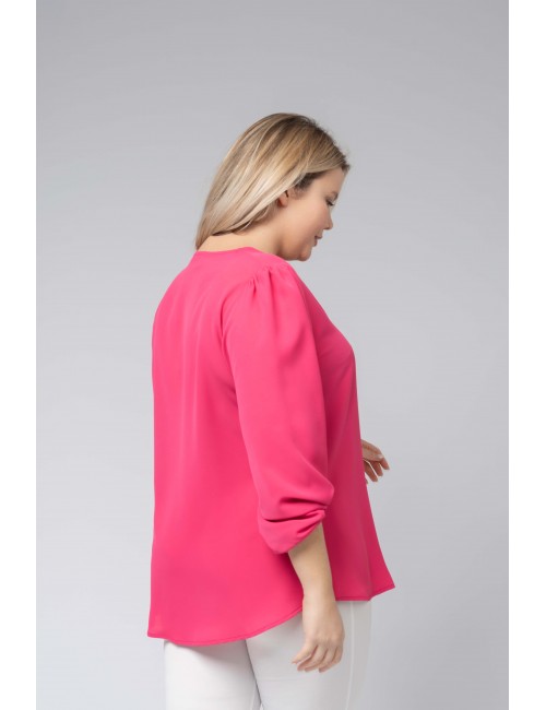 Plain fabric blouse with a V-neck. Collection: Spring Summer Available in Plus Sizes Designed and manufactured by us. We are a clothing brand with over 50 years of experience Model: Height 1.70m and is wearing size 2XL. Composition: 100% Polyester