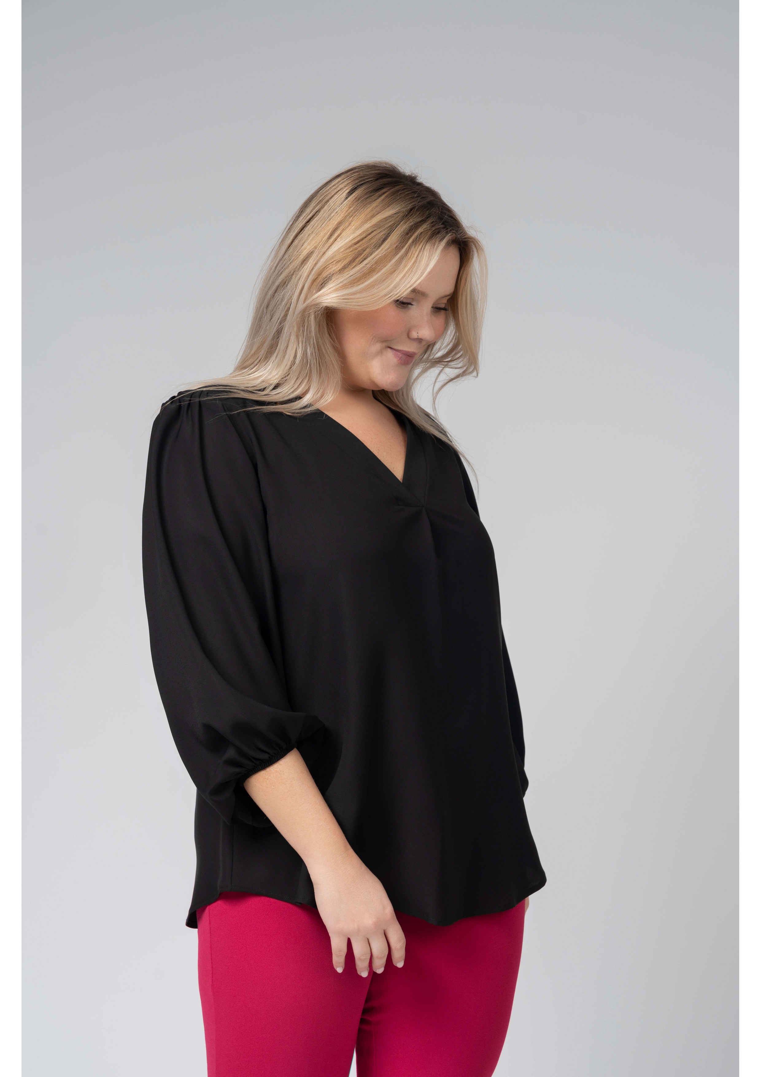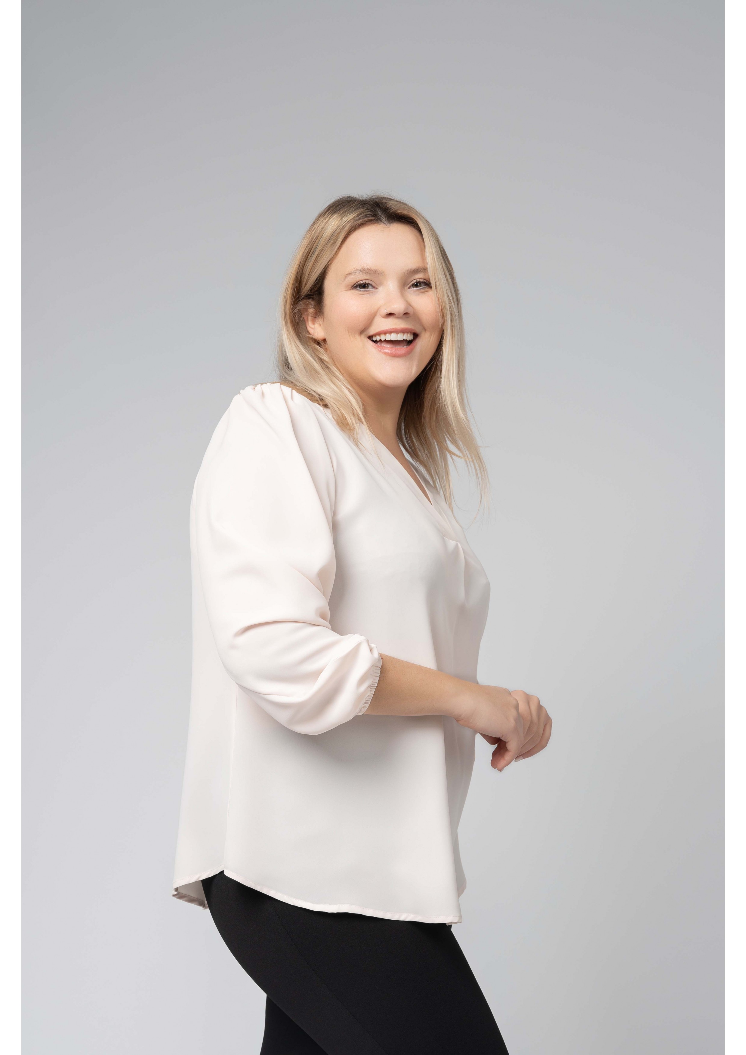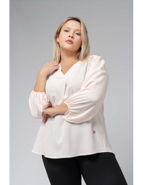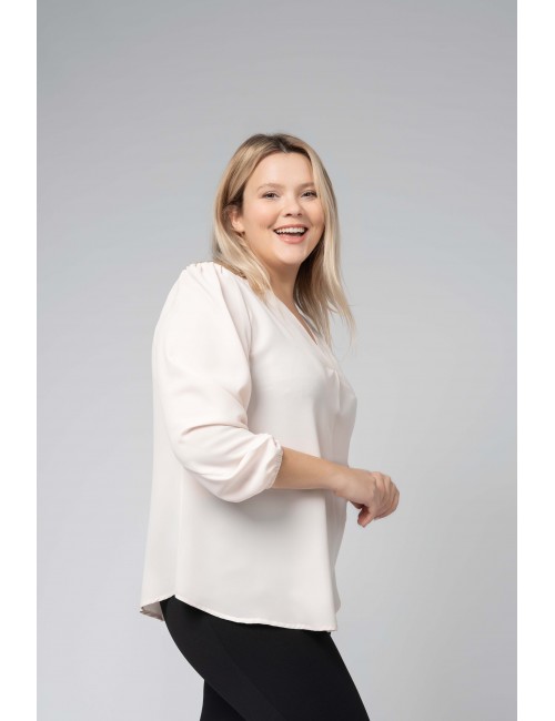 Plain fabric blouse with a V-neck. Collection: Spring Summer Model: Height 1.70m and is wearing size 2XL.