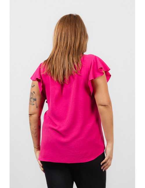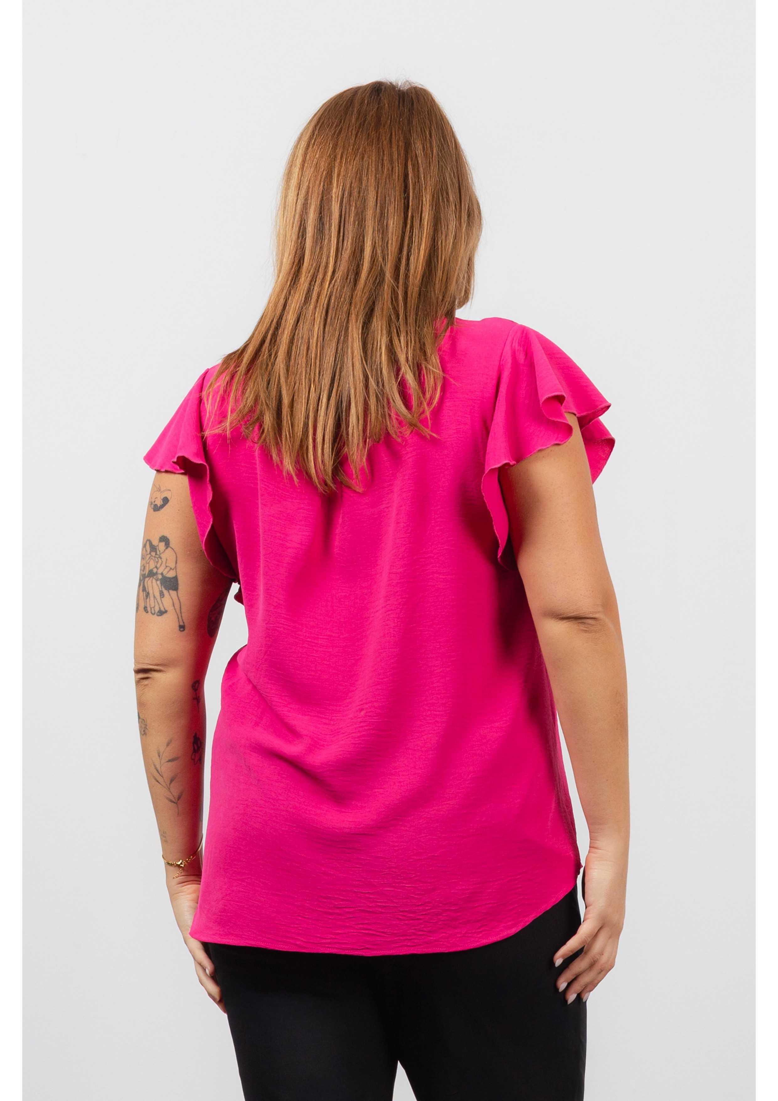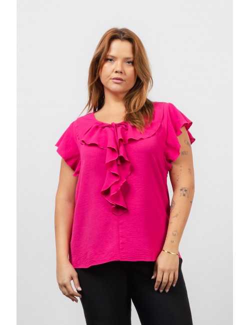Solid fabric blouse, flared with ruffle. Round neckline with ruffle tightening with cord. Collection: Spring Summer Model: Height 1.70m and is wearing size 2XL