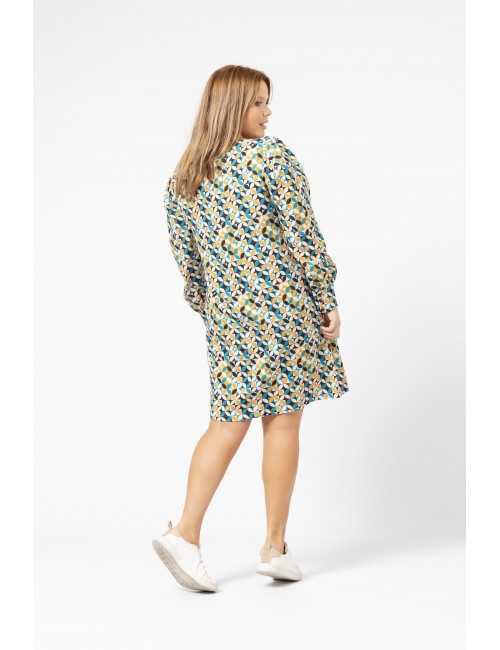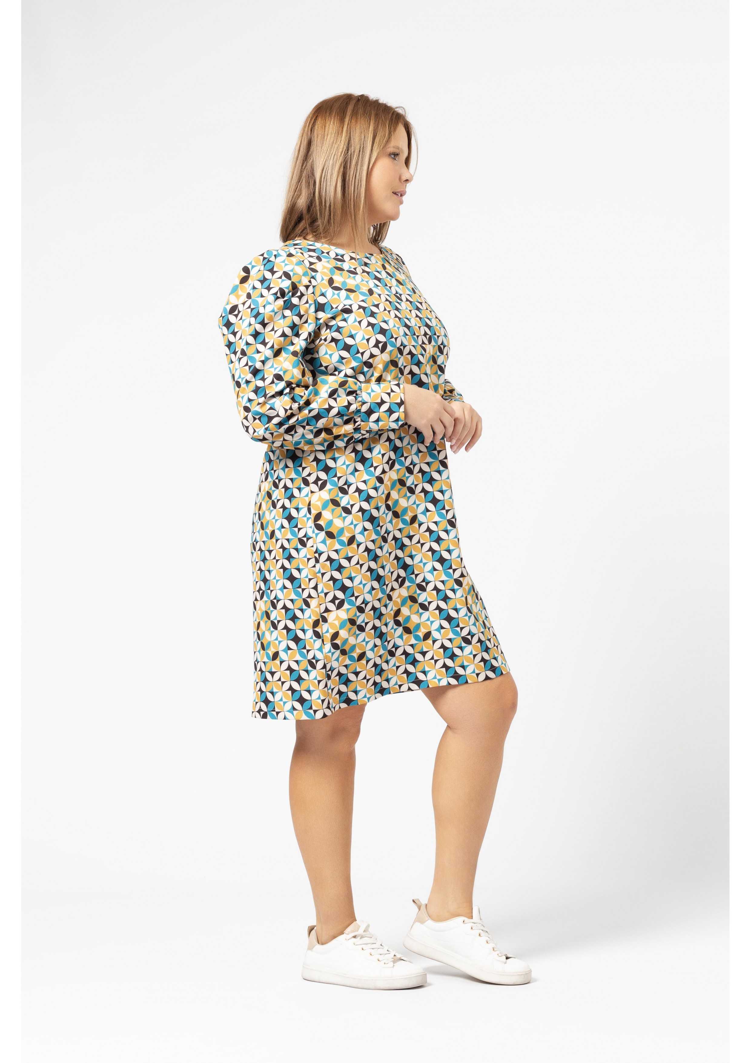 Straight-cut dress with pleats on the sleeves and buttons on the cuff. Collection: Autumn Winter Available in Plus Sizes Own design and manufacturing product. We are a clothing brand with over 50 years of experience Model: Height 1.70m and wearing size 2XL. Composition: 89% Polyester 11% Spandex