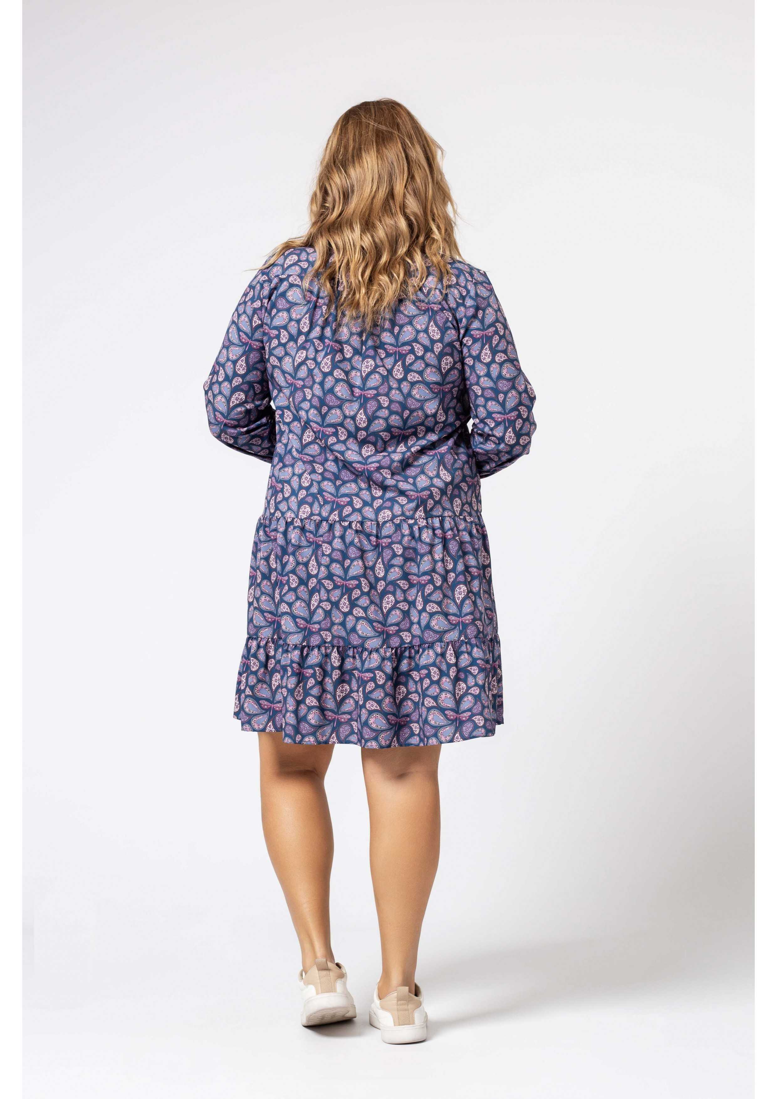 Shirt dress with ruffles at the hem and long sleeves with elastic. Collection: Spring Summer. Available in Plus Sizes. Own design and manufacturing product. We are a clothing manufacturing brand with over 50 years of experience. Model: Height 1.70m and is wearing size 2XL. Composition: 95% Polyester 5% Elastane.