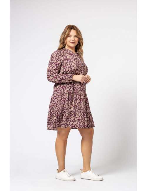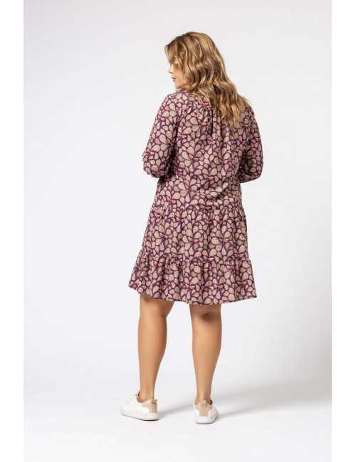 Shirt dress with ruffles at the hem and long sleeves with elastic. Collection: Spring Summer. Model: Height 1.70m and is wearing size 2XL.