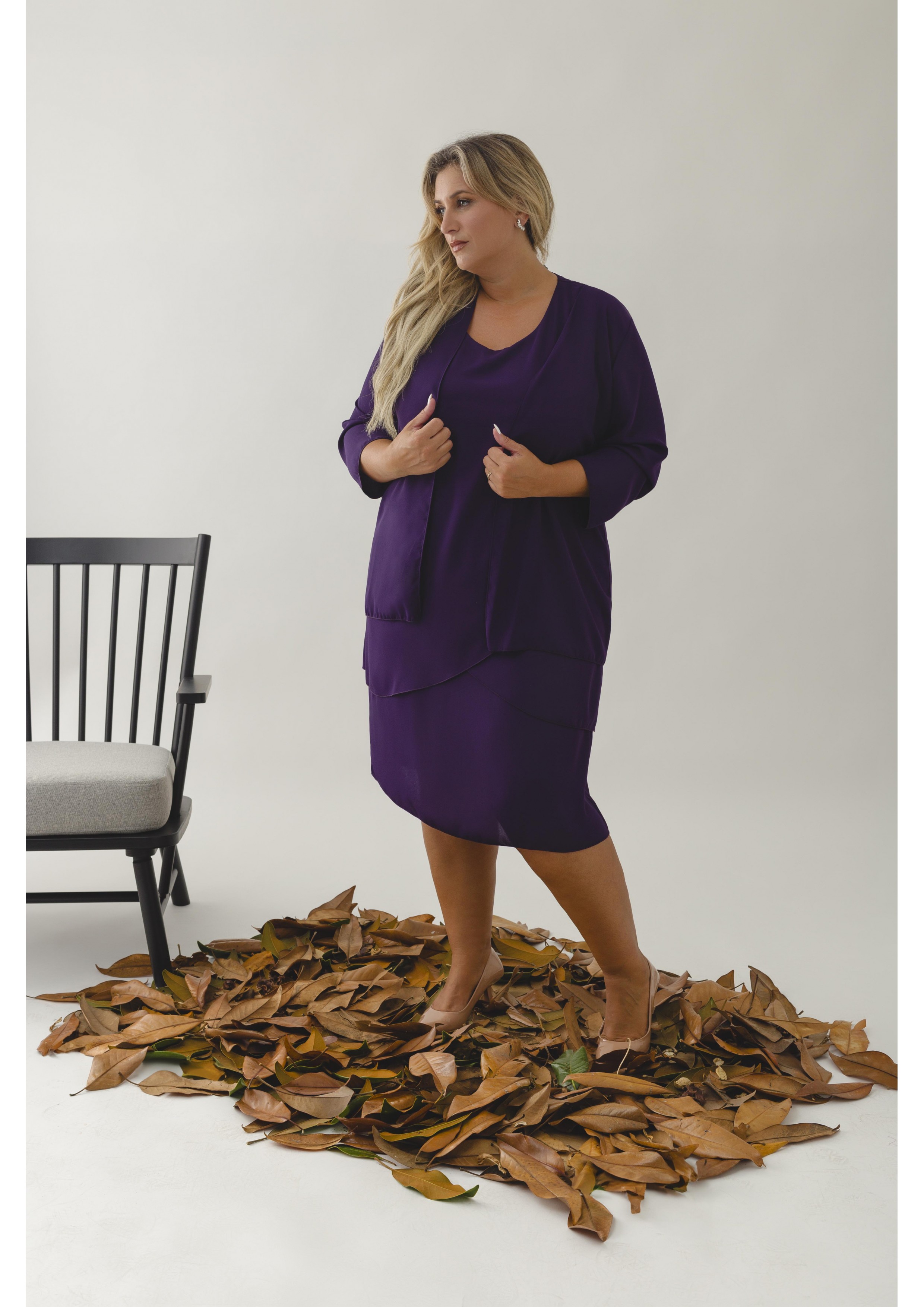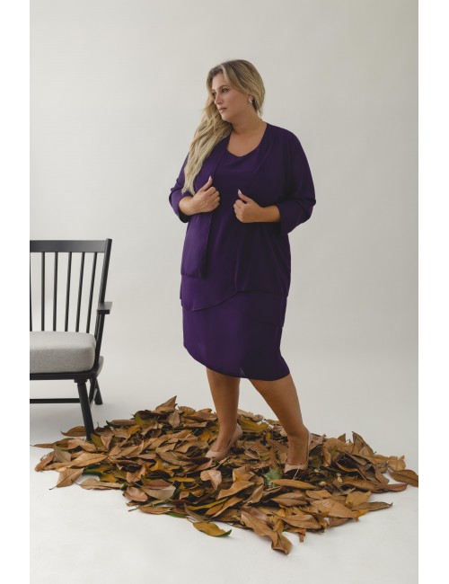Coat and dress set lined. Collection: Autumn Winter Model: Height 1.65m and wearing size 3XL color eggplant.