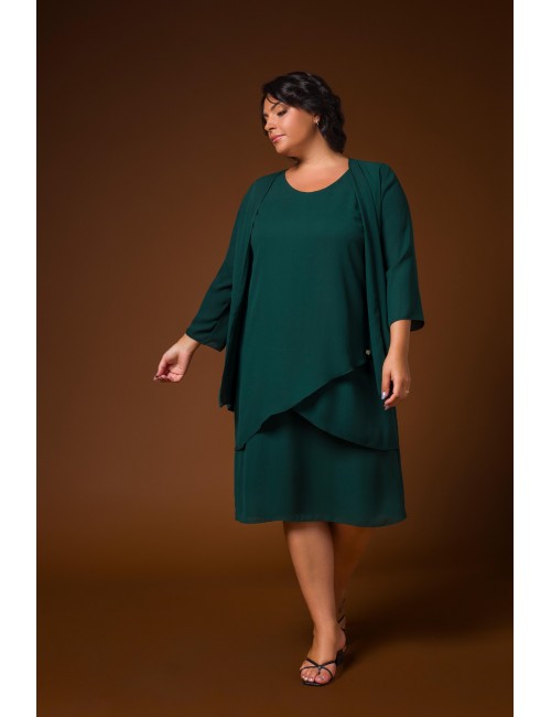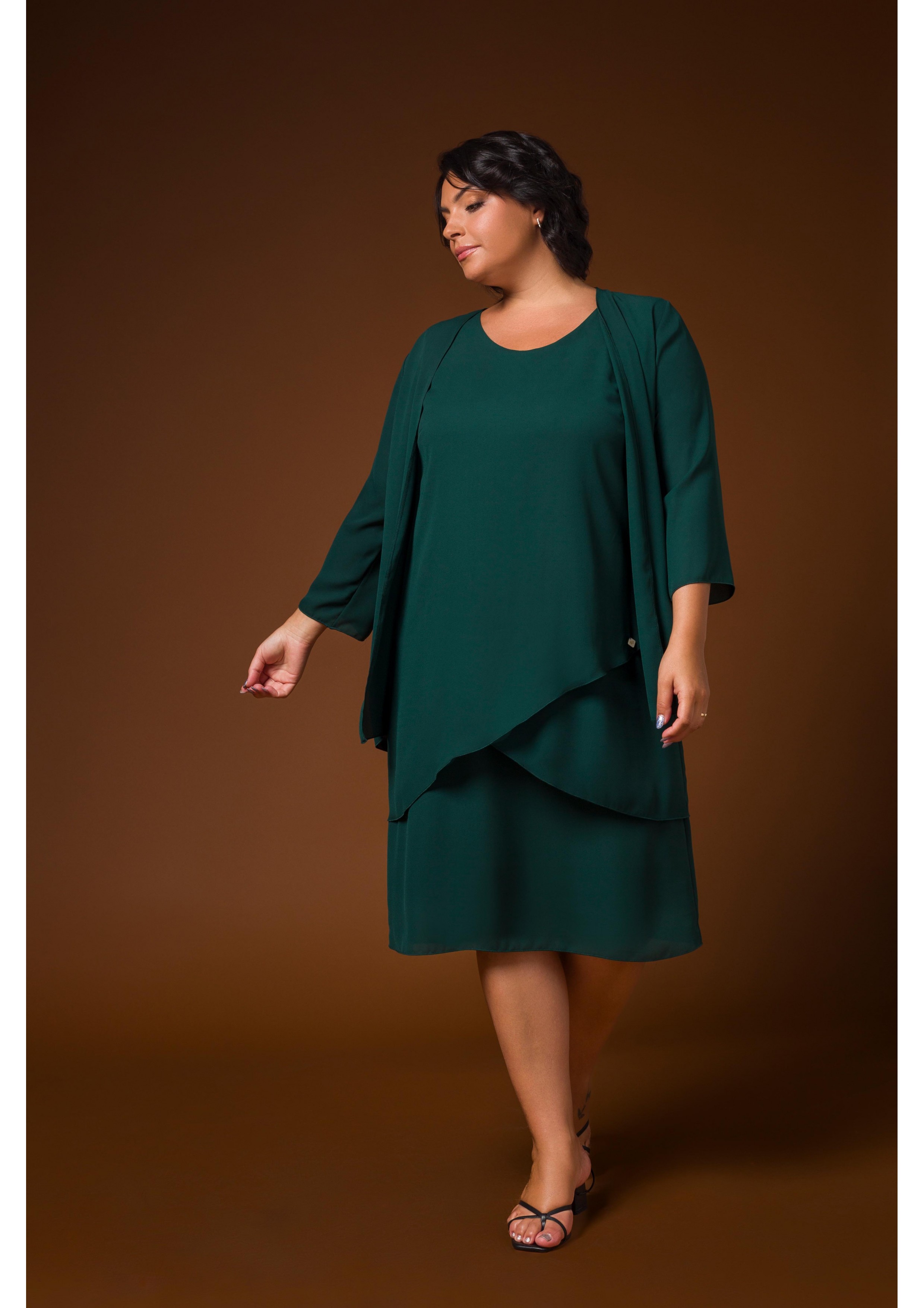 Coat and Dress Set in Plain Fabric Autumn Winter Collection Plus Sizes