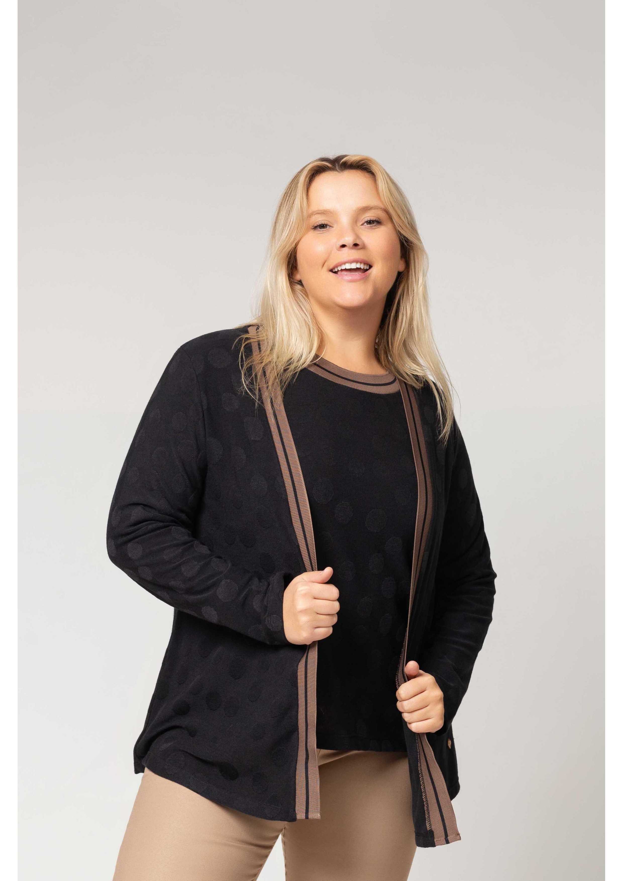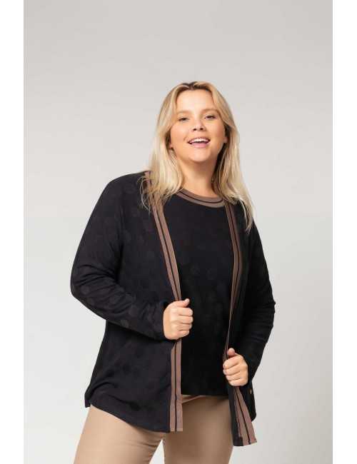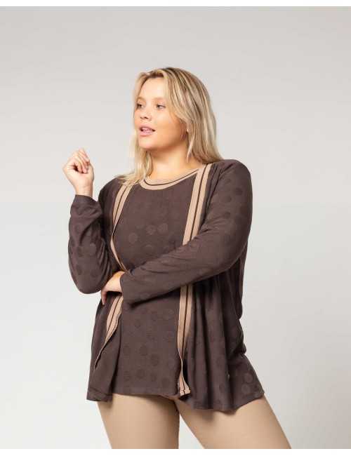 Set consisting of two long-sleeved pieces in fine jacra knit. Collection: Autumn Winter Available in Plus Sizes Own design and manufacturing. We are a clothing brand with over 50 years of experience Model: Height 1.70m and is wearing size 2XL. Composition: 65% Polyester 28% Rayon 7% Elastane
