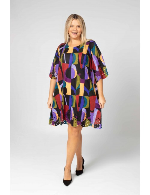Short printed dress with laser-cut finishes. Collection: Autumn Winter Model: Height 1.70m and is wearing size 2XL. | Lining