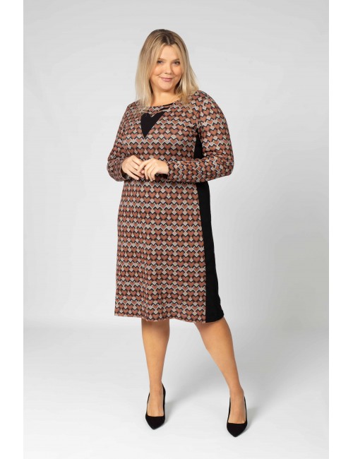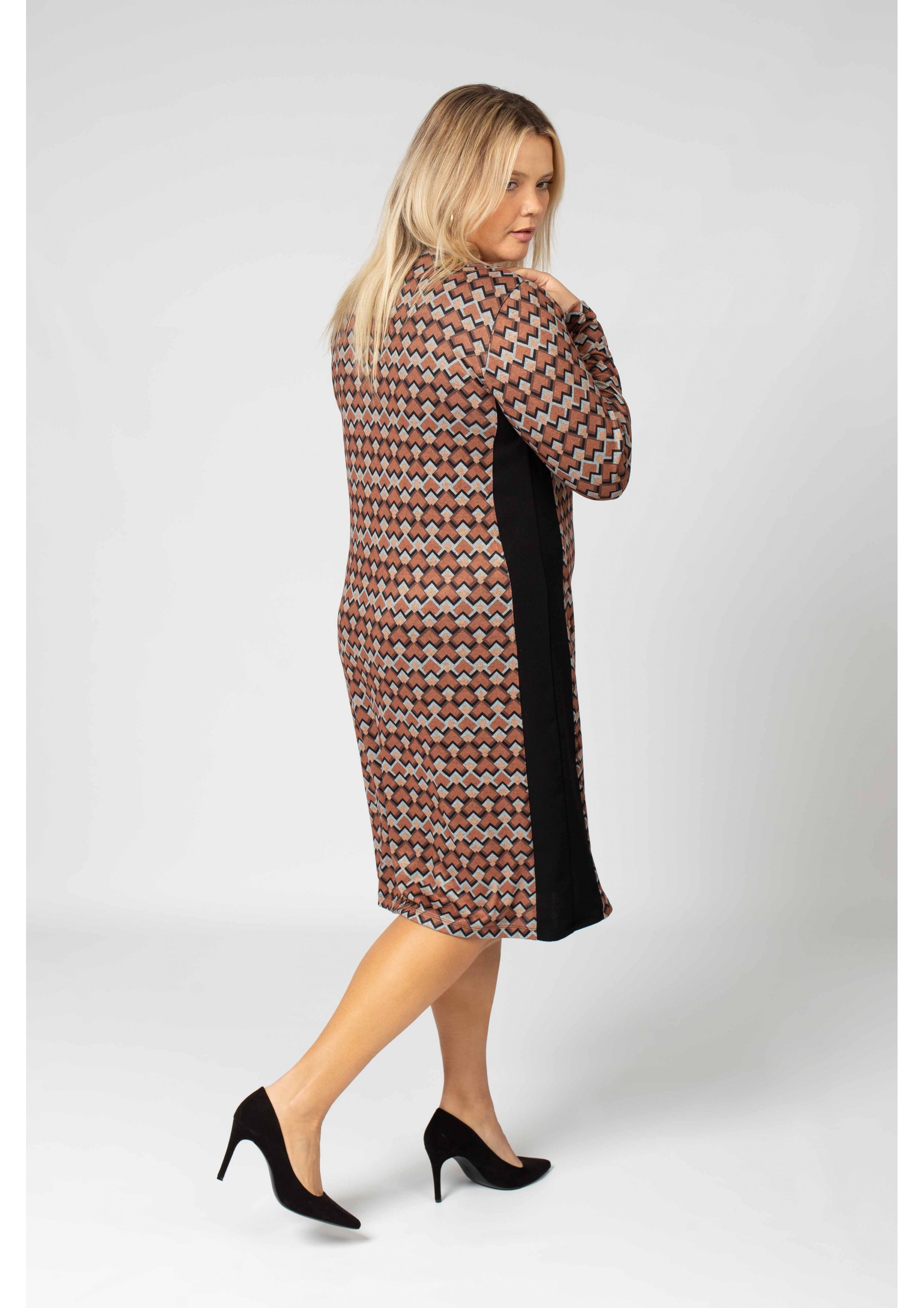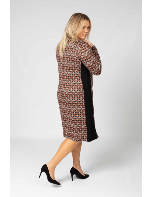 Short dress in printed knit with smooth side inserts. Collection: Autumn Winter Available in Plus Sizes Own design and manufacturing product. We are a clothing manufacturing brand with over 50 years of experience. Model: Height 1.70m and wearing size 2XL. Composition: 95% Polyester 5% Elastane