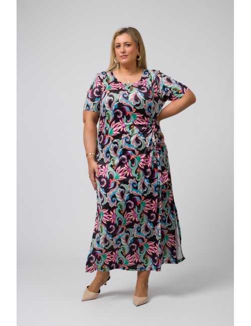 Printed knitted dress with a round neckline and side slits and draped bow on the side. Collection: Spring Summer Available in Plus Sizes Own design and manufacturing product. We are a clothing brand with over 50 years of experience Model: Height 1.65m and wearing size 3XL. Composition: 96% Polyester 4% Elastane