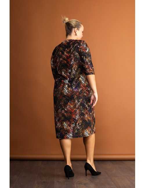 Printed knit dress, 3/4 sleeves, V-neck, lined piece. Collection: Autumn Winter Model: Height 1.70m and wearing size 2XL.