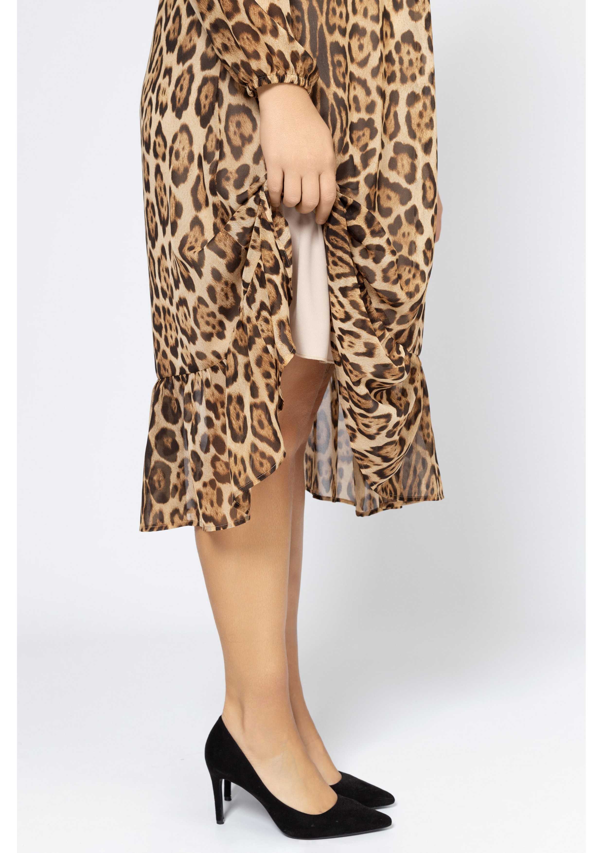Printed fabric dress with lining. Collection: Autumn Winter Available in Plus Sizes Own design and manufacturing product. We are a clothing brand with over 50 years of experience Model: Height 1.65m and wearing size 2XL. Composition: 100% Polyester