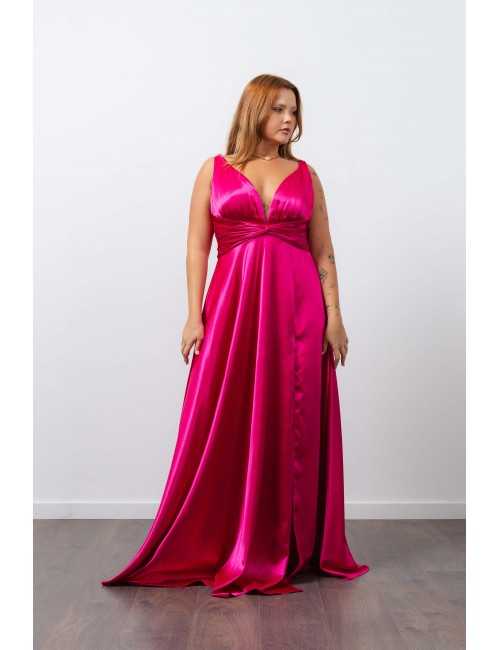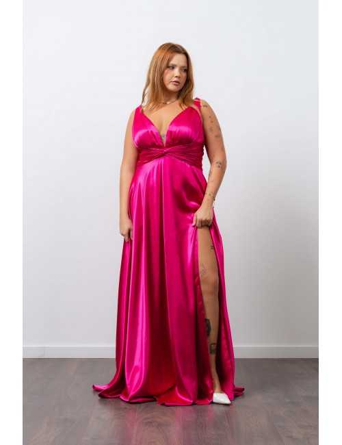 Plain fabric dress with a slit. Collection: Spring Summer Available in Plus Sizes Own design and manufacturing product. We are a clothing brand with over 50 years of experience Model: Height 1.70m and wearing size XL.
