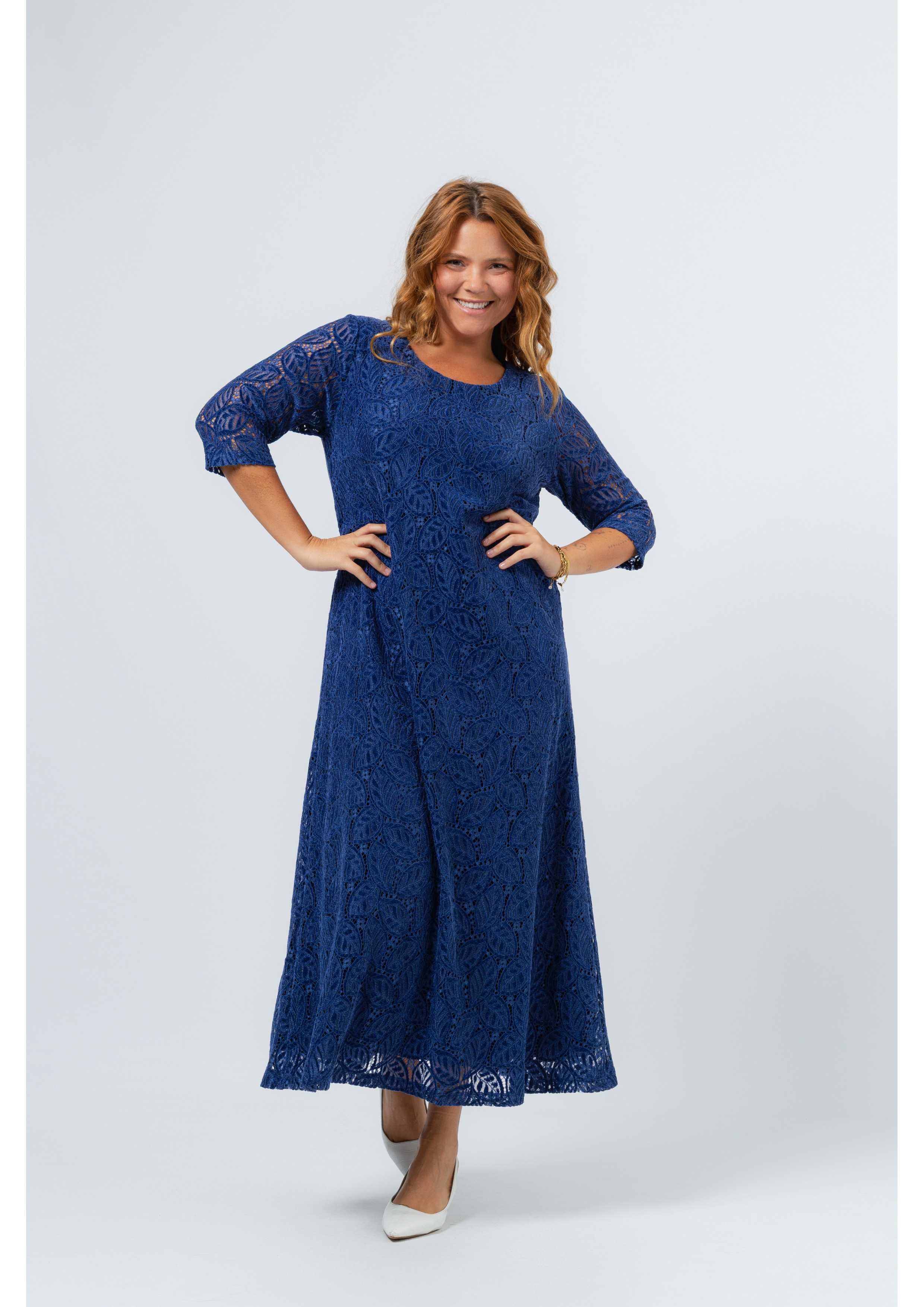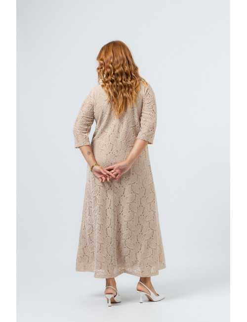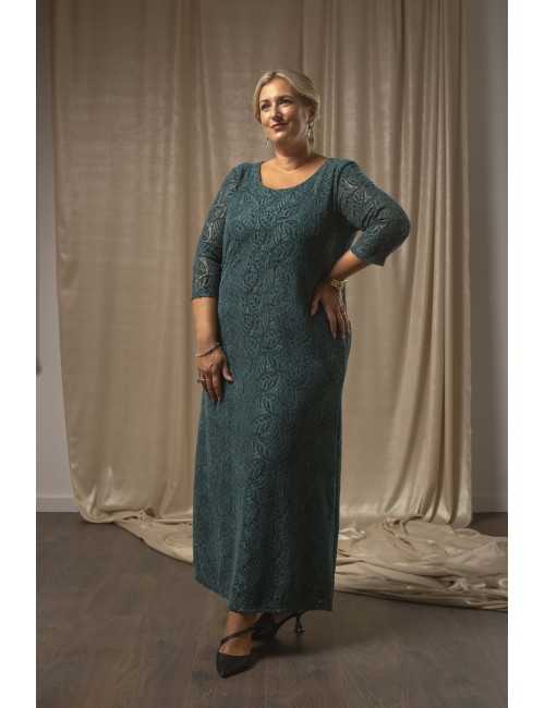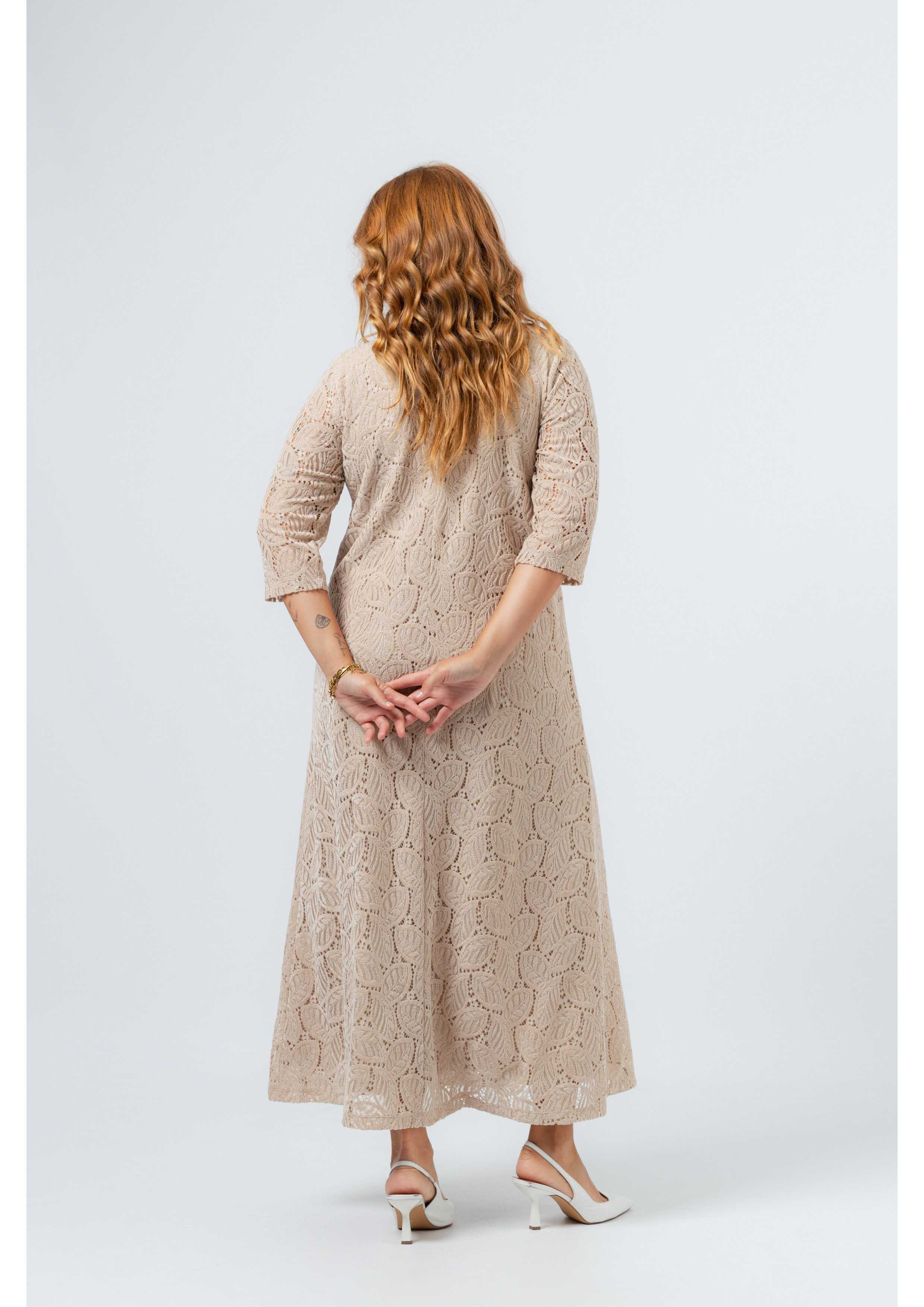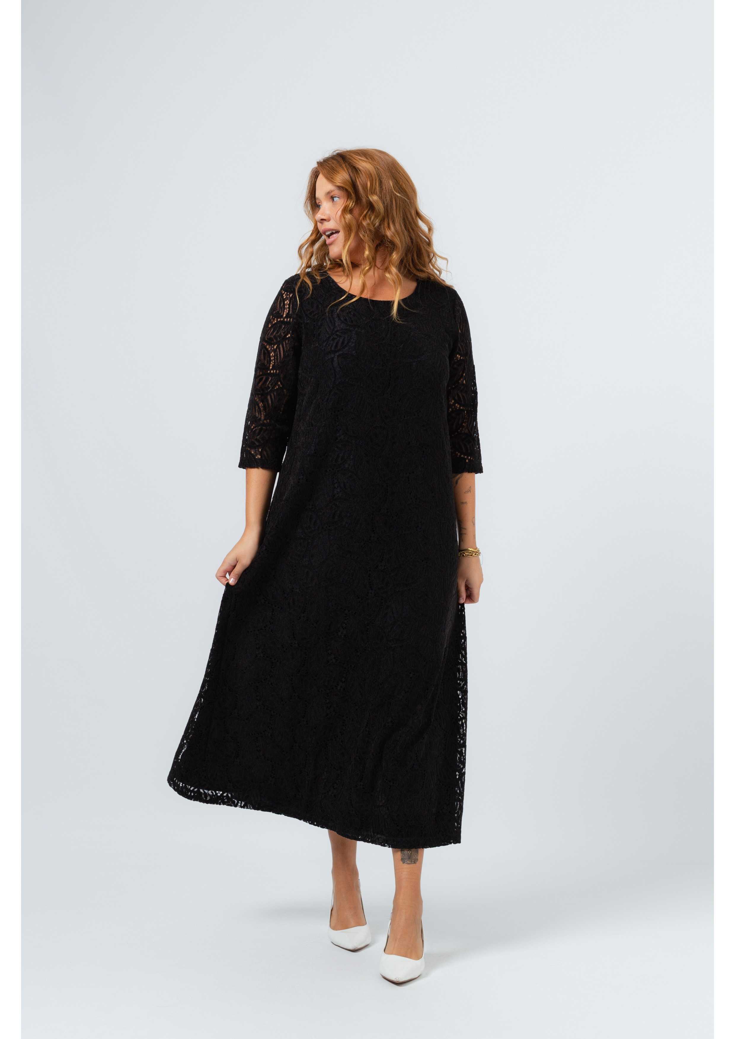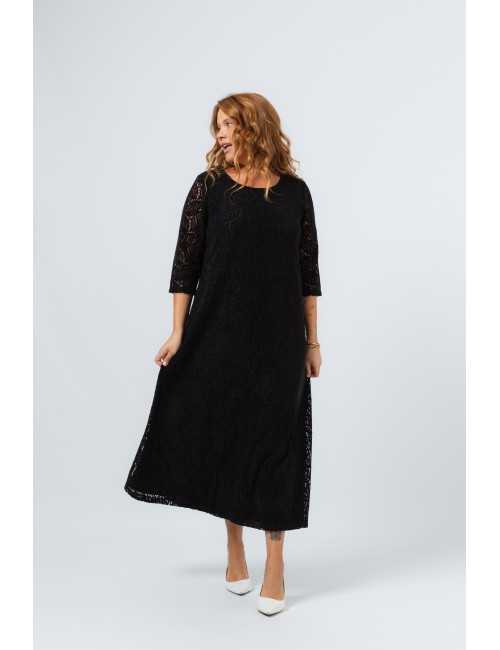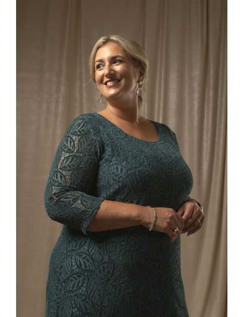 Lace dress, round neckline, 3/4 sleeves. Cut on the back, front and back lined. Collection: Autumn Winter Available in Plus Sizes Own design and manufacturing brand. We are a clothing manufacturing brand with over 50 years of experience. Model: Height 1.65m and wearing size 3XL. Model: Height 1.70m and wearing size 2XL. Composition: 55% Polyester 45% Polyamide | 94% Polyester 6% Spandex
