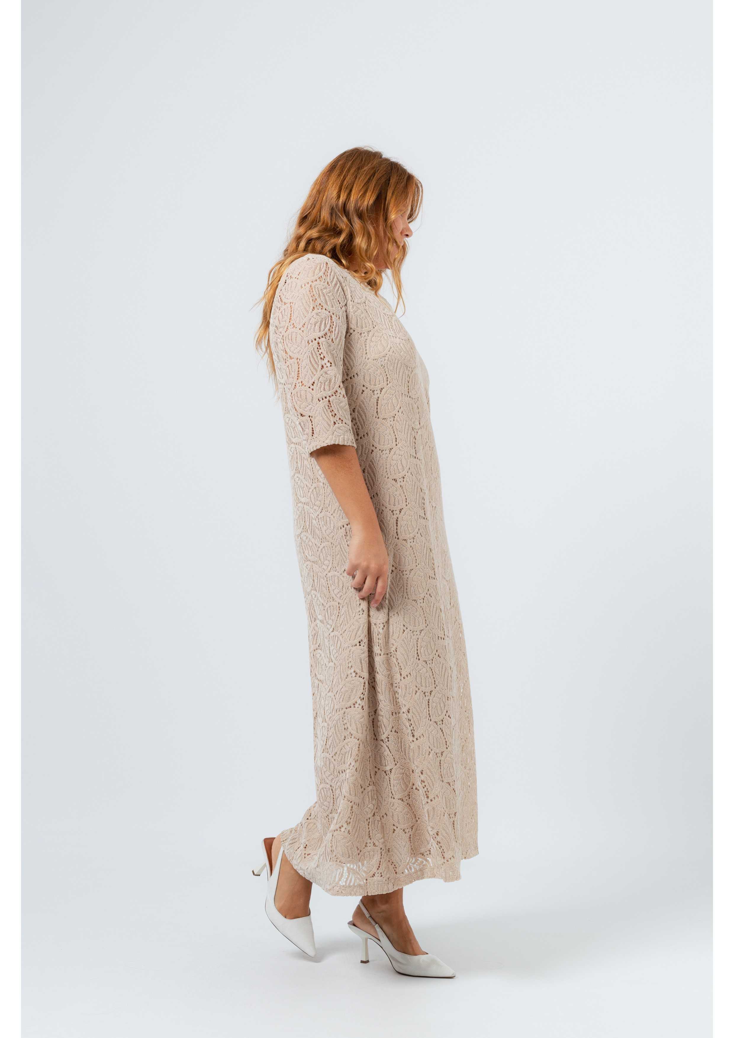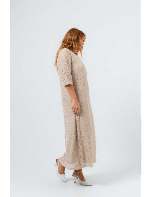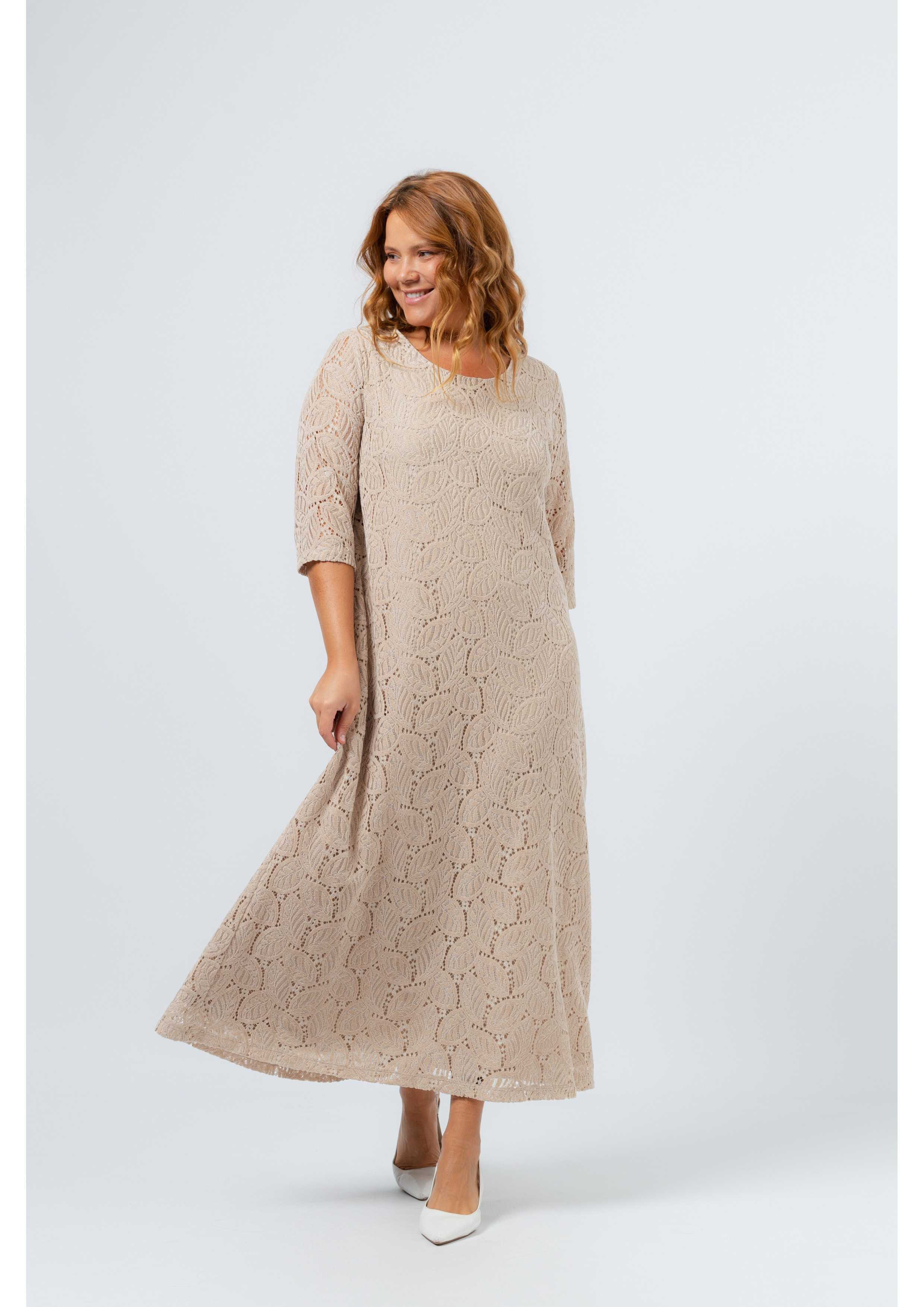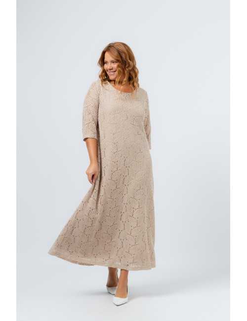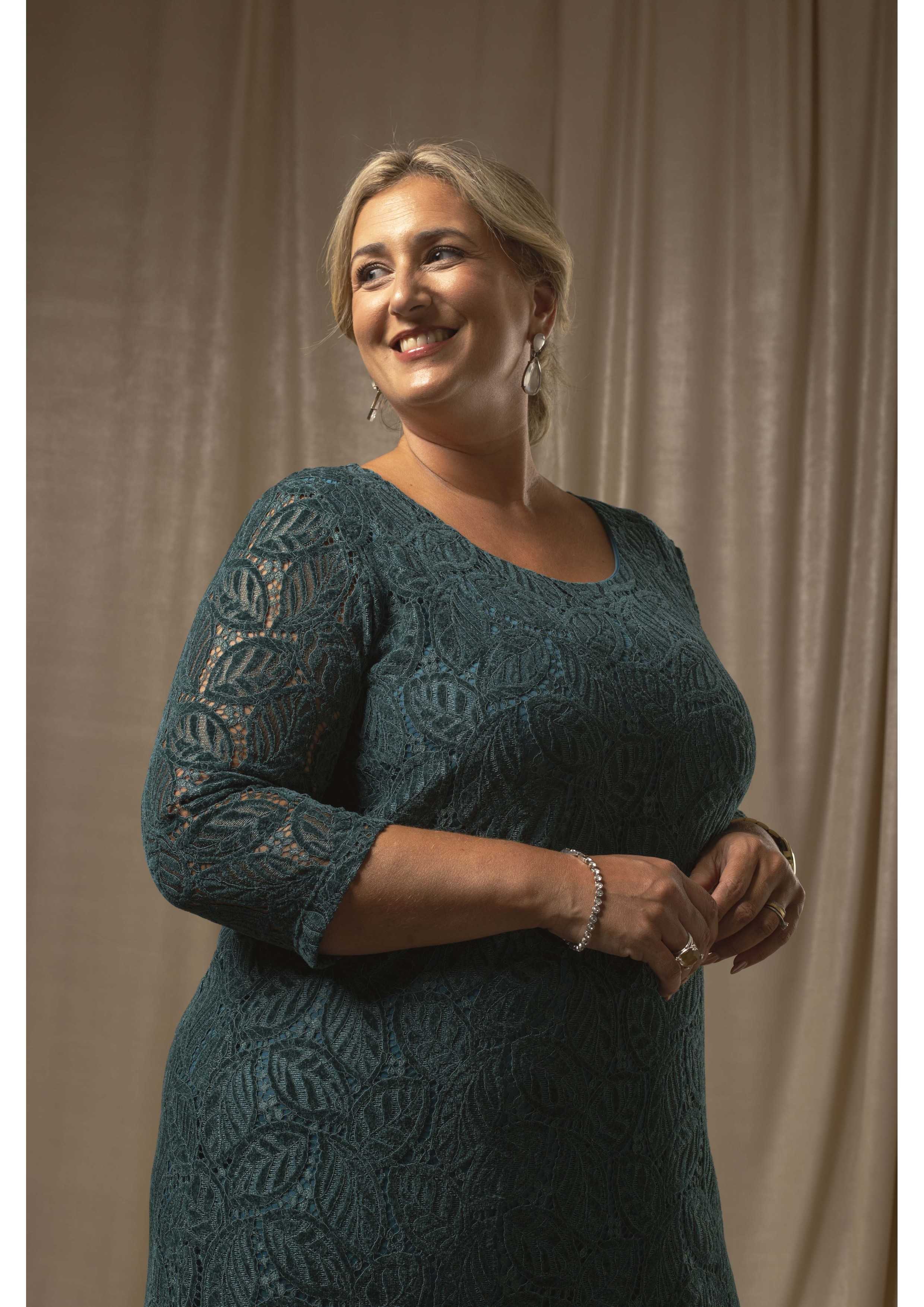 Lace dress, round neckline, 3/4 sleeves. Cut on the back, front and back lined. Collection: Autumn Winter Available in Plus Sizes Own design and manufacturing brand. We are a clothing manufacturing brand with over 50 years of experience. Model: Height 1.65m and wearing size 3XL. Model: Height 1.70m and wearing size 2XL. Composition: 55% Polyester 45% Polyamide | 94% Polyester 6% Spandex