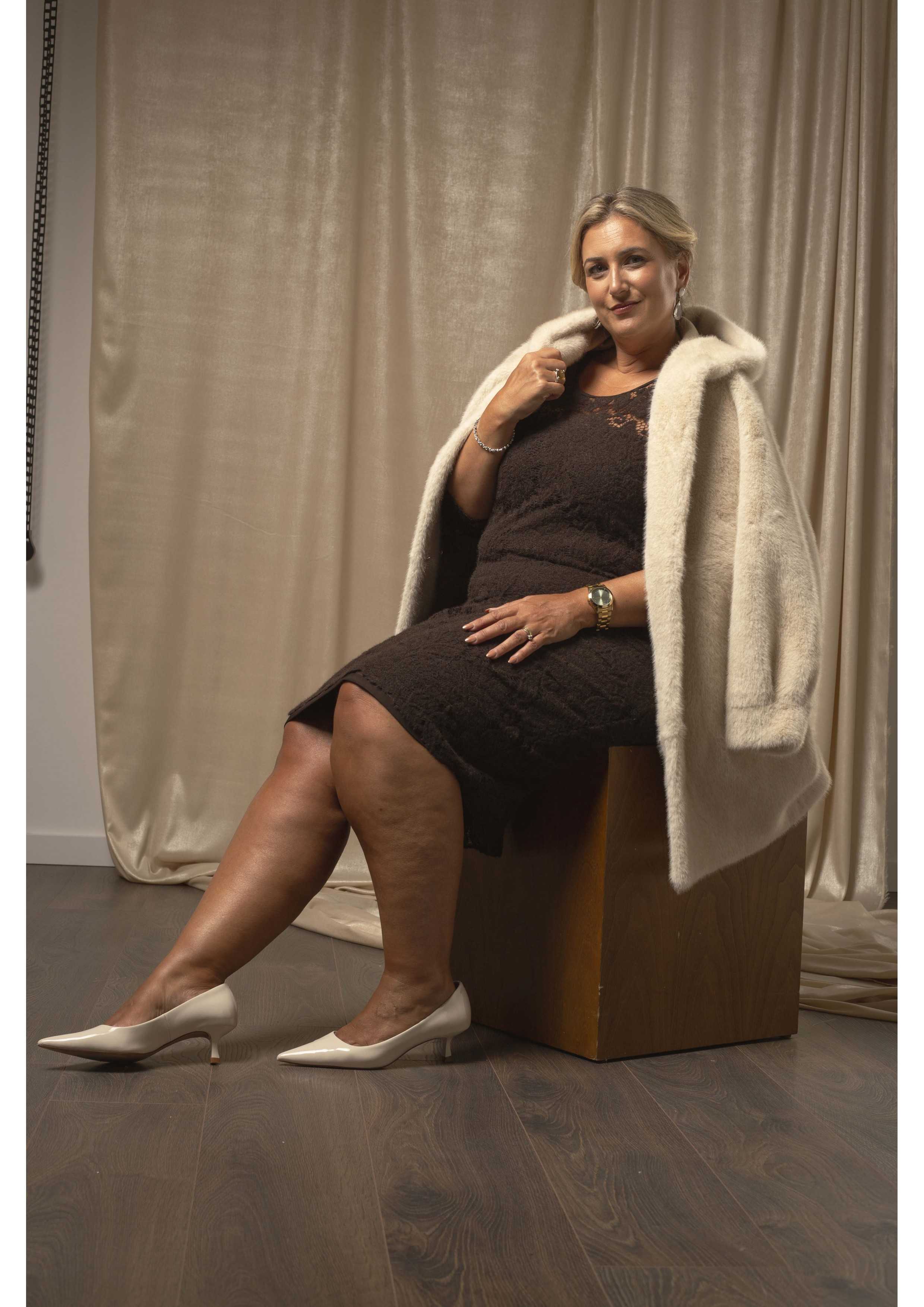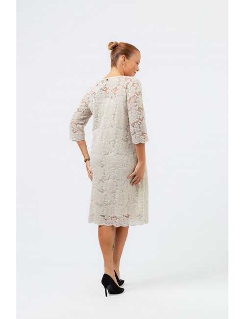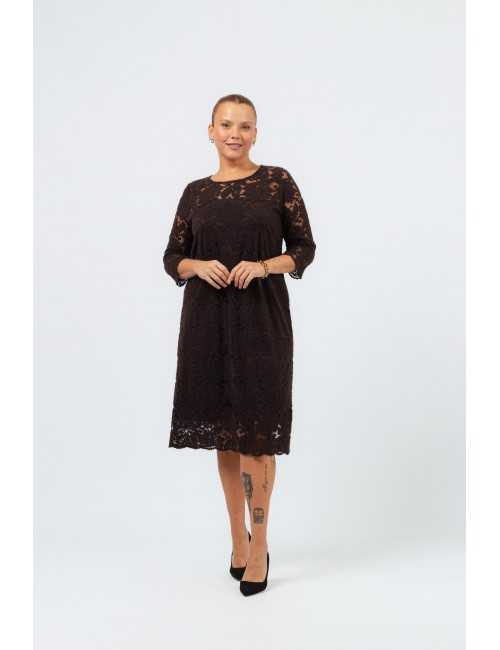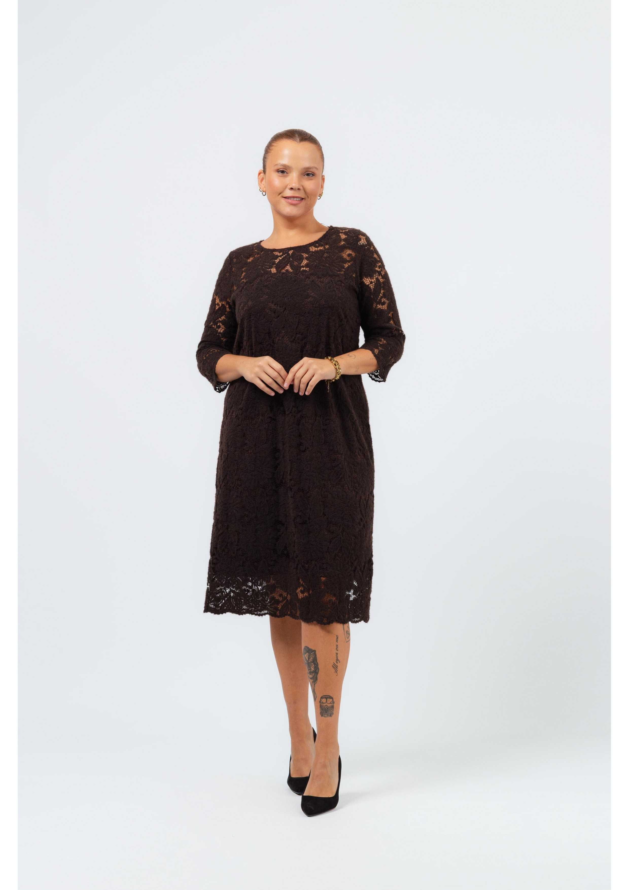 Warm lace dress, lined, finished with the lace's own scallops, on the sleeve and at the bottom. Collection: Autumn Winter Available in Plus Sizes Designed and manufactured by us. We are a clothing brand with over 50 years of experience Model: Height 1.65m wearing size 3XL. Model: Height 1.70m wearing size 2XL. Composition: 100% Polyamide | 94% Polyester 6% Elastane