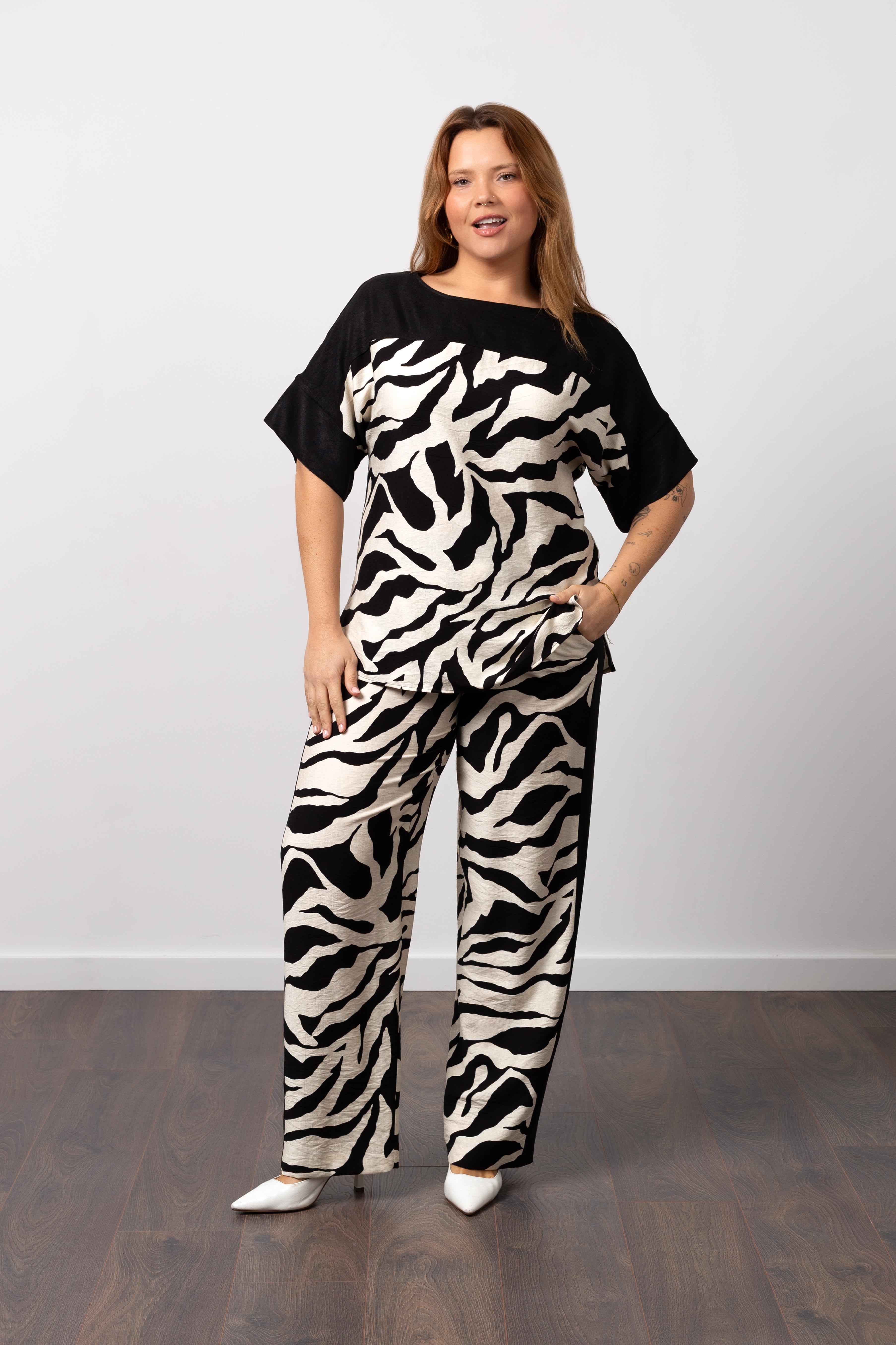 Printed fabric set, with smooth fittings. Top with side slits, spaghetti straps, and smooth sleeves. Closed tear at the back. Pants with side pockets, smooth side hem, elastic waistband. Collection: Spring Summer Available in Plus Sizes Own design and manufacturing product. We are a clothing brand with over 50 years of experience. Model: Height 1.70m and wearing size XL. Composition: 87% Viscose 13% Polyamide | SOLID 100% Polyester