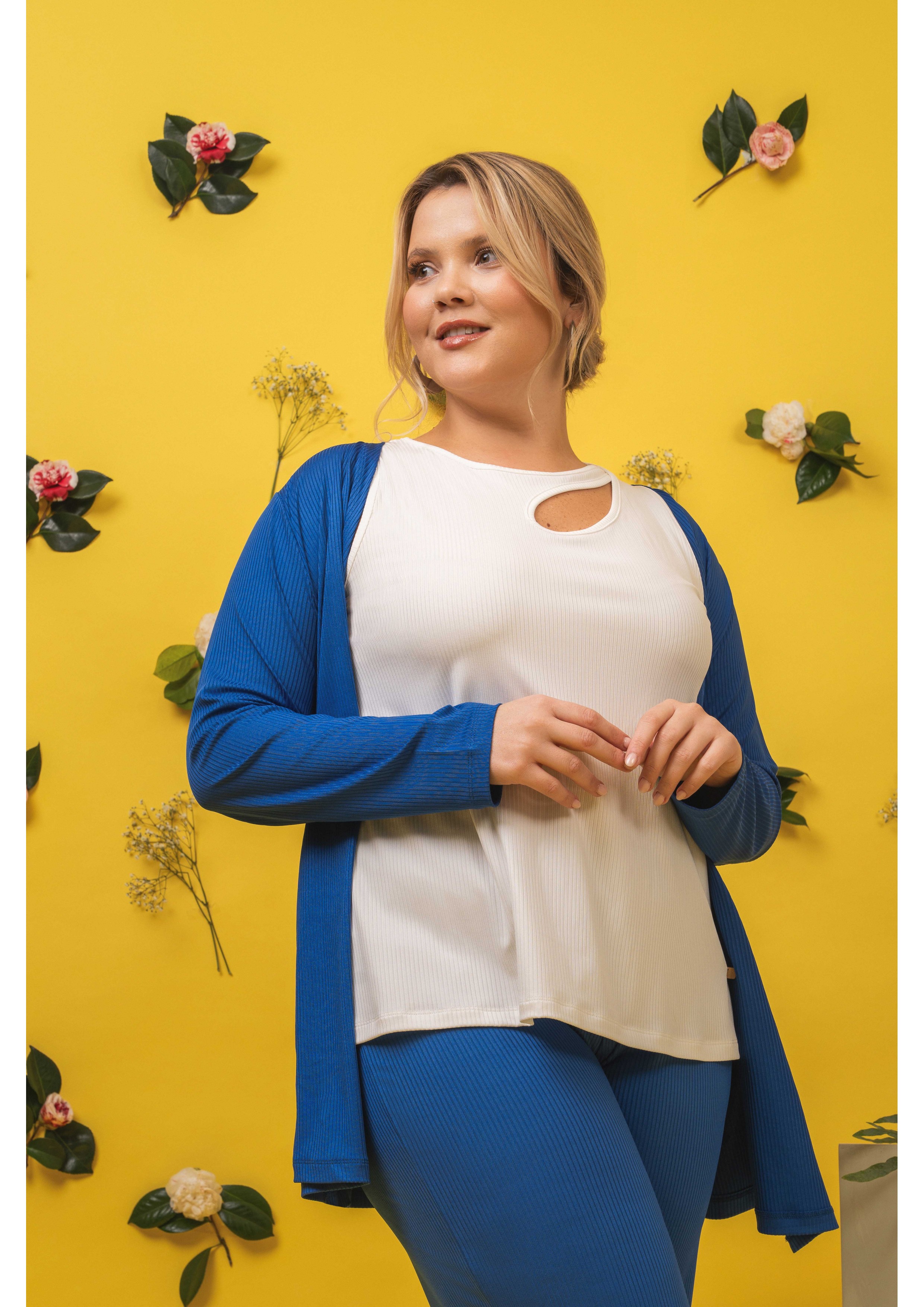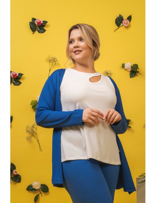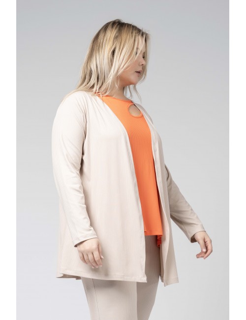 Ribbed knit jacket with scapular. Collection: Spring Summer Available in Plus Sizes Own design and manufacturing product. We are a clothing manufacturing brand with over 50 years of experience Model: Height 1.70m and is wearing size 2XL. Composition: 97% Polyester 3% Elastane