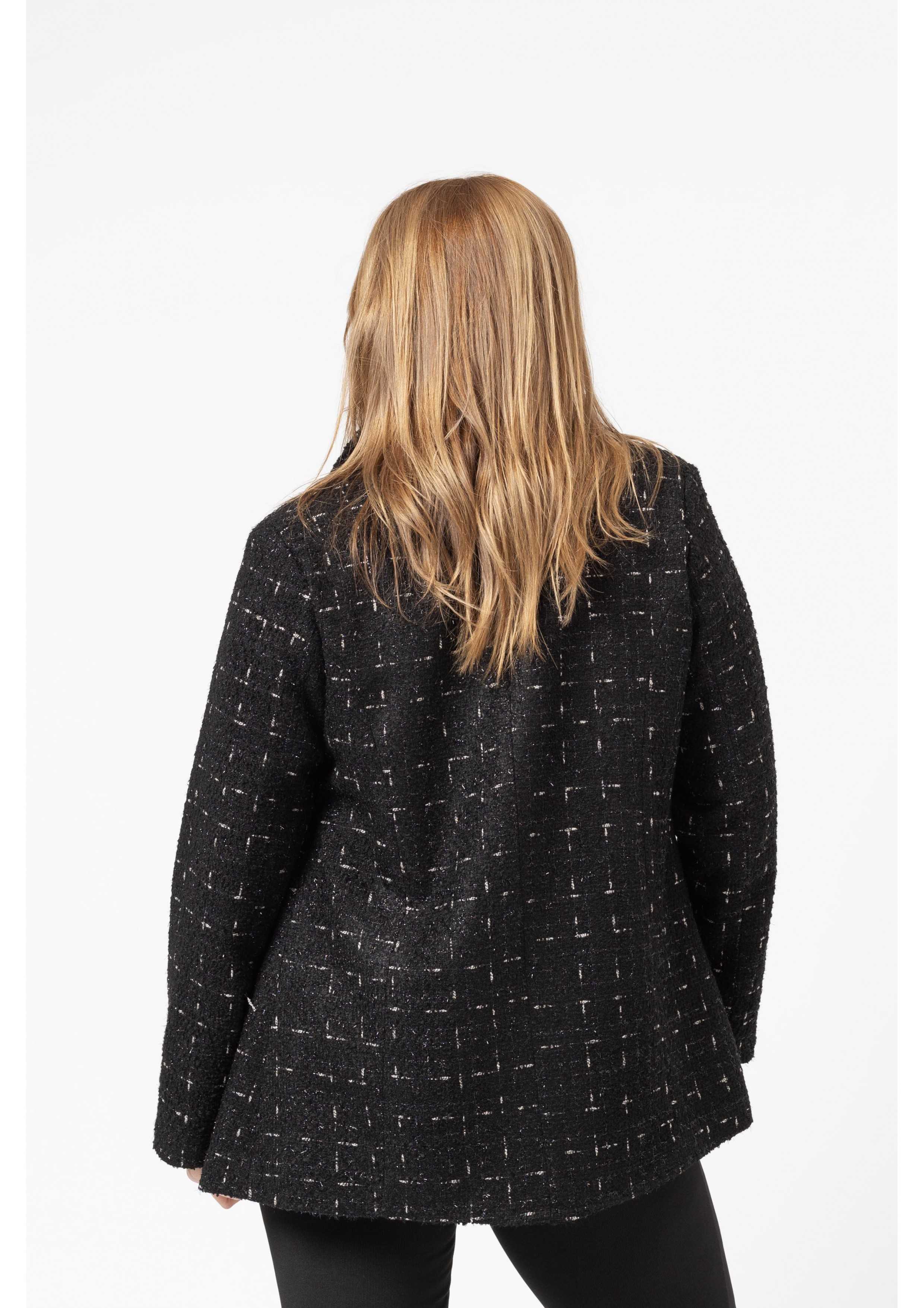 Channel fabric blazer, shiny thread, collar, patch pockets, lined coat. Collection: Autumn Winter Model: Height 1.70m and is wearing size 2XL.