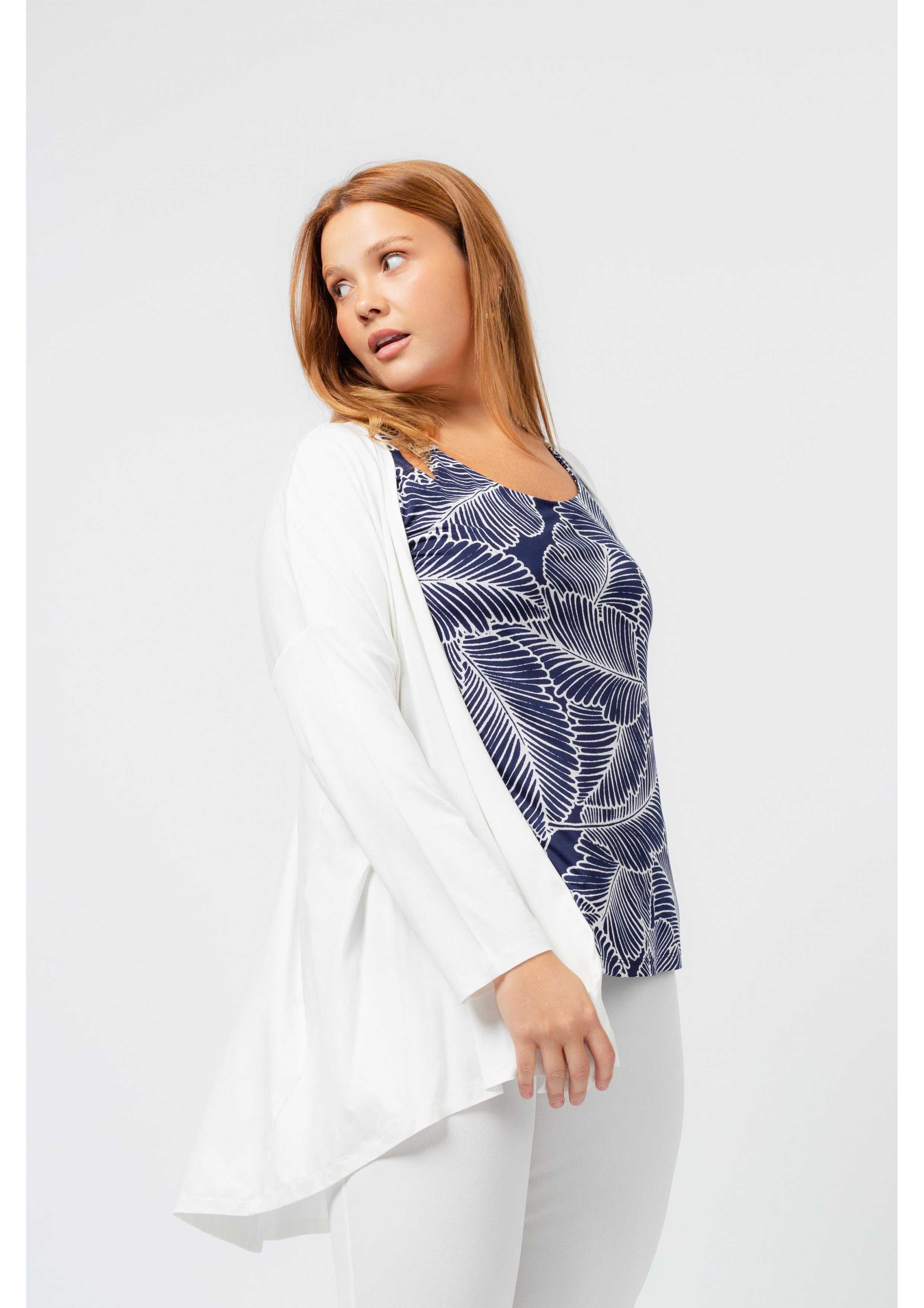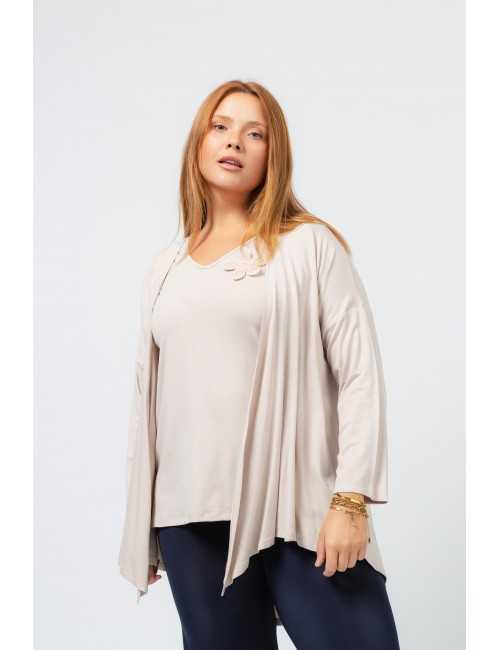 Plain knit jacket. Long sleeves, pointed front rounded back. Collection: Spring Summer Available in Plus Sizes Own design and manufacturing product. We are a clothing manufacturing brand with over 50 years of experience Model: Height 1.70m and is wearing size XL. Composition: 94% Viscose 6% Elastane