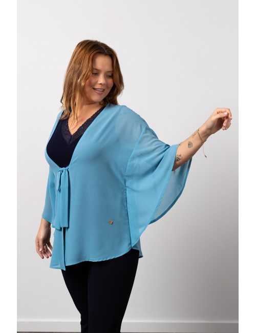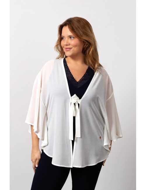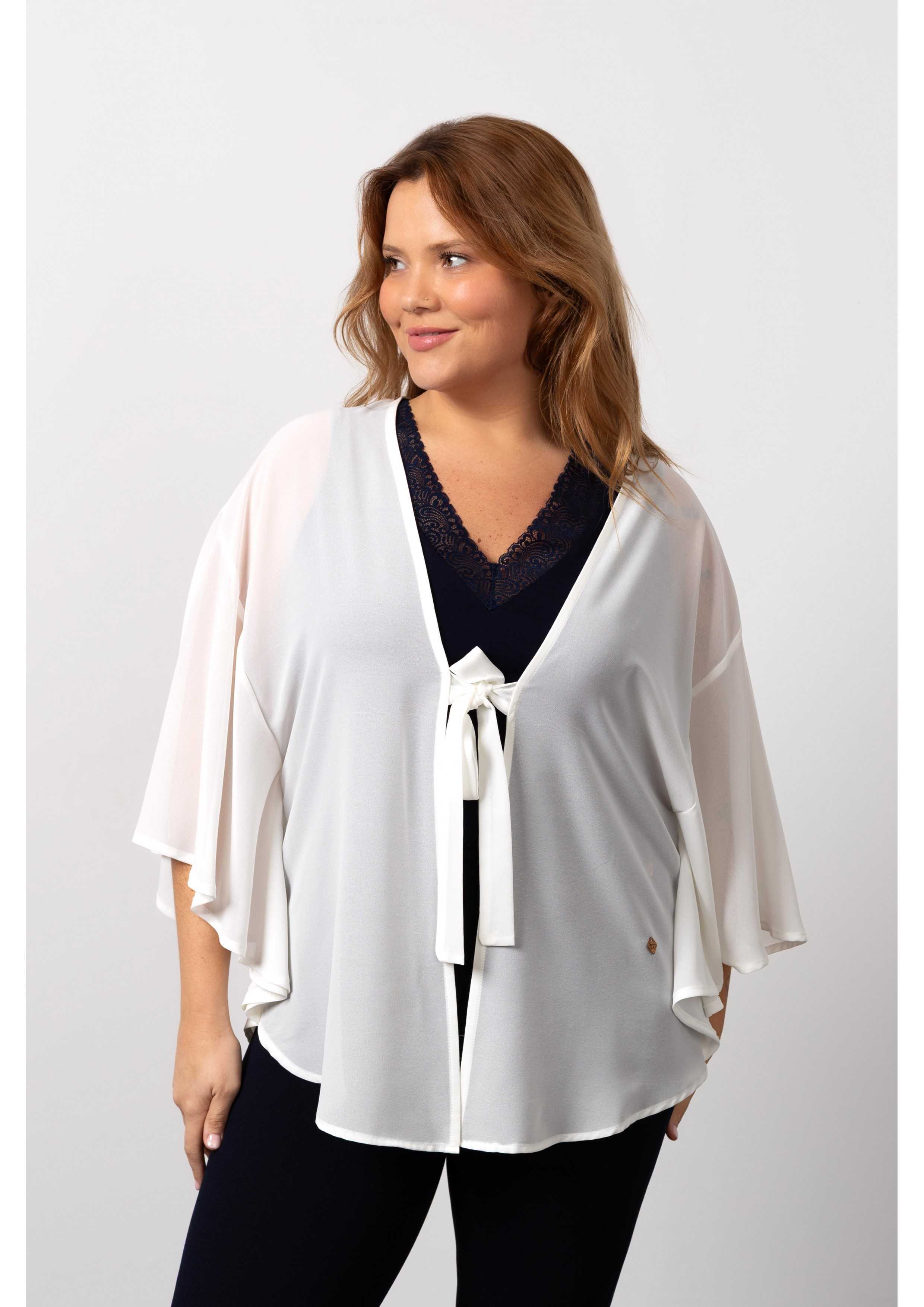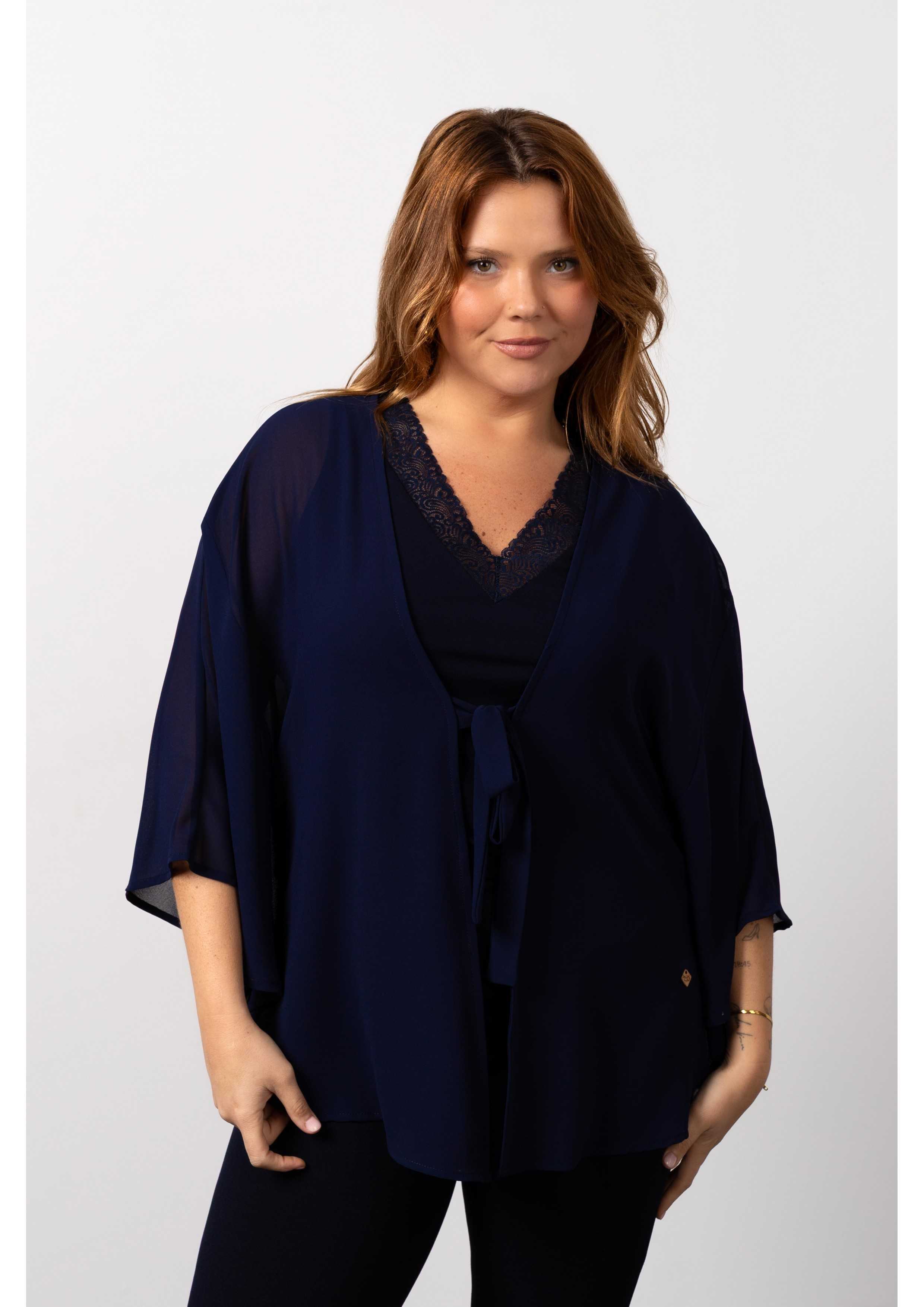 Coat in fine plain fabric. Poncho-style model. Closes with strips of the same fabric in the front. Round design at the base. Collection: Spring Summer Available in Plus Sizes Own design and manufacturing product. We are a clothing manufacturing brand with over 50 years of experience Model: Height 1.70m and wearing size XL. Composition: 100% Polyester