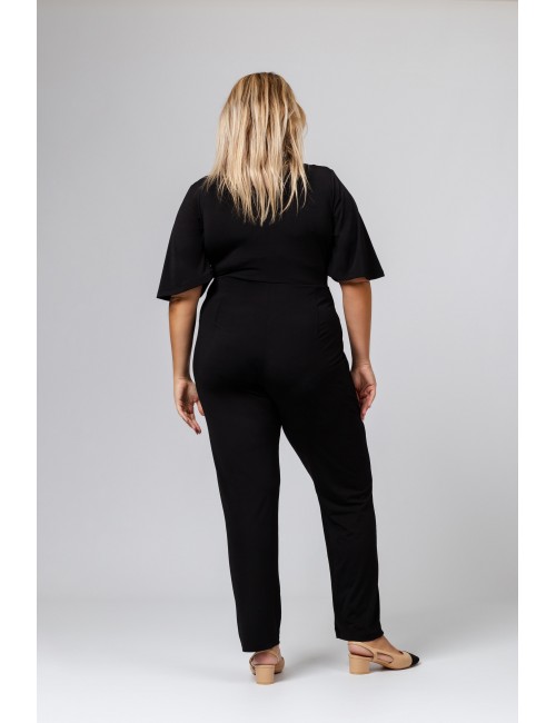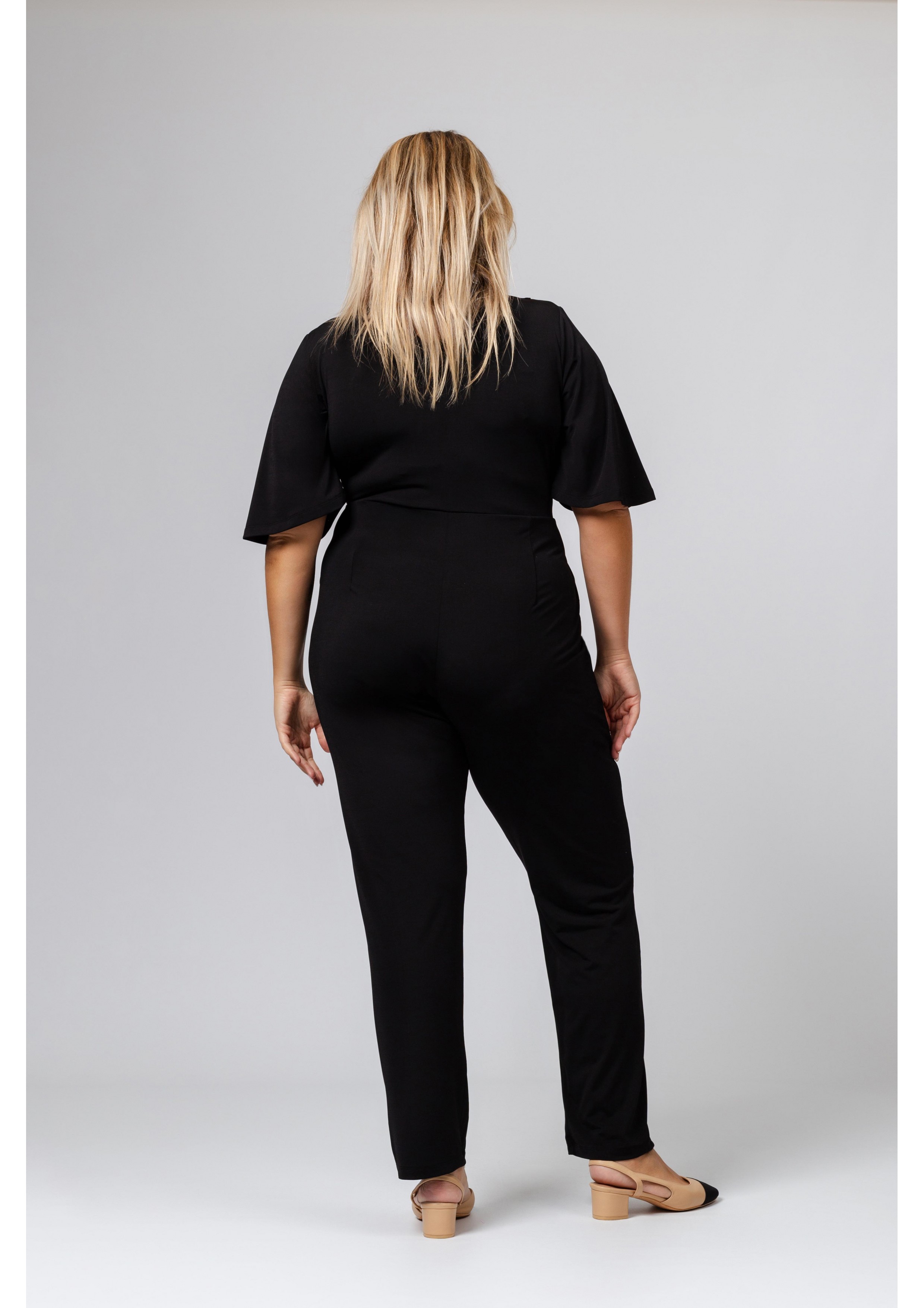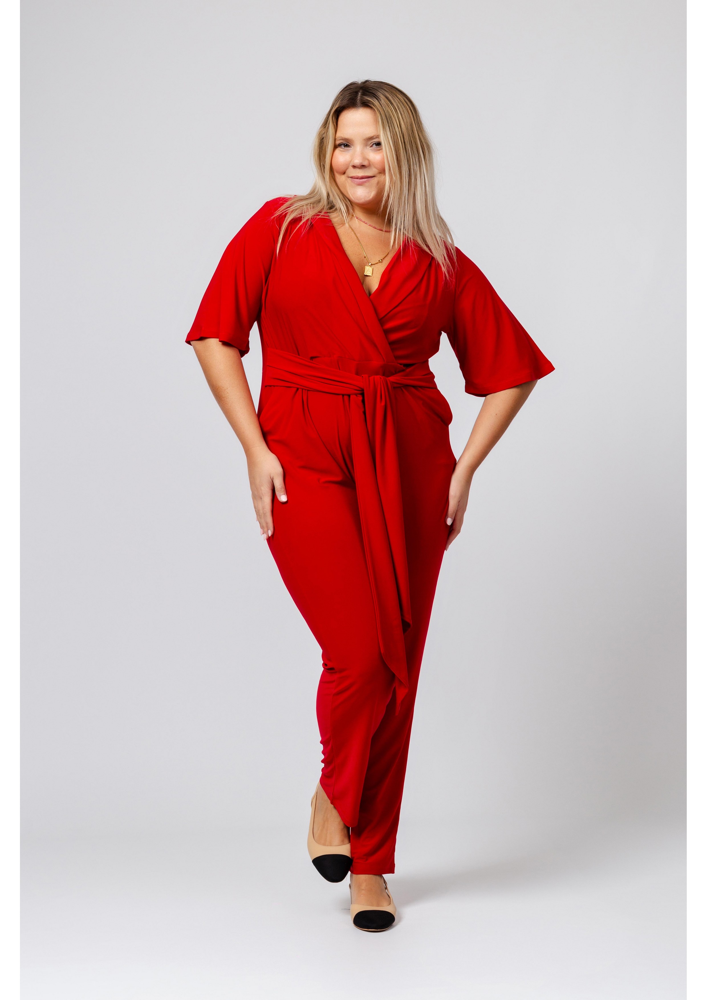 Solid knit jumpsuit with pockets and belt. Collection: Spring Summer Available in Plus Sizes Own design and manufacturing product. We are a clothing manufacturing brand with over 50 years of experience Model: Height 1.70m and is wearing size 2XL. Composition: 94% Polyester 6% Elastane