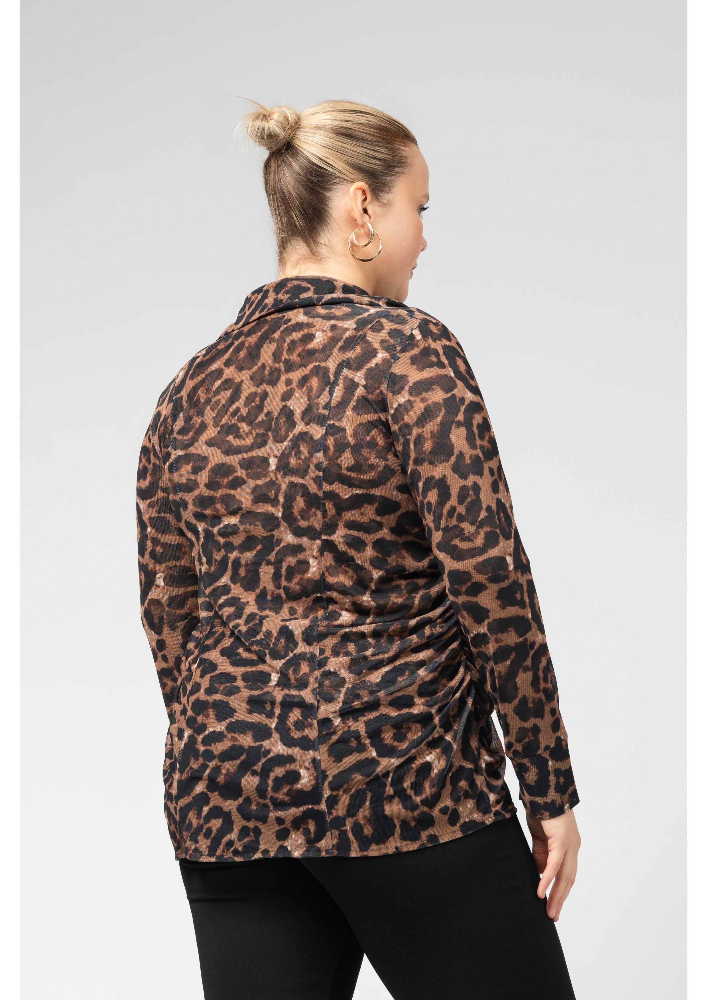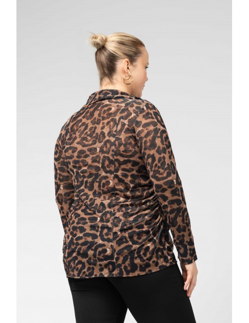 Printed tigress resil blouse with gathered sides Collection: Autumn Winter Model: Height 1.70m and is wearing size 2XL. Model: Height 1.63m and is wearing size 2XL.