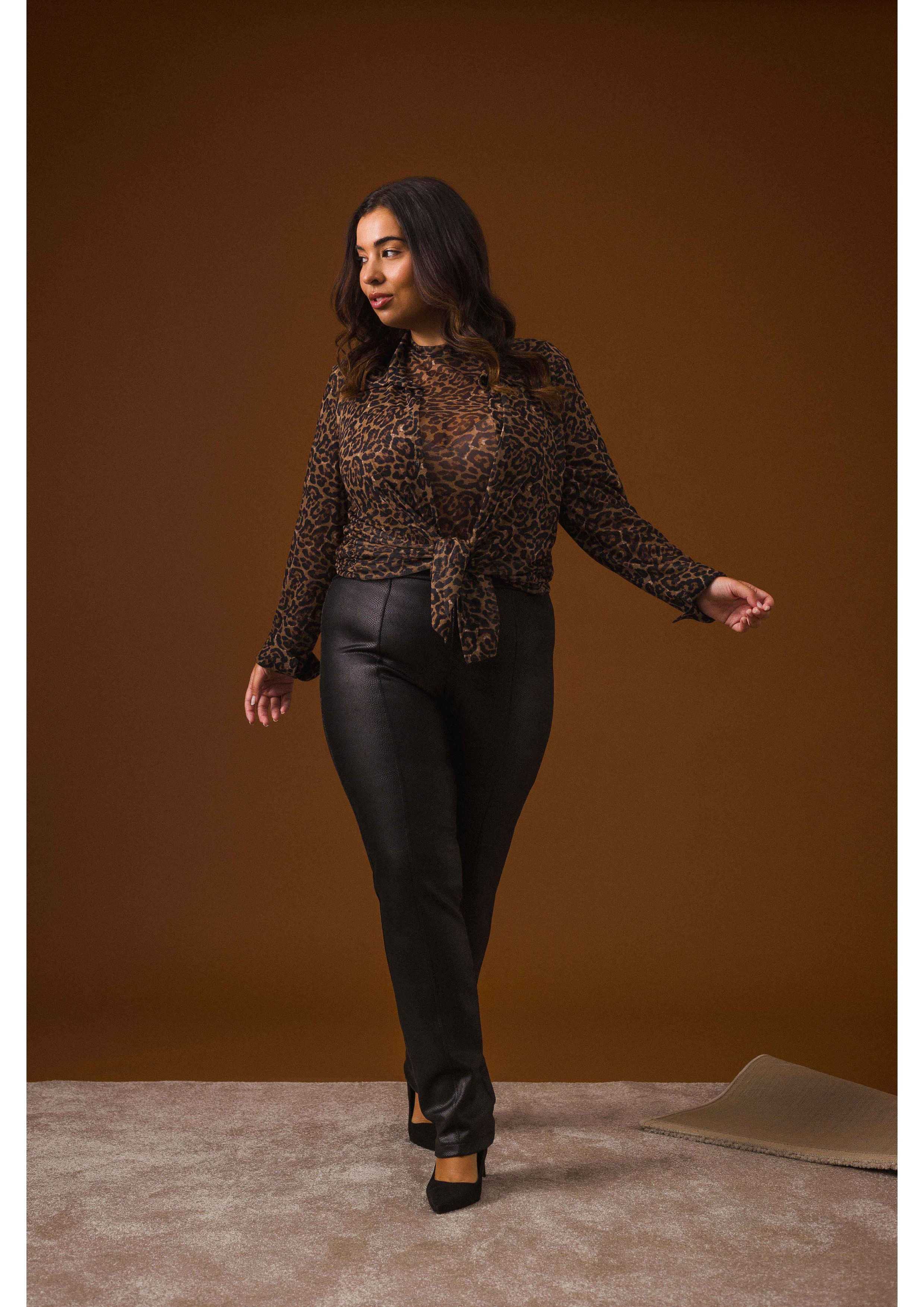 Printed tigress resil blouse with gathered sides Collection: Autumn Winter Available in Plus Sizes Own design and manufacturing product. We are a clothing manufacturing brand with over 50 years of experience Model: Height 1.70m and is wearing size 2XL. Model: Height 1.63m and is wearing size 2XL. Composition: 100% Polyester