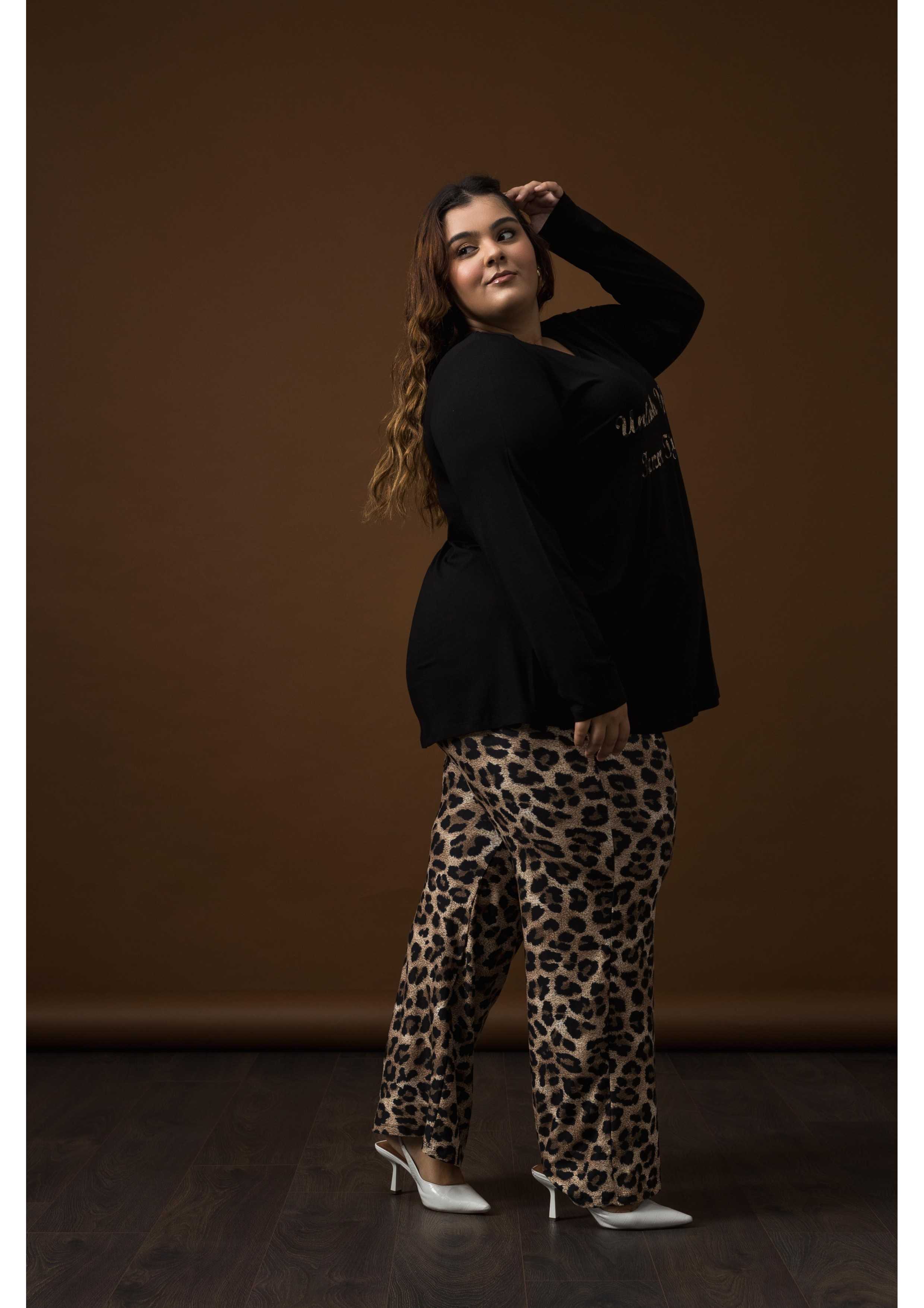 Printed jersey pants, leopard, elastic waistband. Collection: Autumn Winter Model: Height 1.67m and wearing size GG. Model: Height 1.70m and wearing size 2XL.