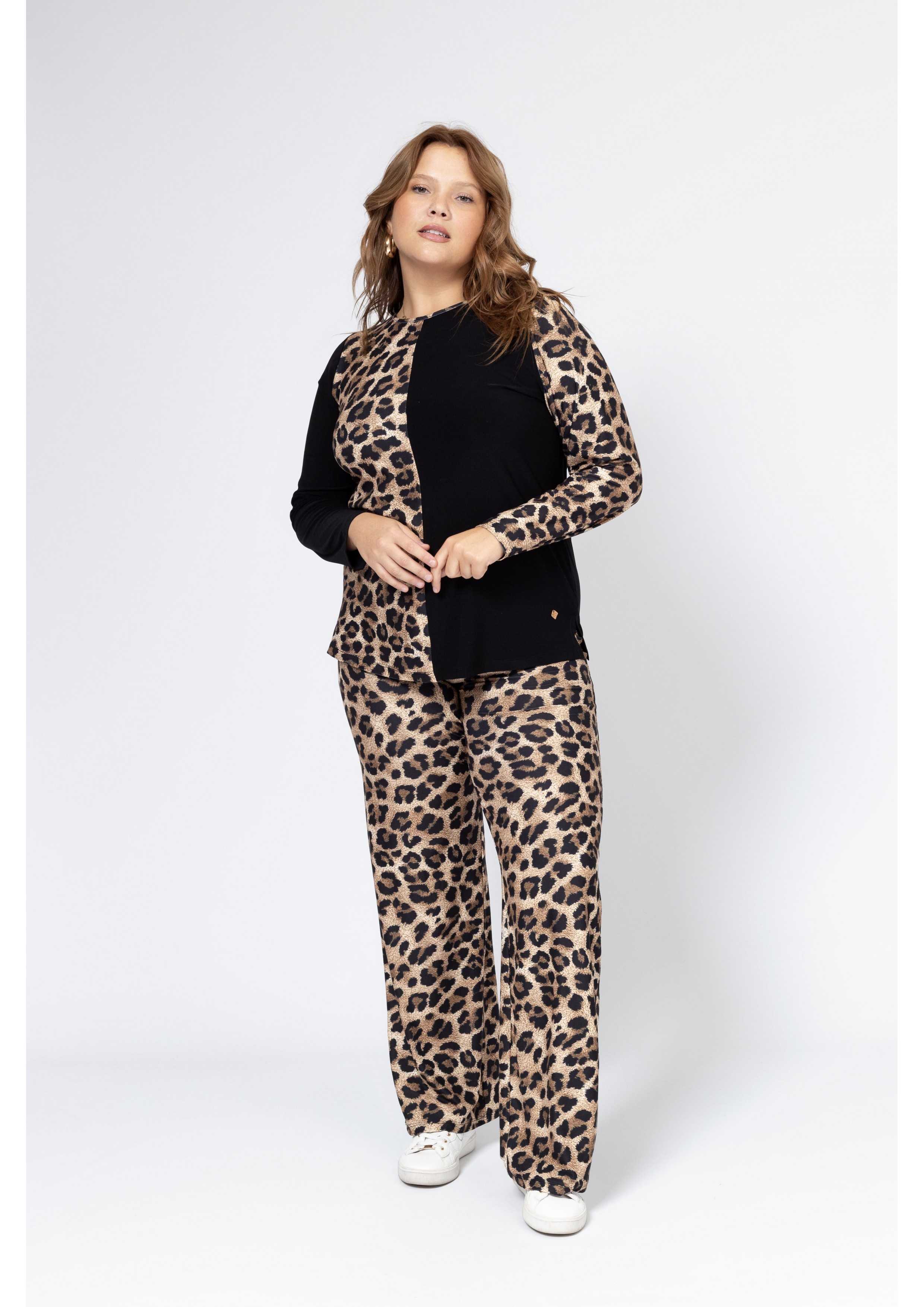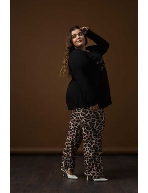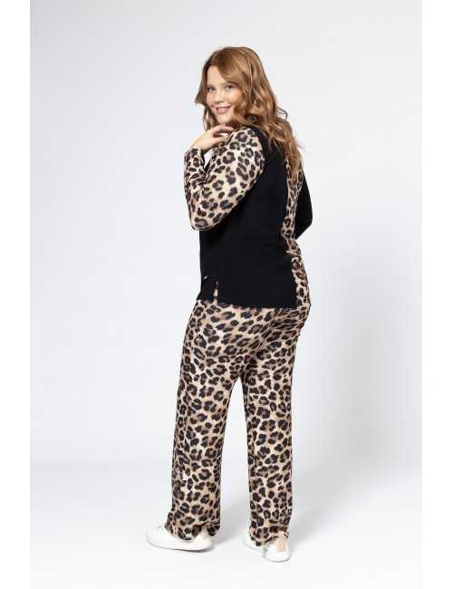 Printed jersey pants, leopard, elastic waistband. Collection: Autumn Winter Available in Plus Sizes Own design and manufacturing product. We are a clothing manufacturing brand with over 50 years of experience Model: Height 1.67m and wearing size GG. Model: Height 1.70m and wearing size 2XL. Composition: 94% Polyester 6% Elastane