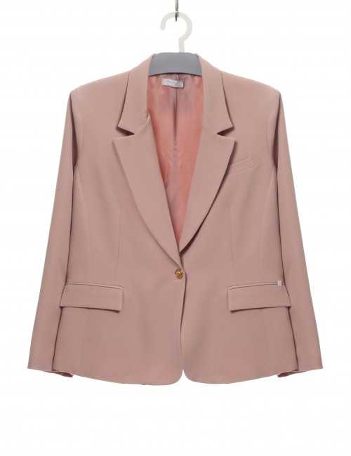 Plain fabric blazer, fitted cut, features buttons on the sleeves. Collection: Spring Summer Model: Height 1.70m and wearing size 2XL.