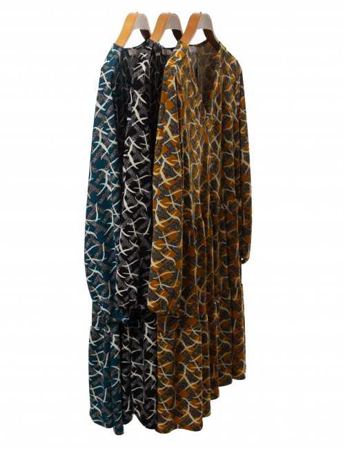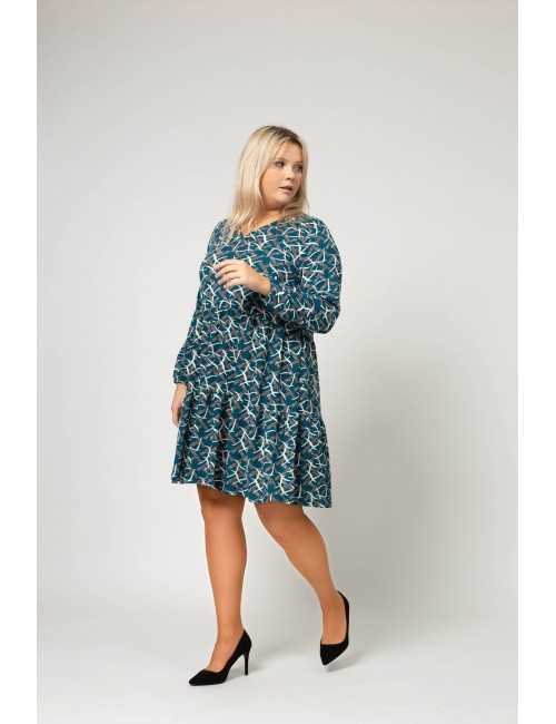 Floral knit dress, V-neck and ruffle at the bottom Collection: Autumn Winter Available in Plus Sizes Own design and manufacturing product. We are a clothing brand with over 50 years of experience Model: Height 1.70m and is wearing size 2XL. Composition: 94% Polyester 6% Elastane