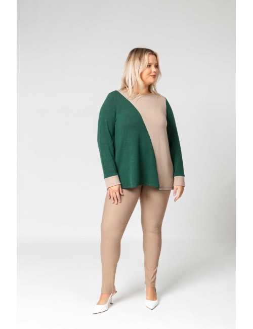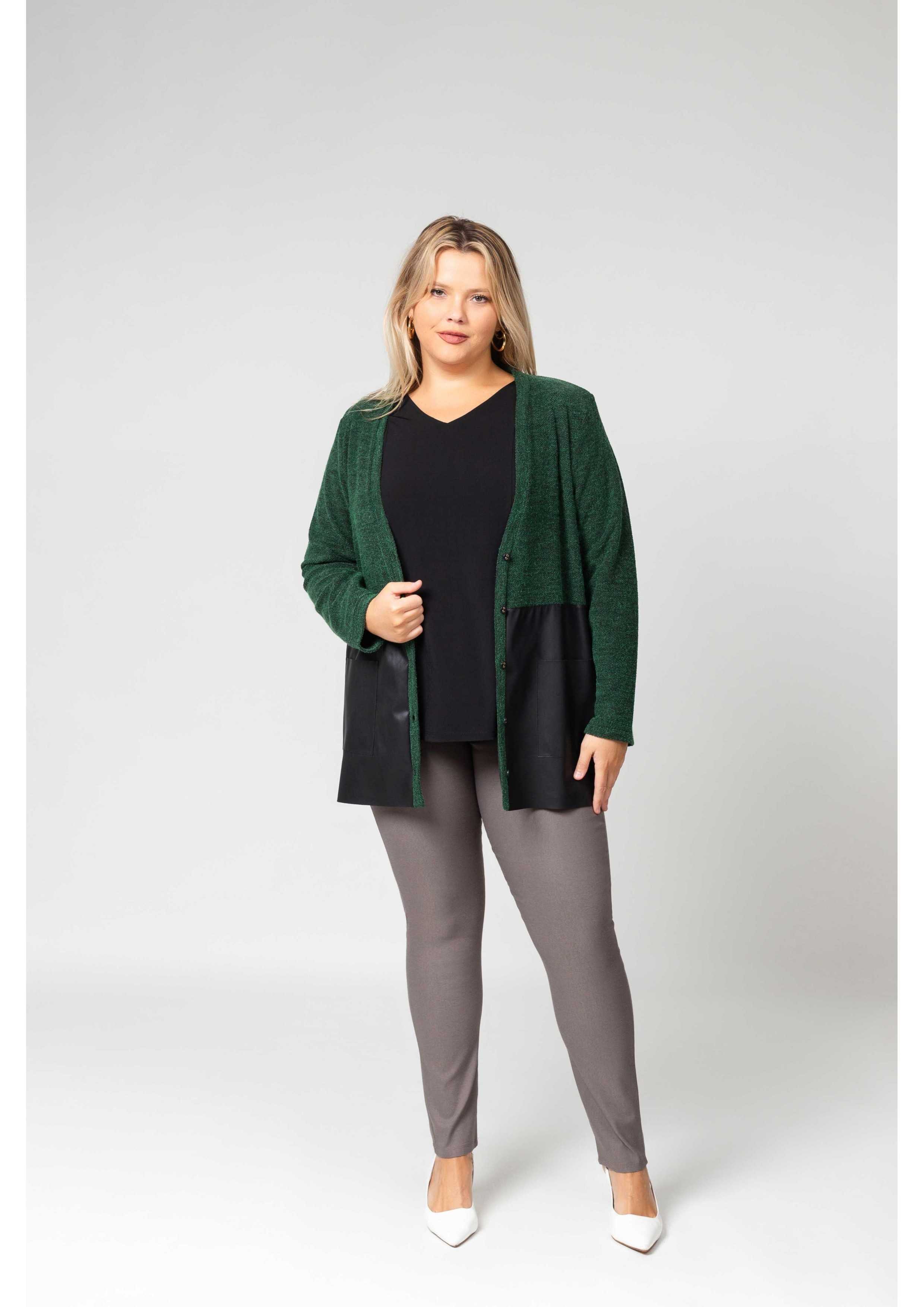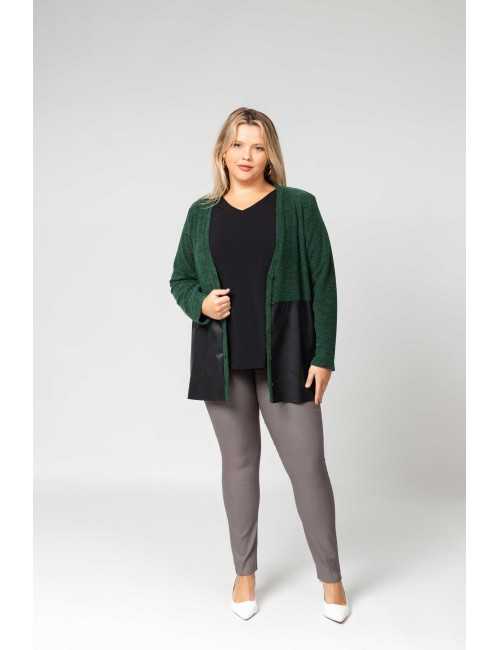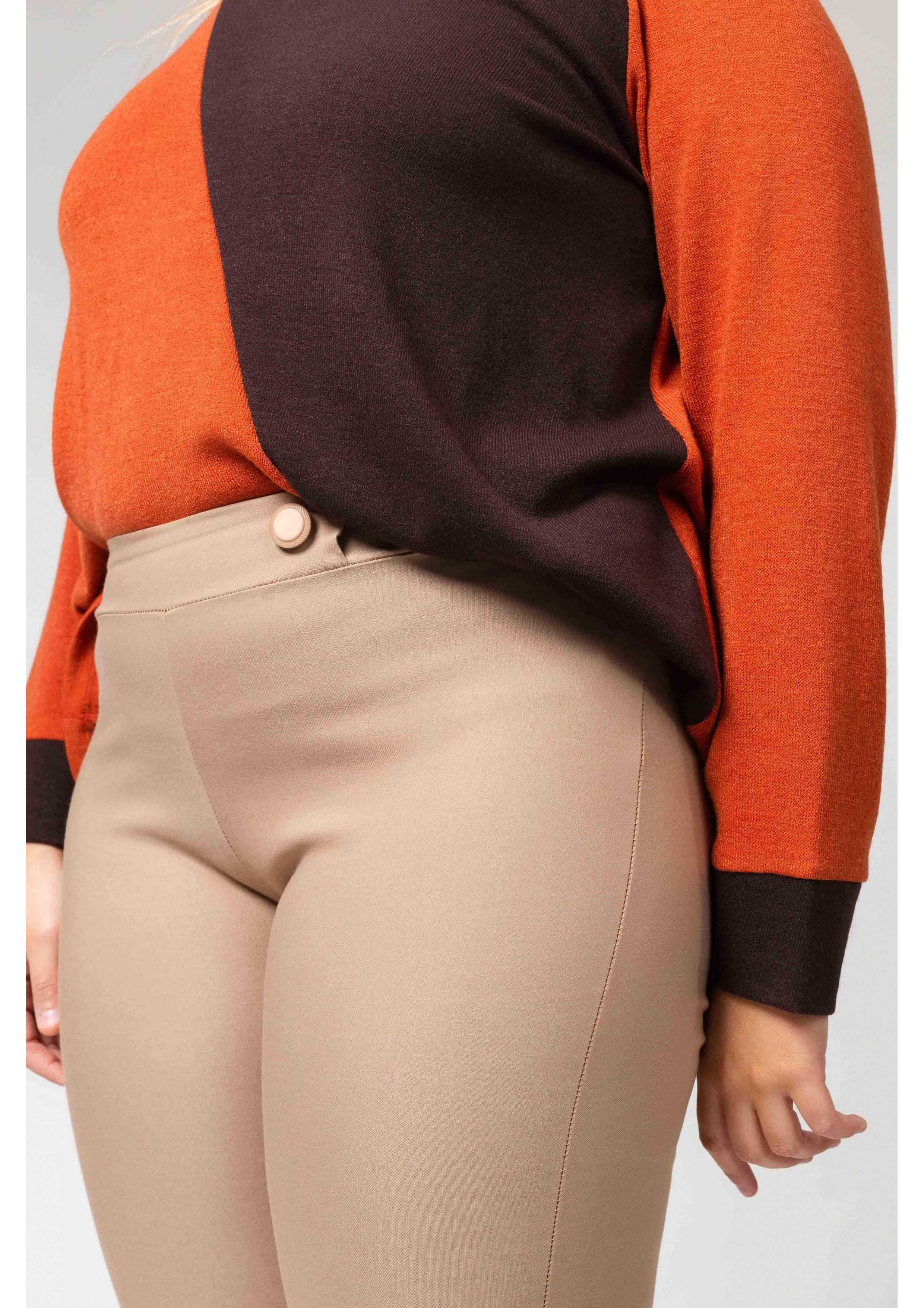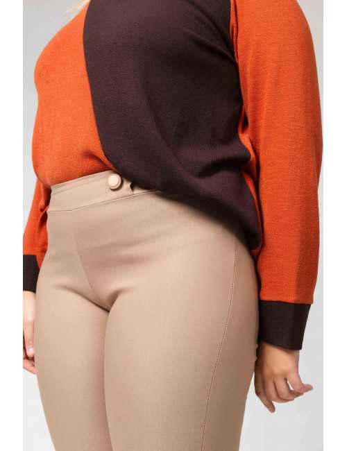 Plain knit pants with elastic waistband and button for closure. Collection: Autumn Winter Available in Plus Sizes Own design and manufacturing product. We are a clothing manufacturing brand with over 50 years of experience Model: Height 1.70m wearing size 2XL. Composition: 76% Viscose 21% Polyamide 3% Elastane