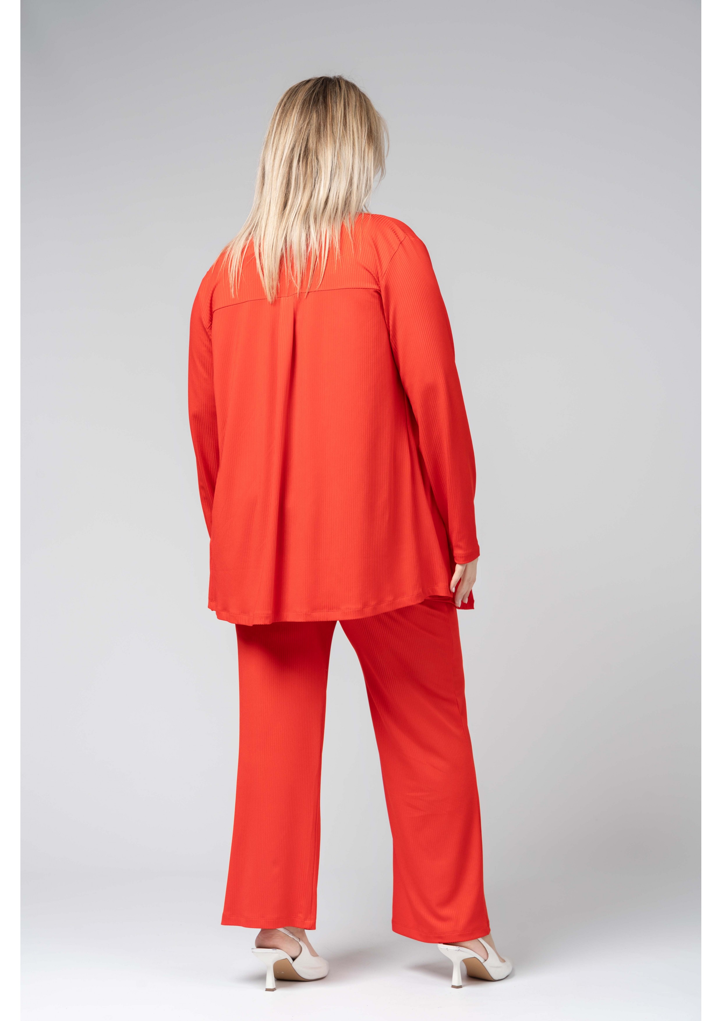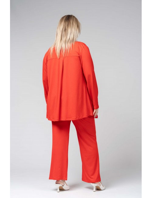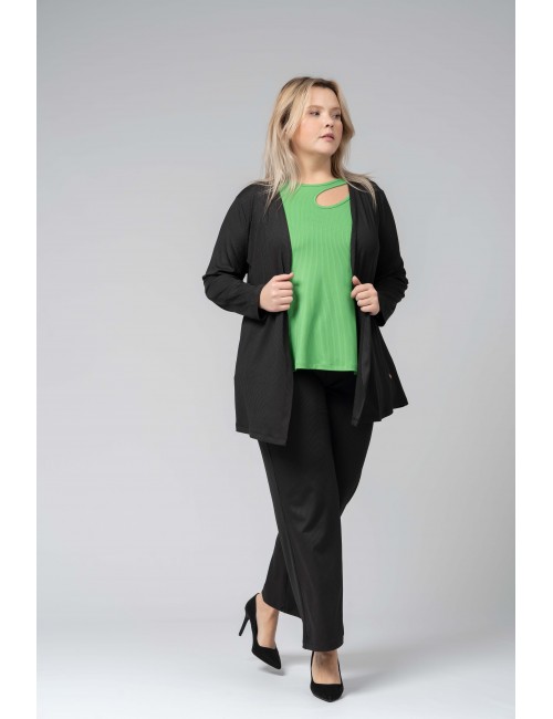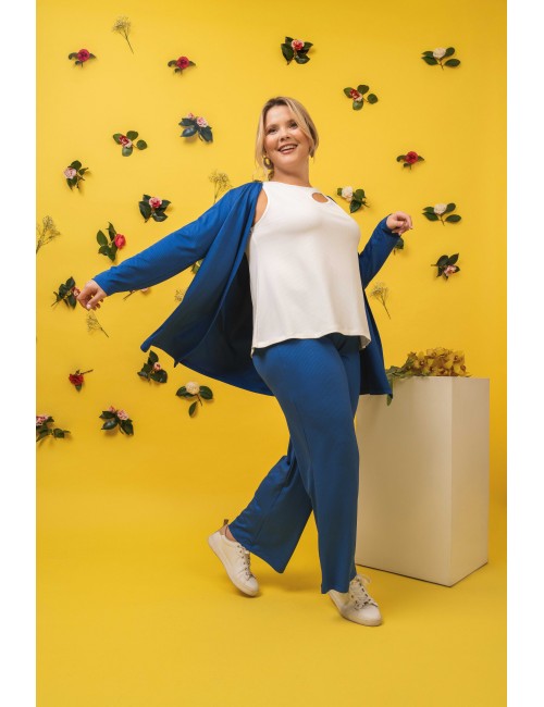 Rib knit pants with elastic waistband. Collection: Spring Summer Available in Plus Sizes Own design and manufacturing product. We are a clothing brand with over 50 years of experience Model: Height 1.70m and wearing size 2XL. Composition: 97% Polyester 3% Spandex