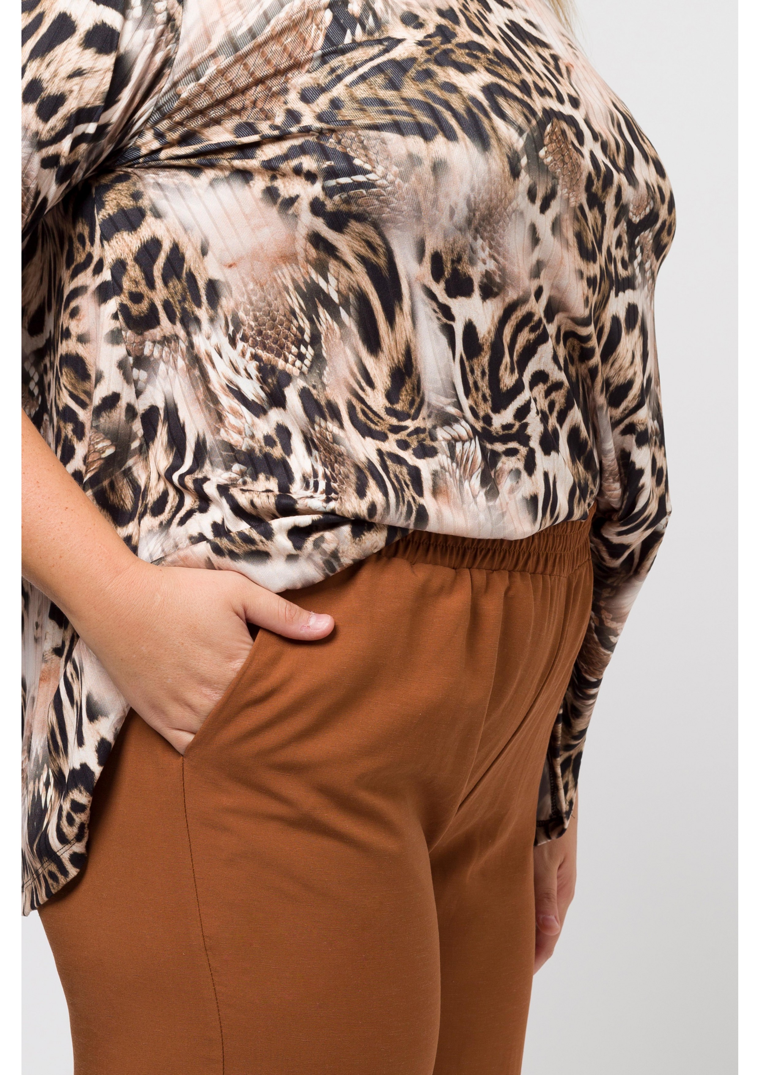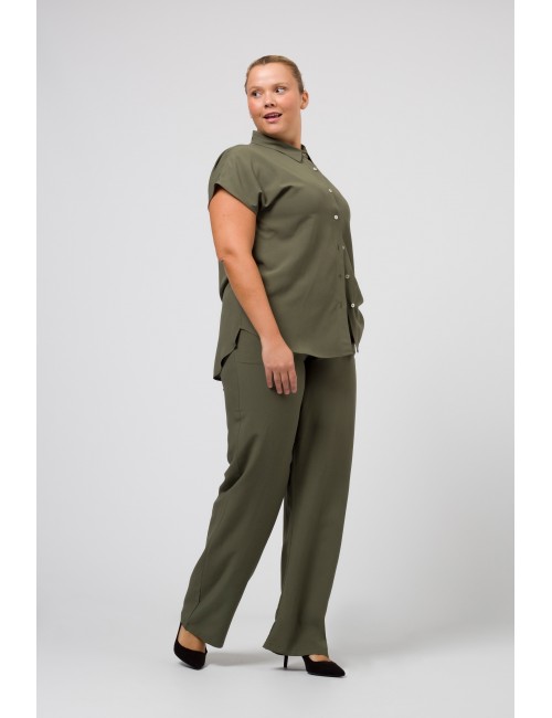 Plain fabric pants, side pockets, elastic waistband, with topstitching. Collection: Spring Summer Available in Plus Sizes Own design and manufacturing product. We are a clothing brand with over 50 years of experience. Model: Height 1.70m and wearing size 2XL. Composition: 87% Viscose and 13% Linen