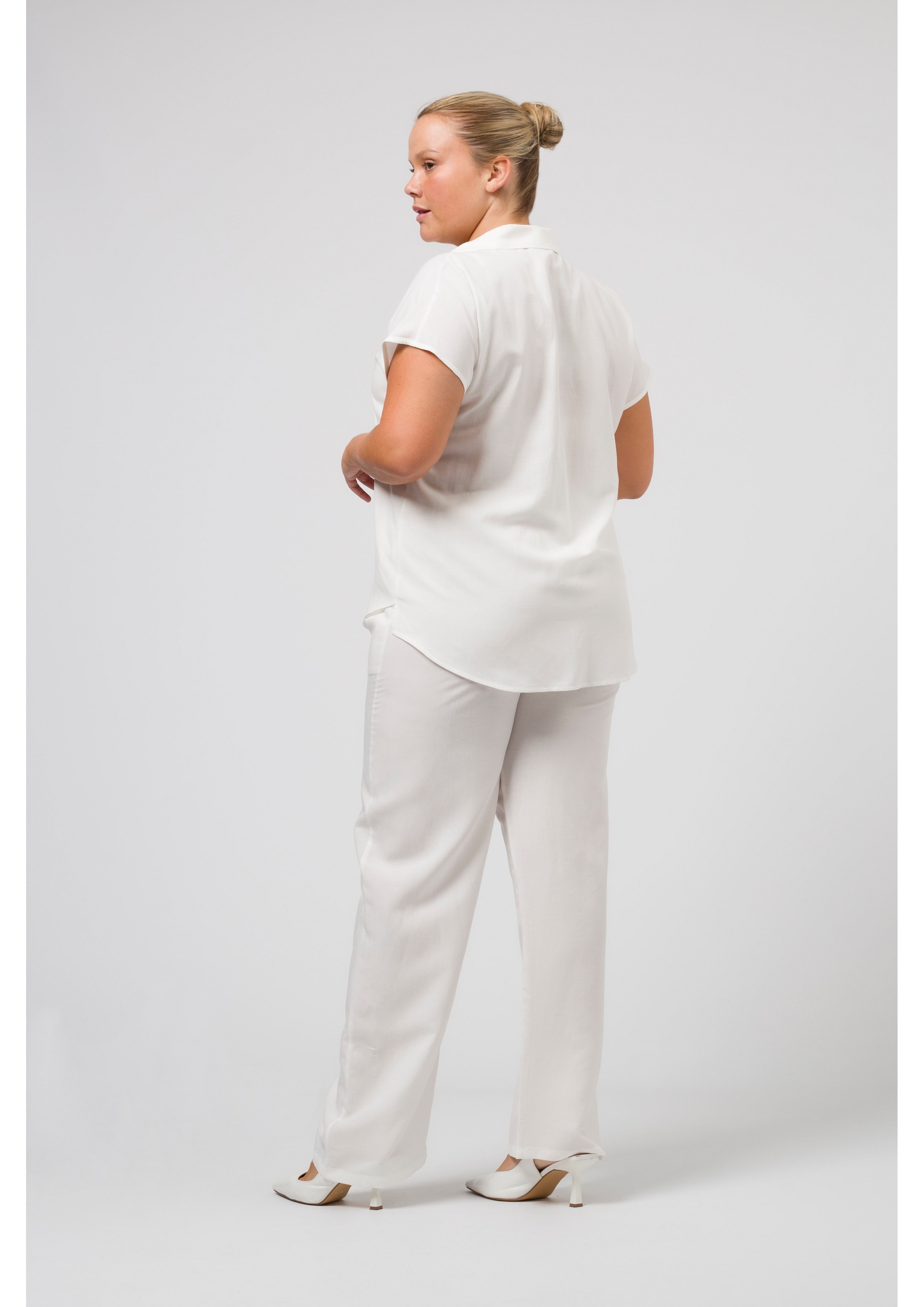 Plain fabric pants, side pockets, elastic waistband, with topstitching. Collection: Spring Summer Model: Height 1.70m and wearing size 2XL.