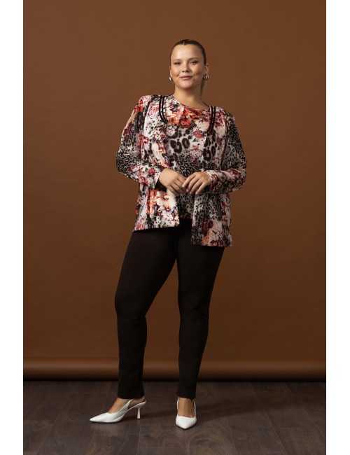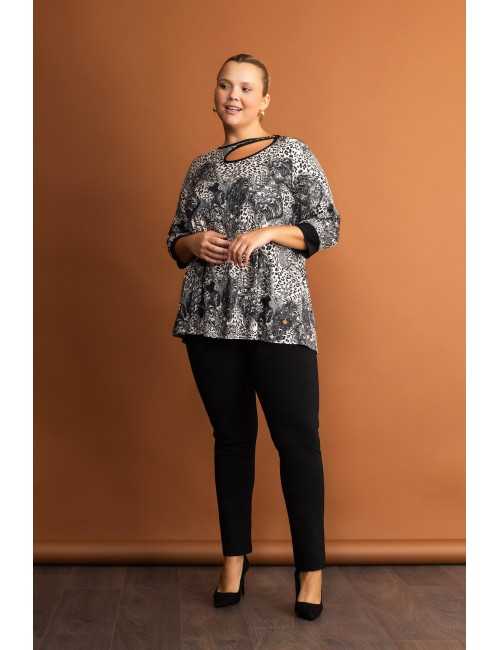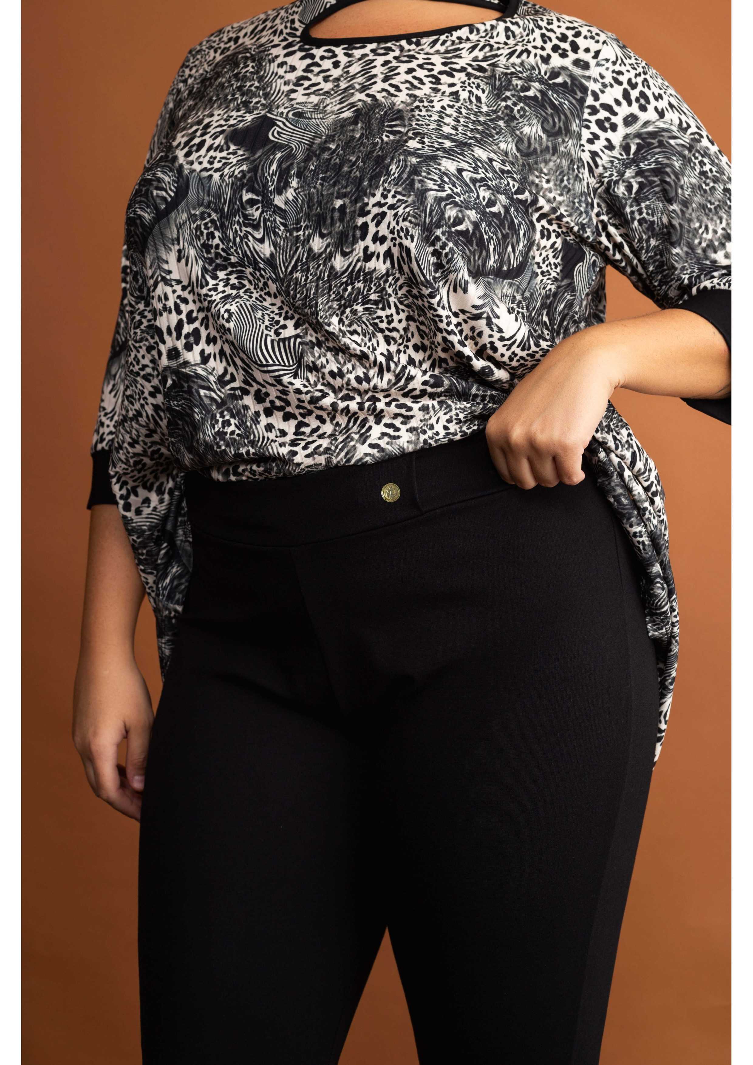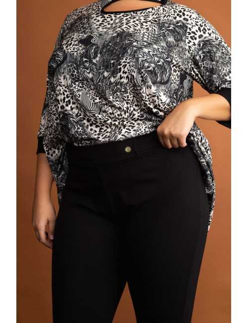 Plain knit pants, high waistband with elastic only at the back. Side front pleat with button application. Collection: Autumn Winter Available in Plus Sizes Own design and manufacturing. We are a clothing brand with over 50 years of experience. Model: Height 1.70m and wearing size 2XL. Composition: 64% Viscose 31% Polyamide 5% Elastane