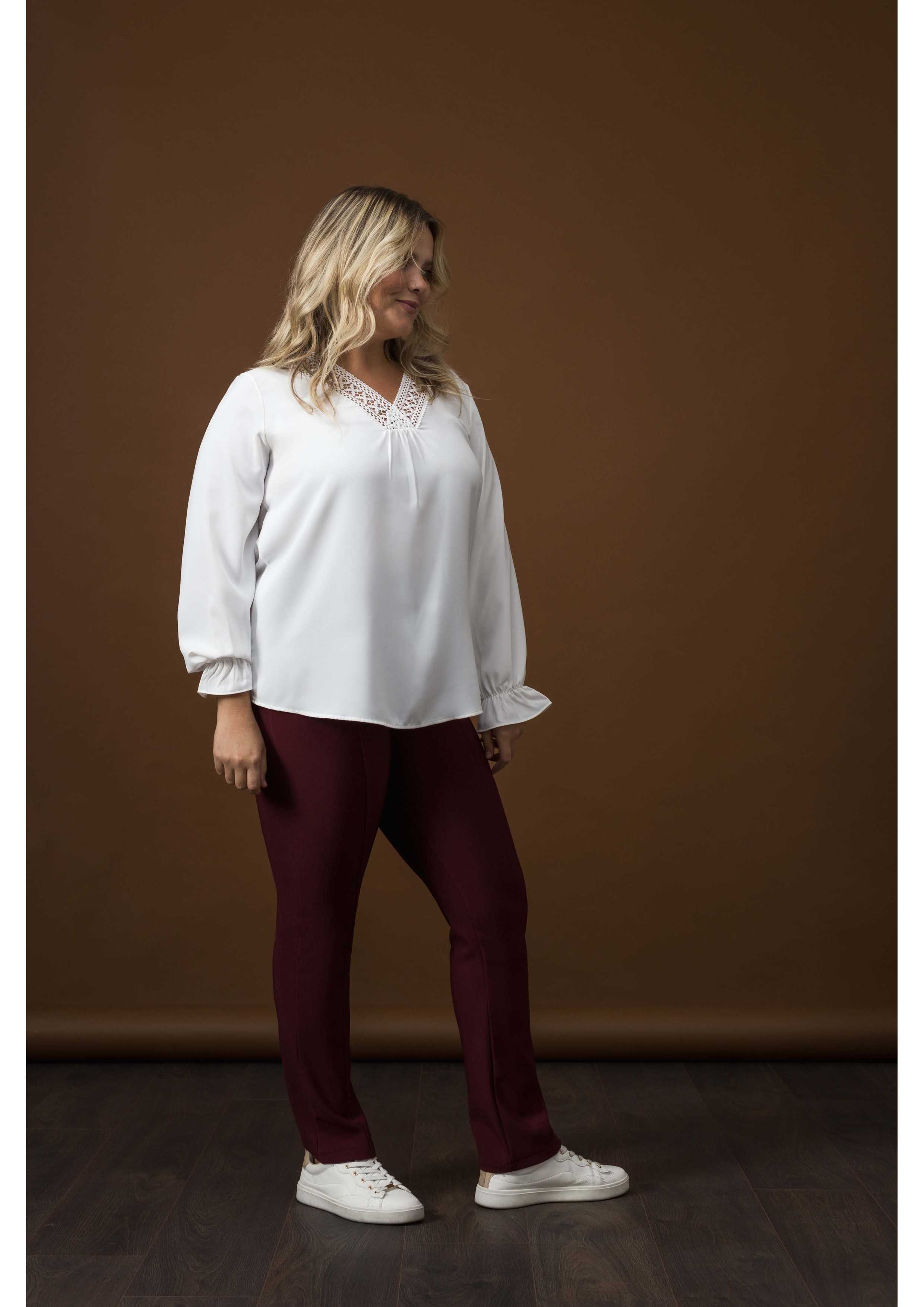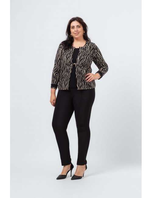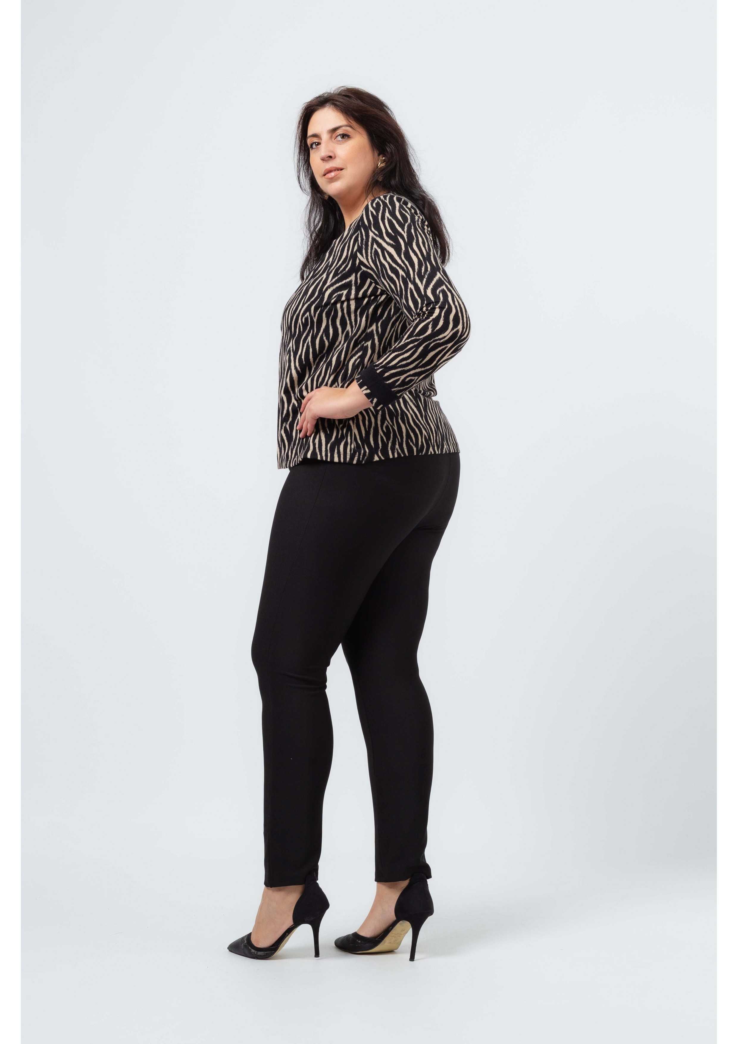 Plain knit pants, elastic waistband, front cut with covered topstitching. Collection: Autumn Winter Available in Plus Sizes Own design and manufacturing product. We are a clothing manufacturing brand with over 50 years of experience Model: Height 1.70m and wearing size 2XL. Composition: 95% Polyester 5% Elastane