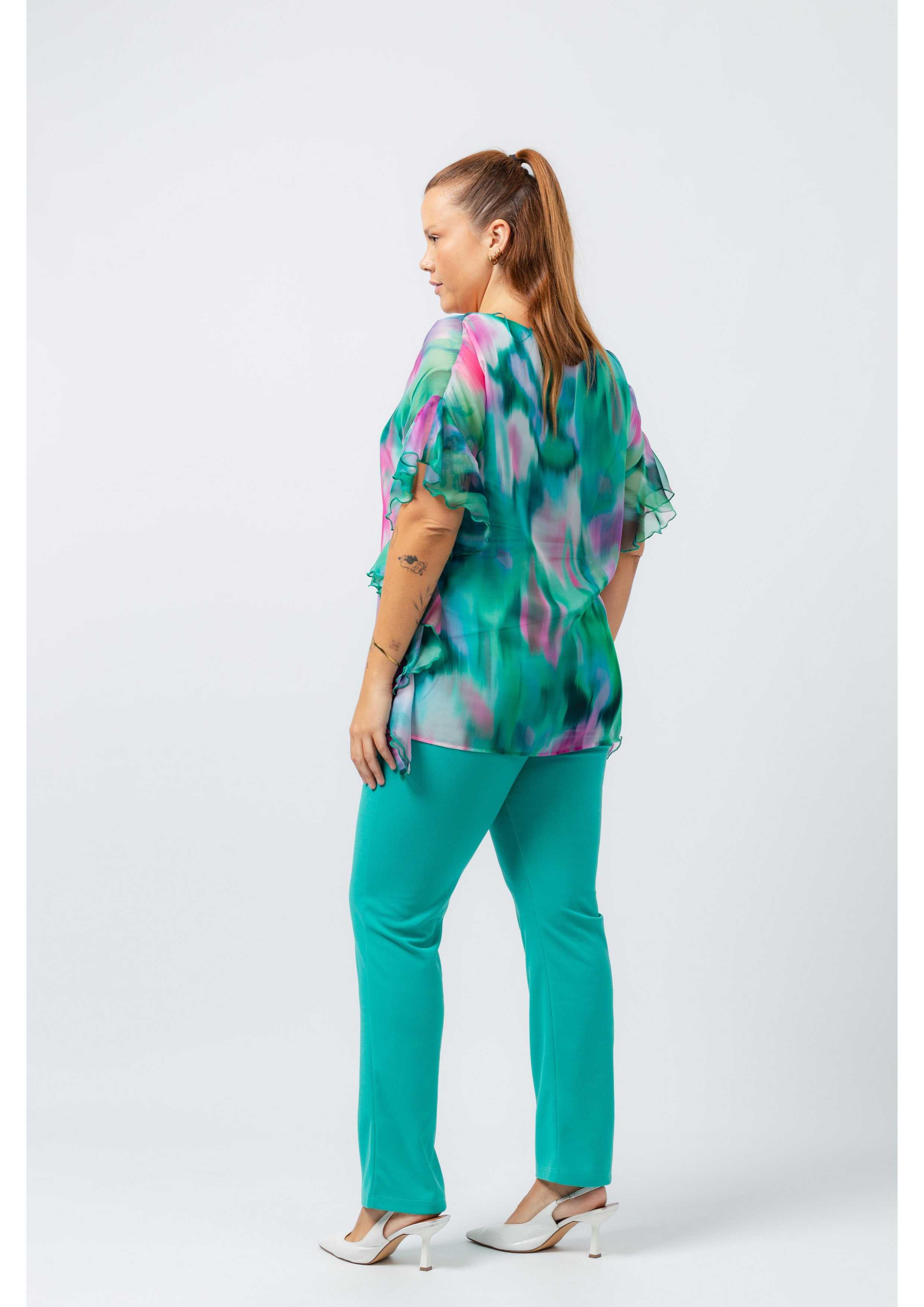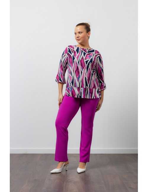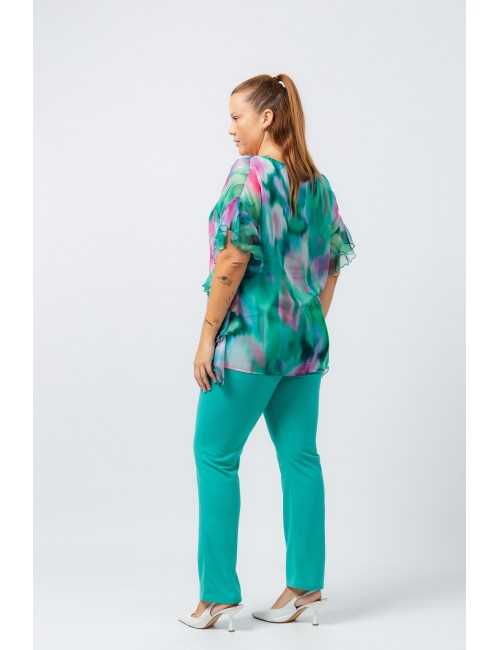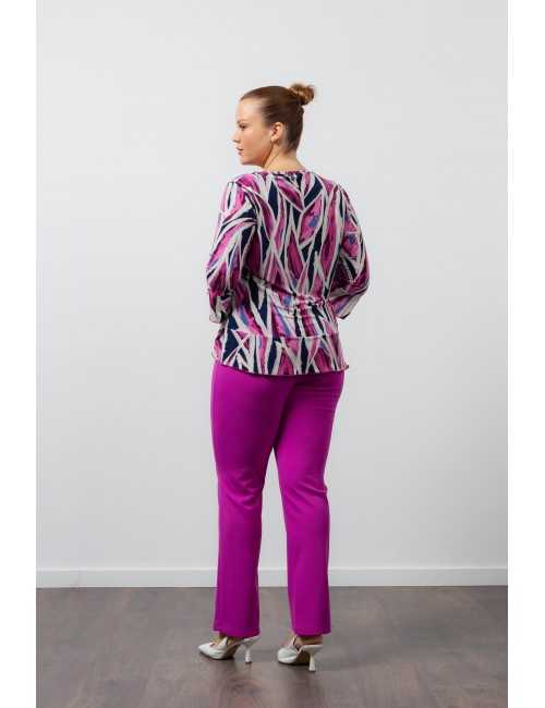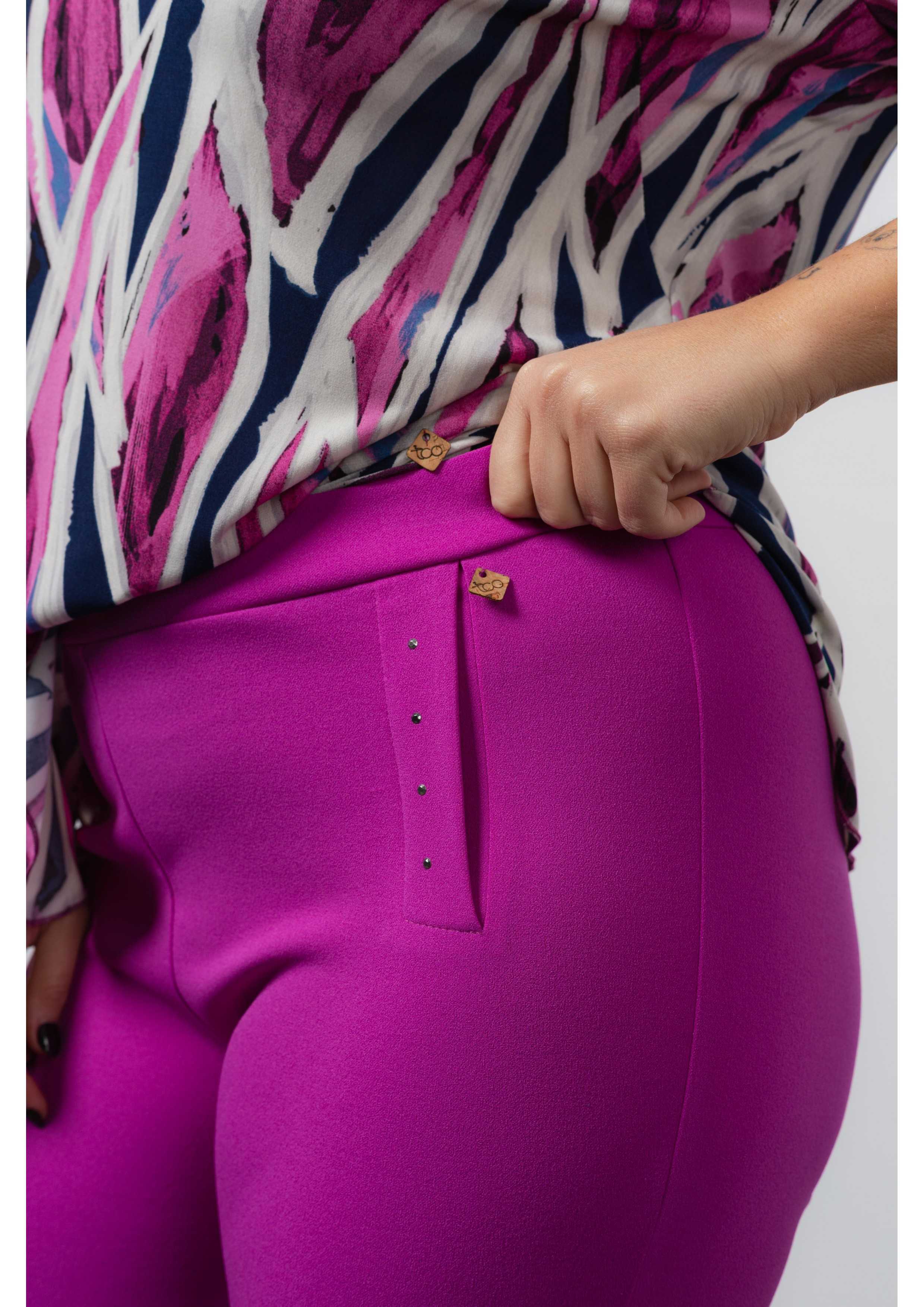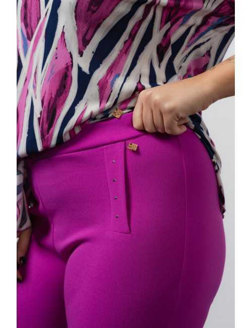 Plain fabric pants, elastic at the back waist. Side pockets tailored with transfer application. Collection: Spring Summer Available in Plus Sizes Own design and manufacturing product. We are a clothing manufacturing brand with over 50 years of experience Model: Height 1.70m and wearing size XL. Composition: 95% Polyester 5% Elastane
