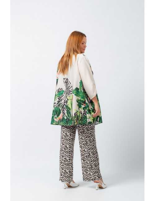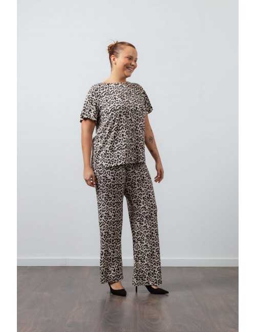 Printed knit pants, straight cut with elastic waist and rivets. Collection: Spring Summer Available in Plus Sizes Own design and manufacturing product. We are a clothing brand with over 50 years of experience Model: Height 1.70m and is wearing size XL. Composition: 96% Polyester 4% Elastane