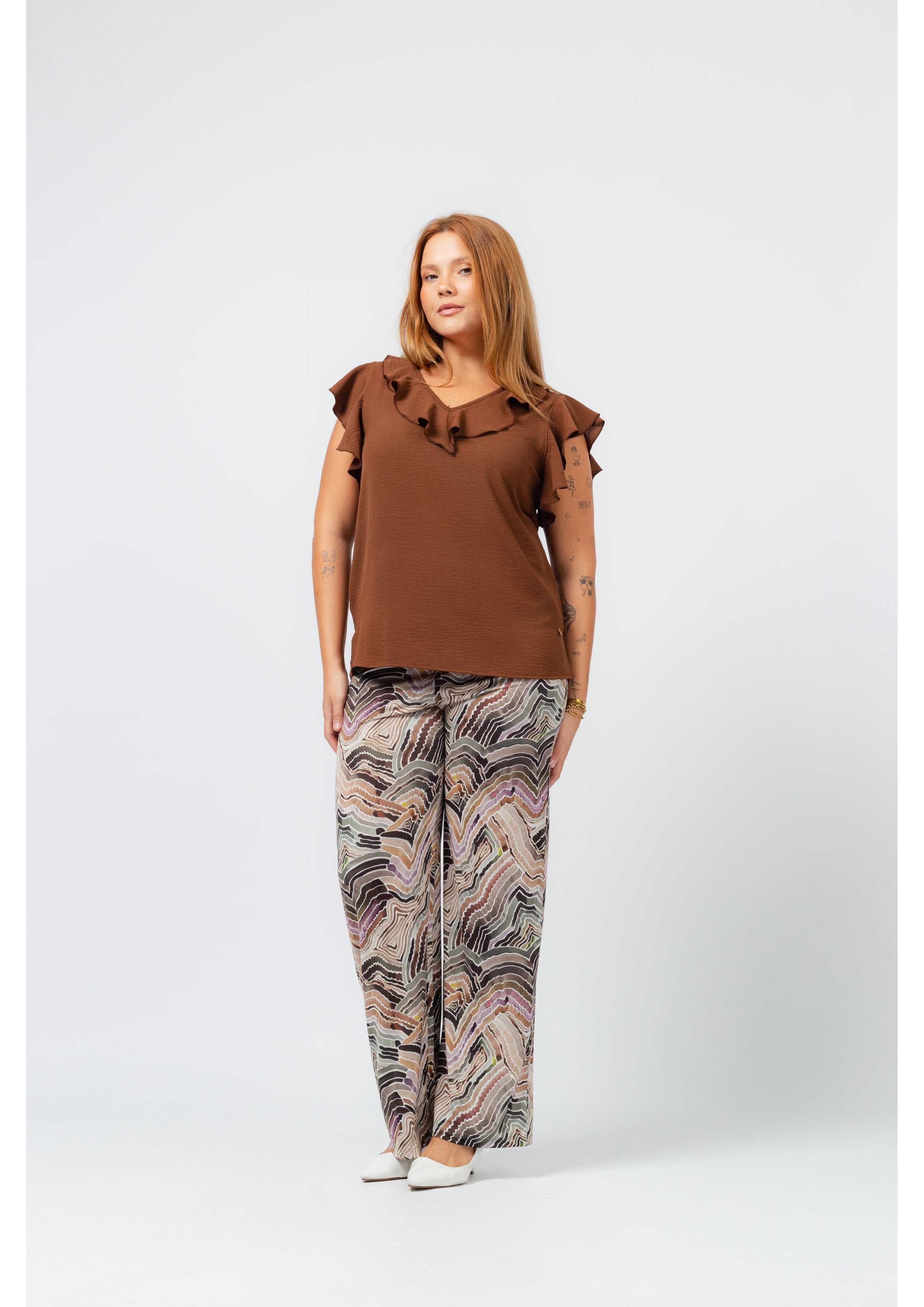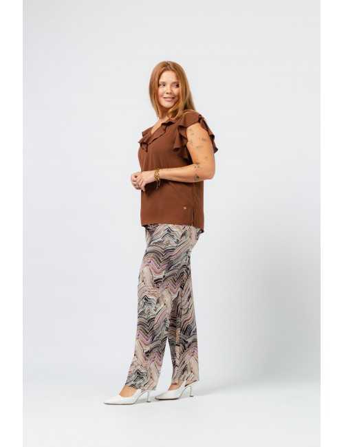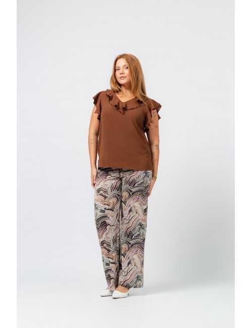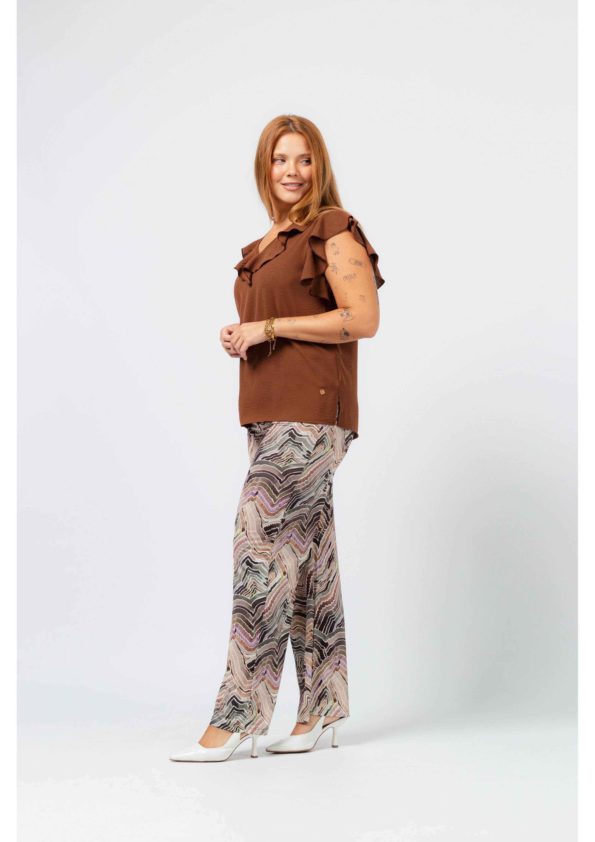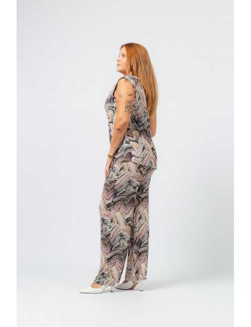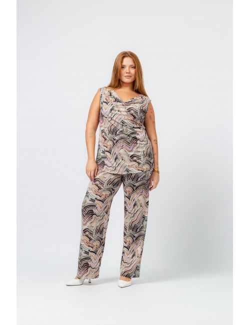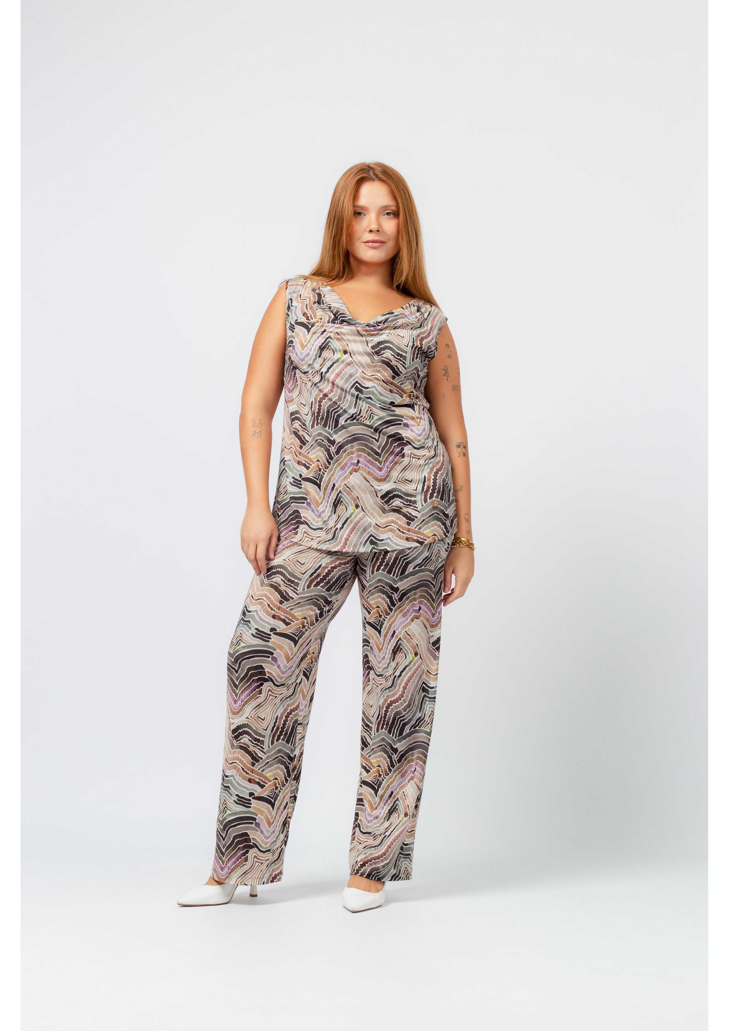Printed knit pants with covered elastic at the waist. Straight cut. Collection: Spring Summer Available in Plus Sizes. Own design and manufacturing product. We are a clothing manufacturing brand with over 50 years of experience. Model: Height 1.70m and wearing size XL. Composition: 94% Polyester 6% Elastane