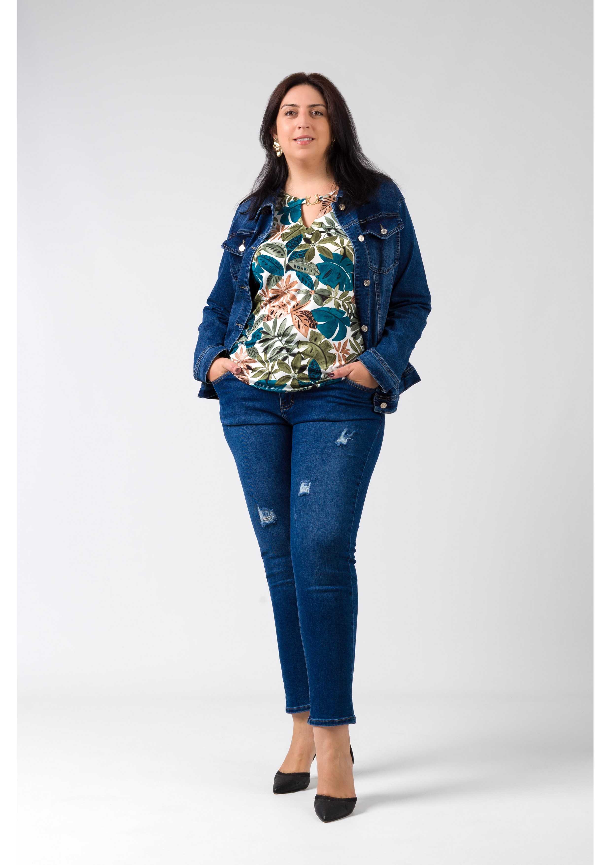 Denim pants with pockets. Collection: Autumn Winter Available in Plus Sizes We are a clothing manufacturing brand with over 50 years of experience Model: Height 1.73m and wearing size 48. Composition: 63% Cotton 32% Polyester 3% Viscose 2% Elastane
