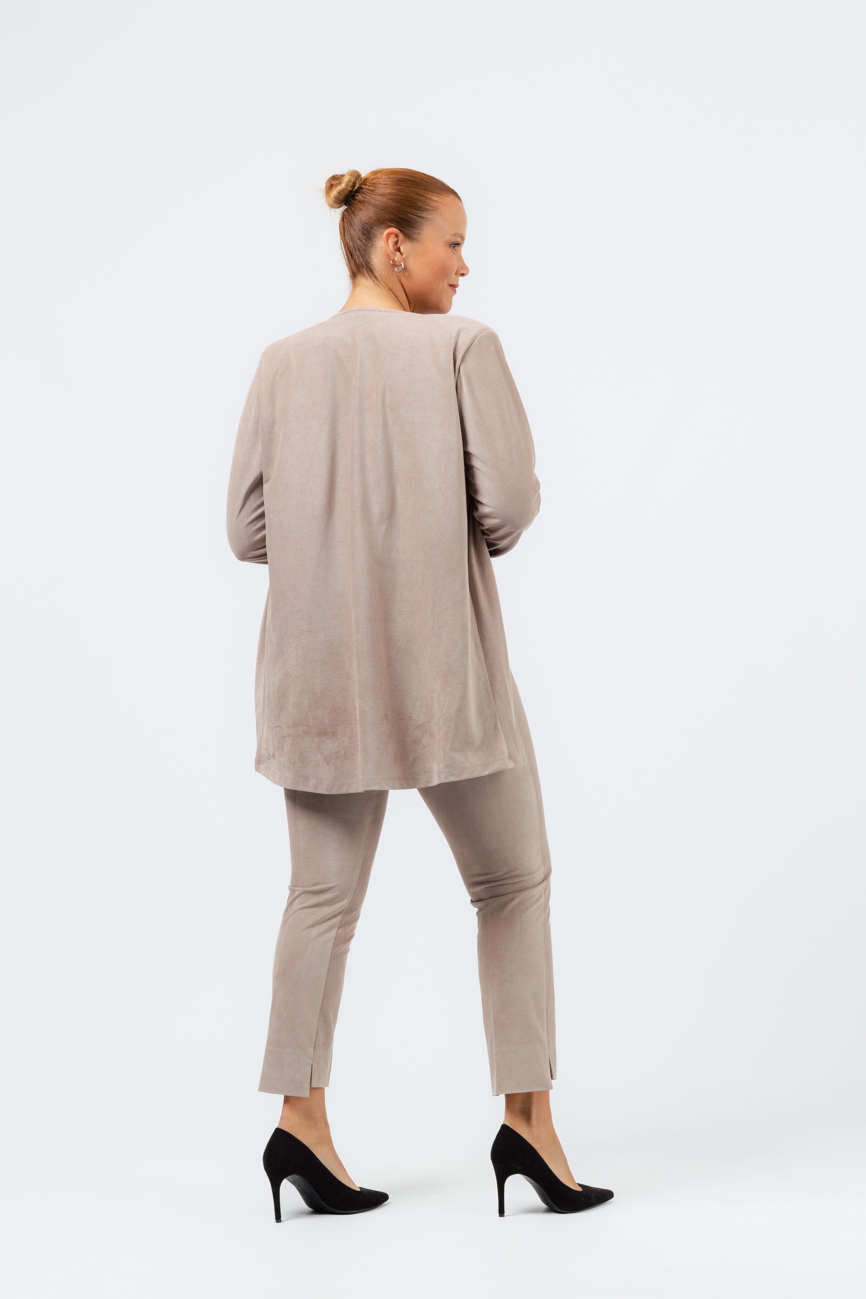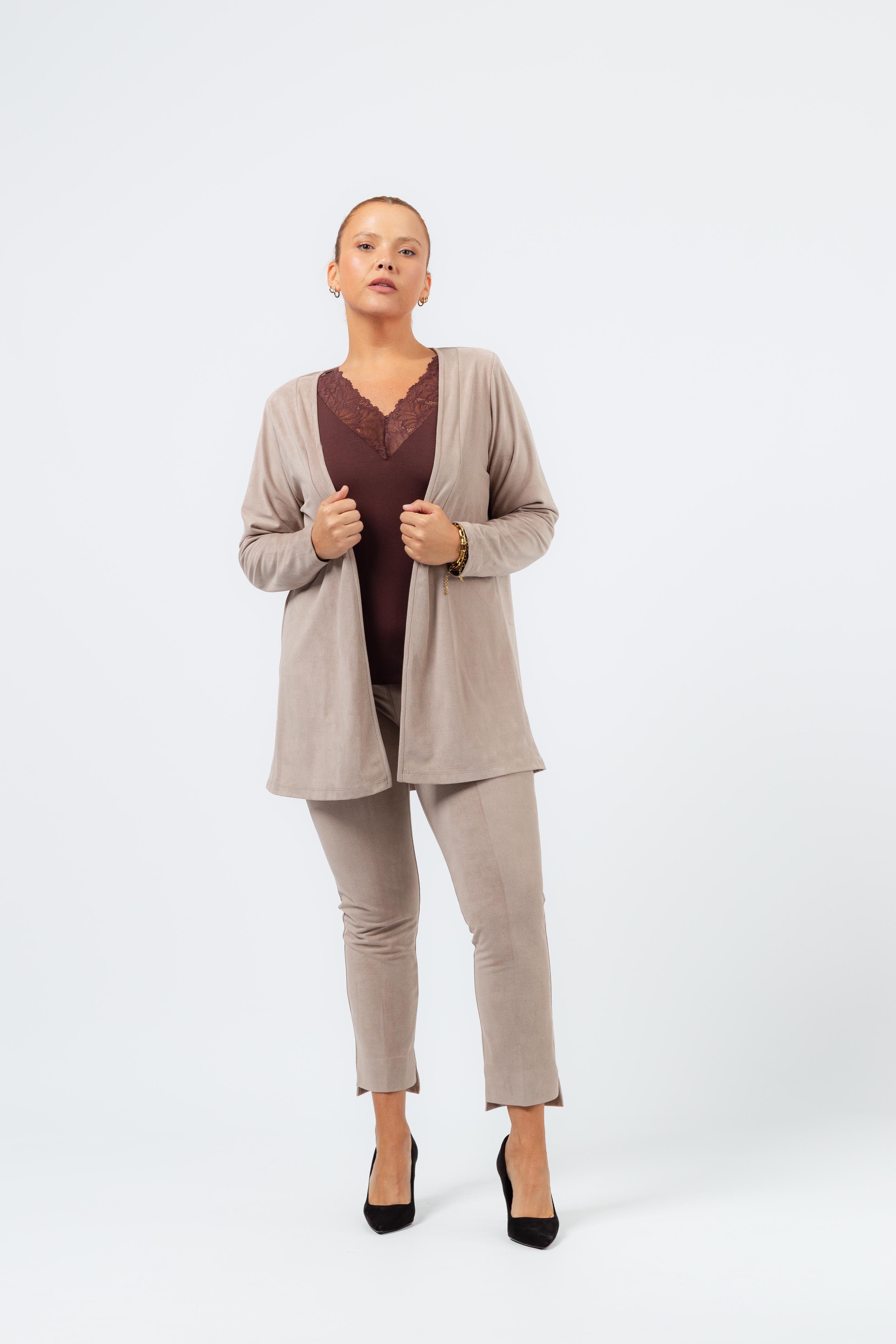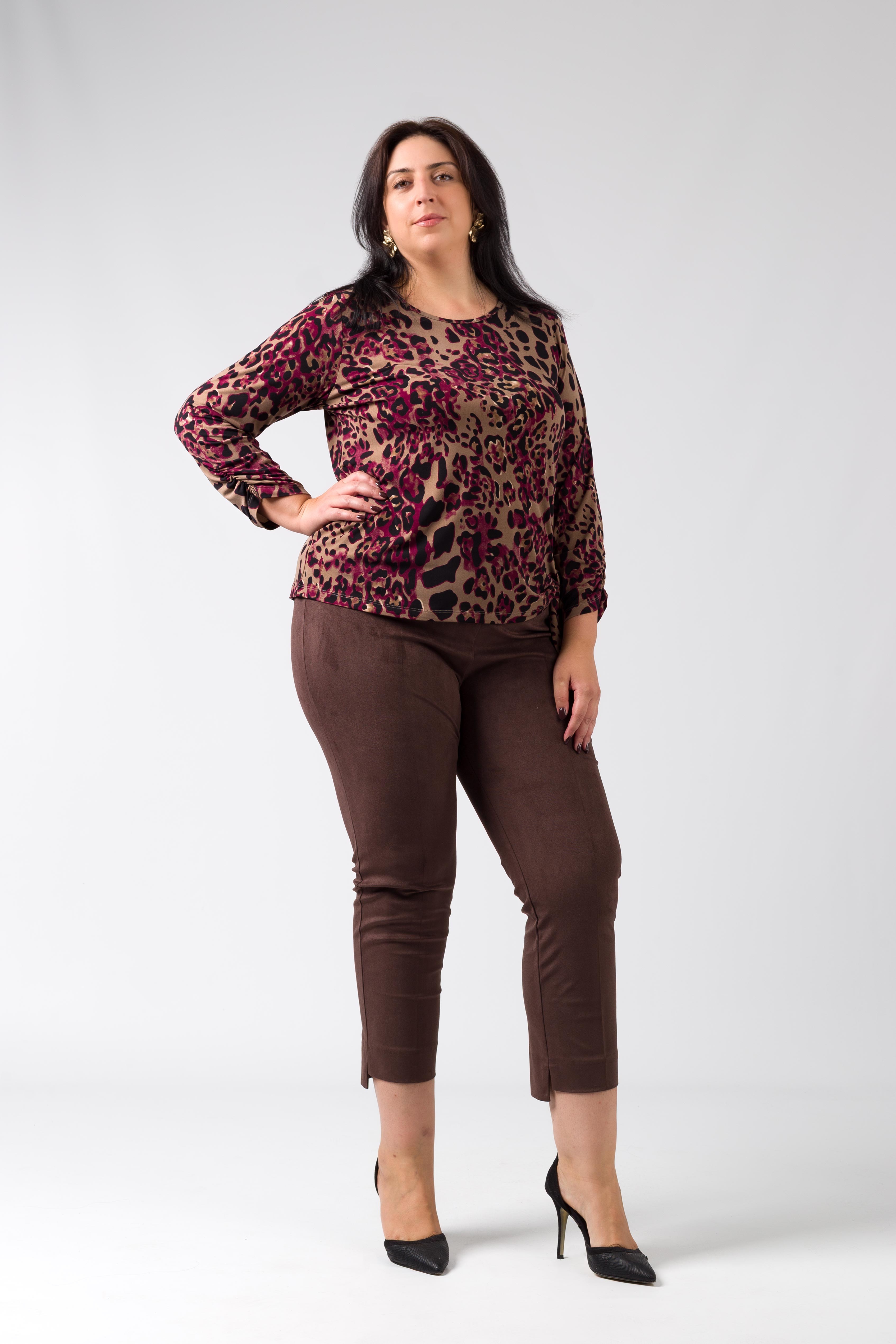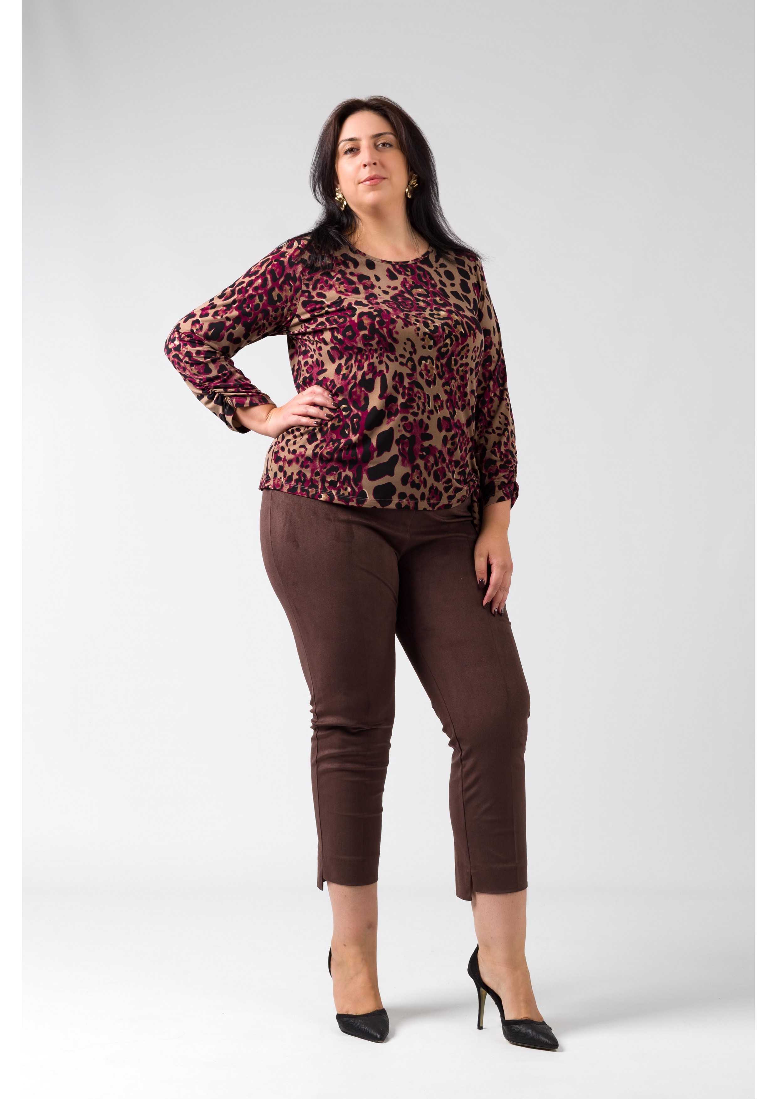 Plain fabric pants, peach skin type, creased with side slits and elastic sewn at the waist. Collection: Autumn Winter Available in Plus Sizes. Own design and manufacturing product. We are a clothing brand with over 50 years of experience. Model: Height 1.73m and wearing size 3XL. Composition: 95% Polyester 5% Elastane