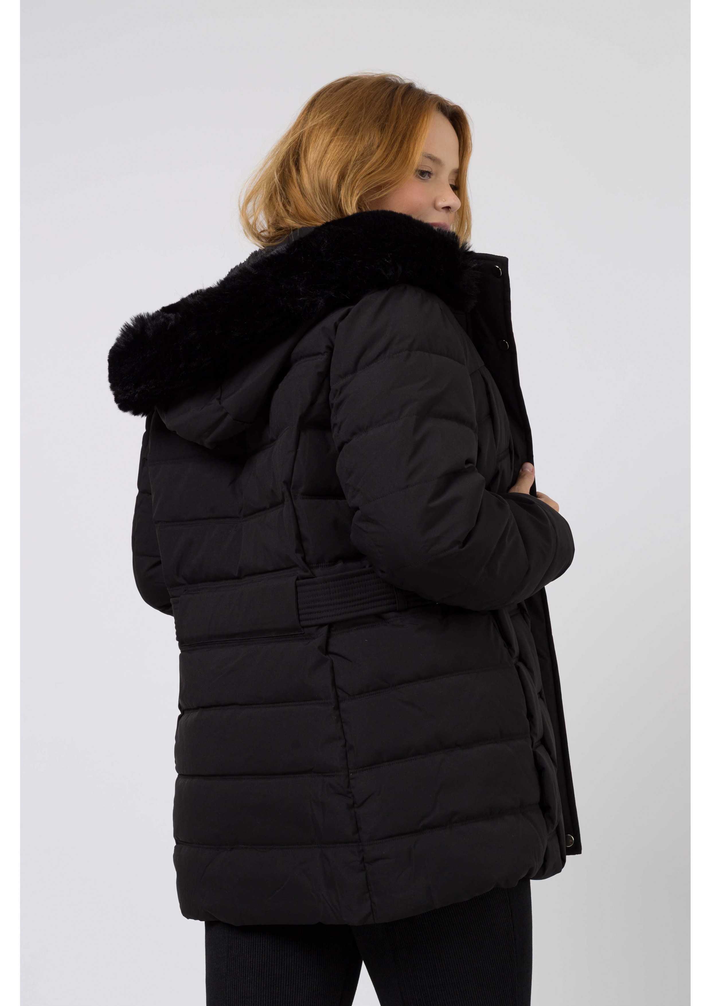 Solid fabric parka with pockets and hood. Collection: Autumn Winter Model: Height 1.70m and wearing size 44.