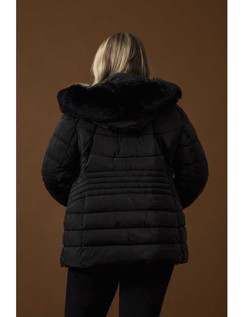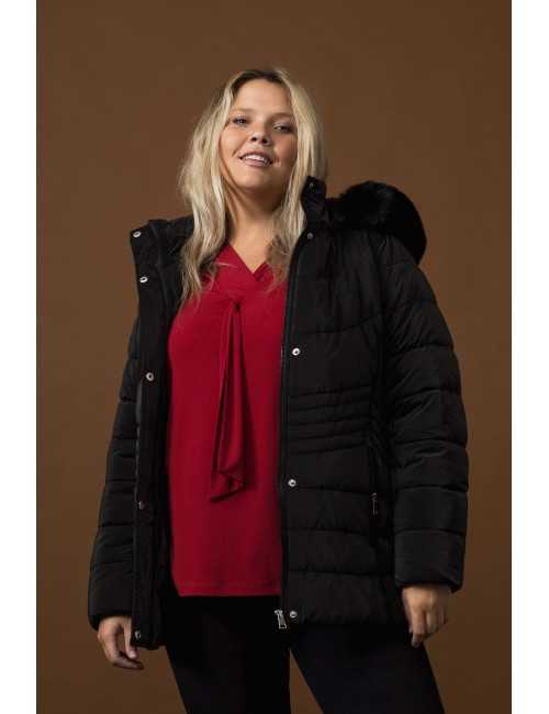 Solid fabric parka with pockets and hood. Collection: Autumn Winter Available in Plus Sizes We are a clothing manufacturing brand with over 50 years of experience Model: Height 1.70m and wearing size 44. Composition: 100% Polyester