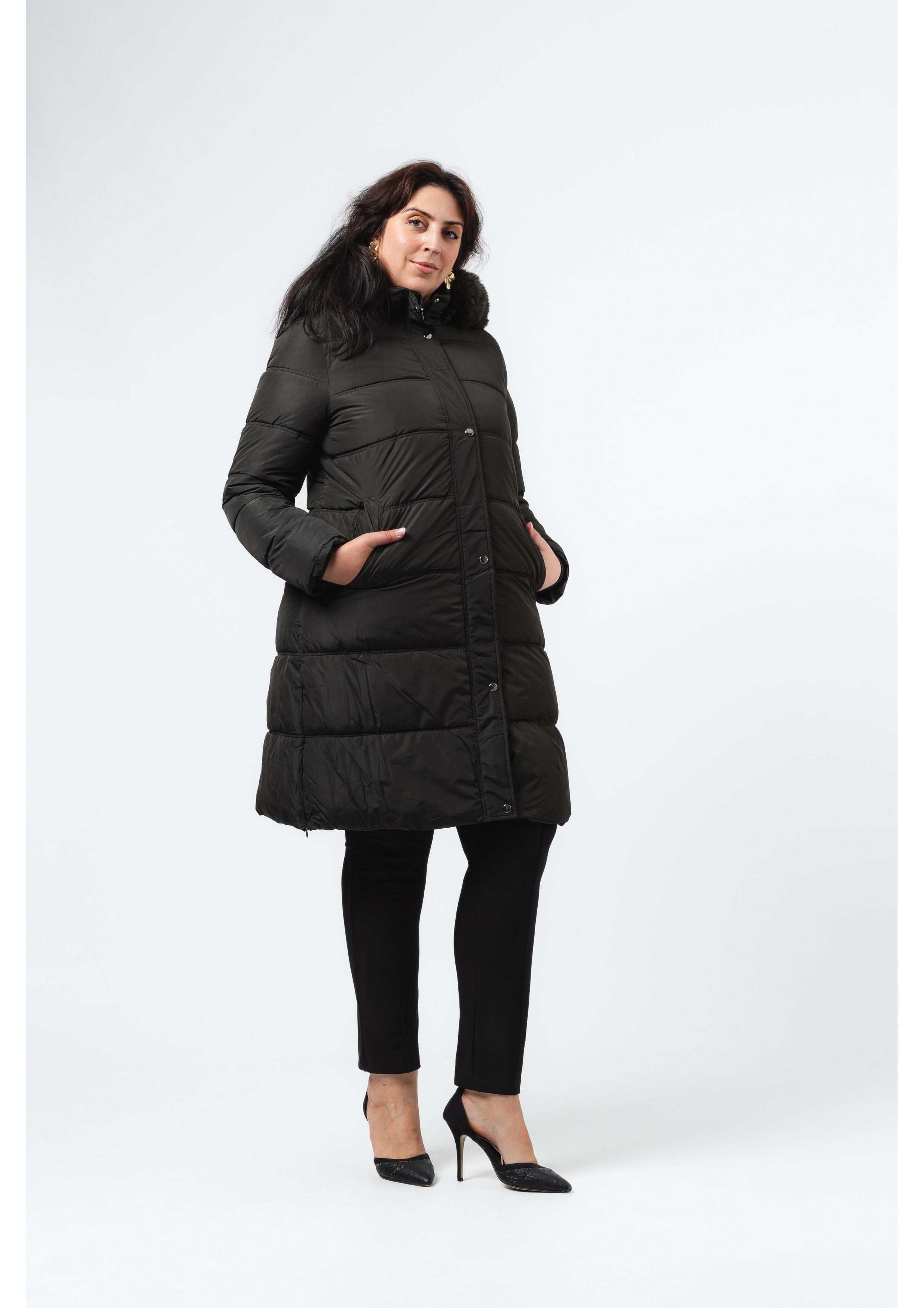 M114WM090 - Plain Fabric Parka Fall Winter Collection Plus Sizes