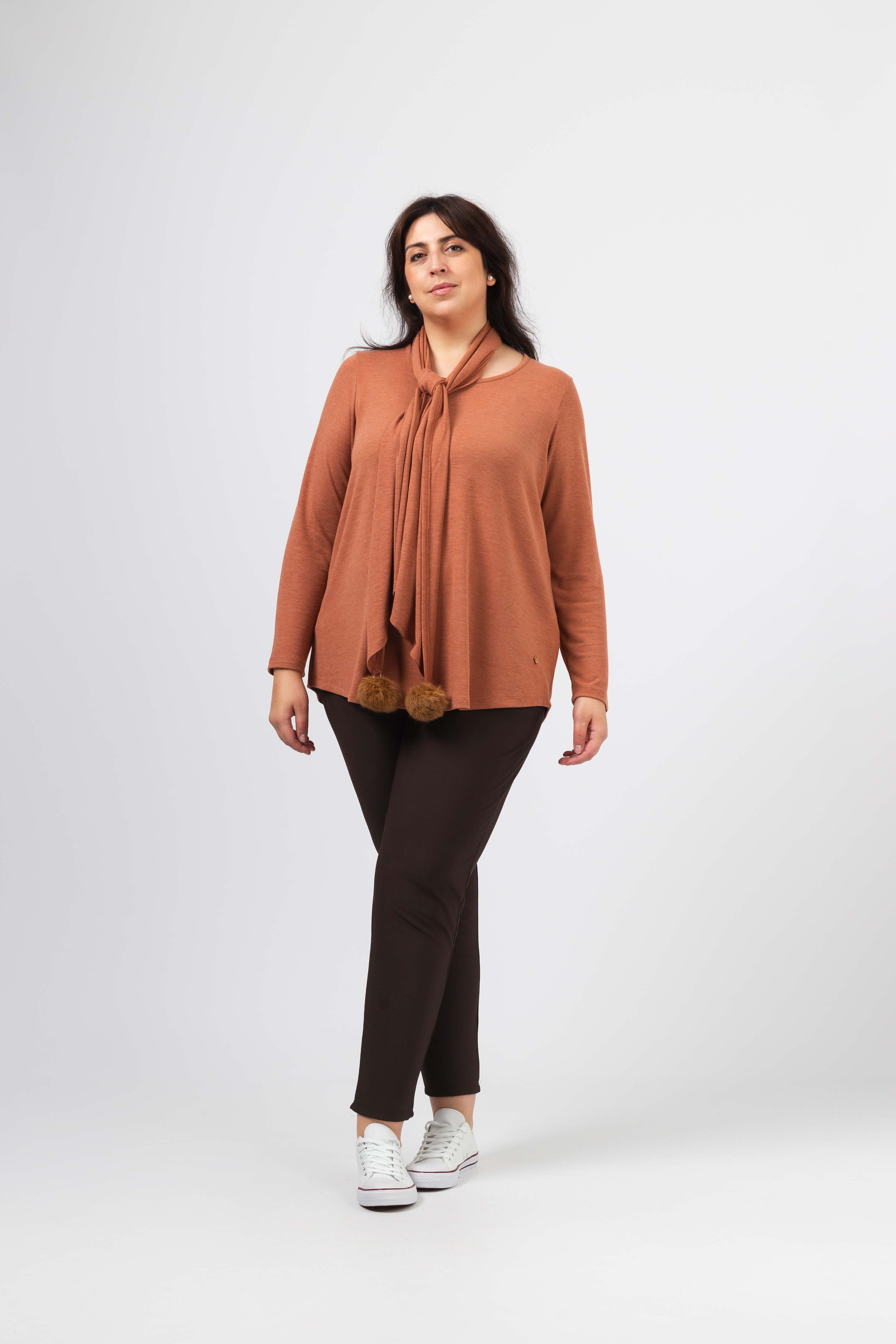 253070 - Calça em malha lisa canelada Coleção Outono Inverno Tamanhos Grandes