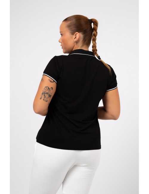 Plain knit polo, short sleeve. Collar, cuffs, and placket in straight strip with stripe. Straight cut model. Collection: Spring/Summer Available in Plus Sizes Own design and manufacturing product. We are a clothing manufacturing brand with over 50 years of experience Model: Height 1.70m and wearing size XL. Composition: 94% Viscose 6% Elastane