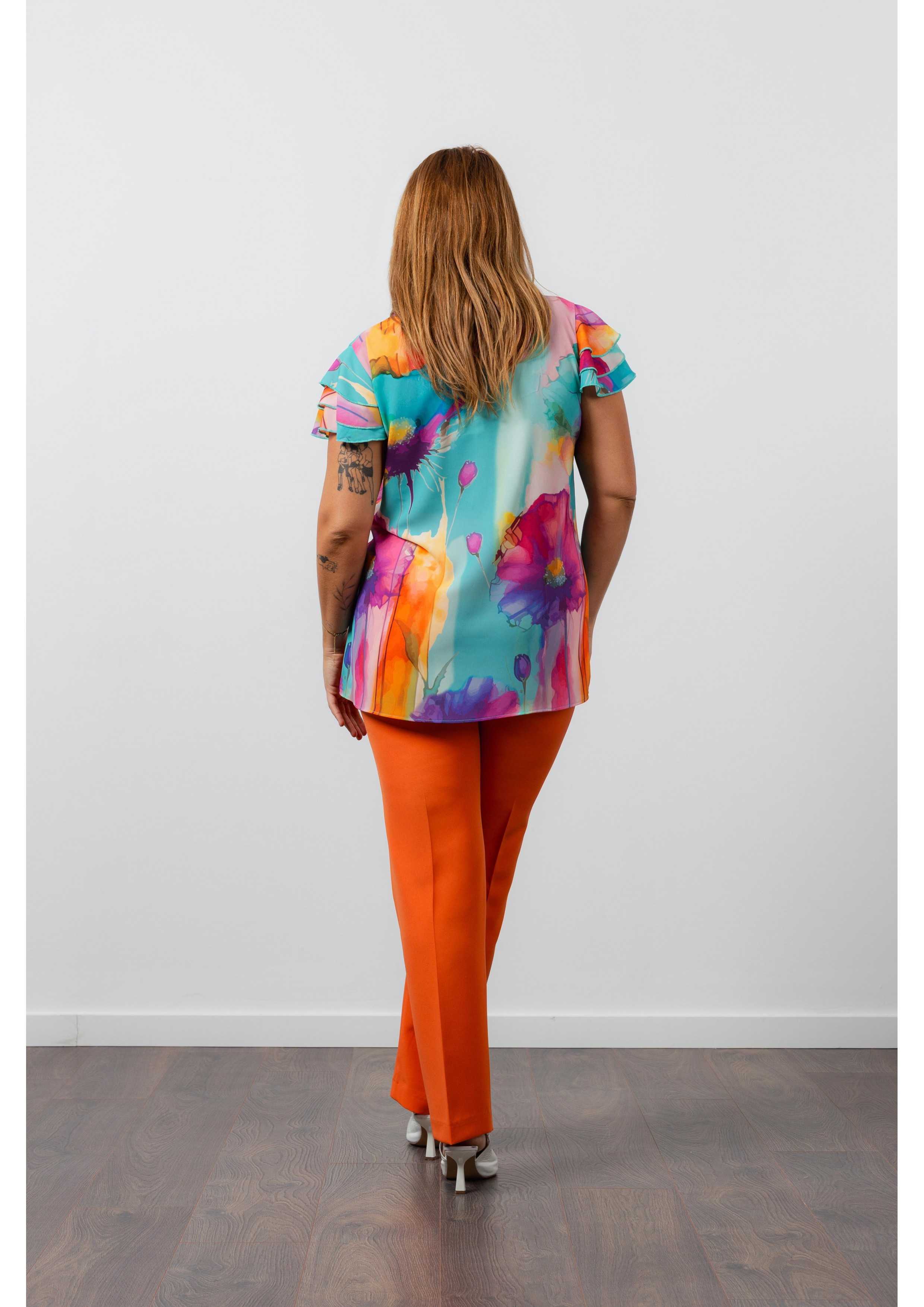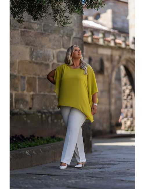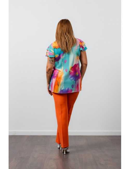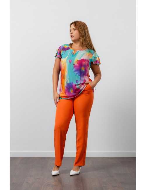 Fabric pants, front closure, side pockets, elastic only in the waistband sides. Collection: Spring Summer Available in Plus Sizes Own design and manufacturing product. We are a clothing manufacturing brand with over 50 years of experience. Composition: 95% Polyester 5% Elastane